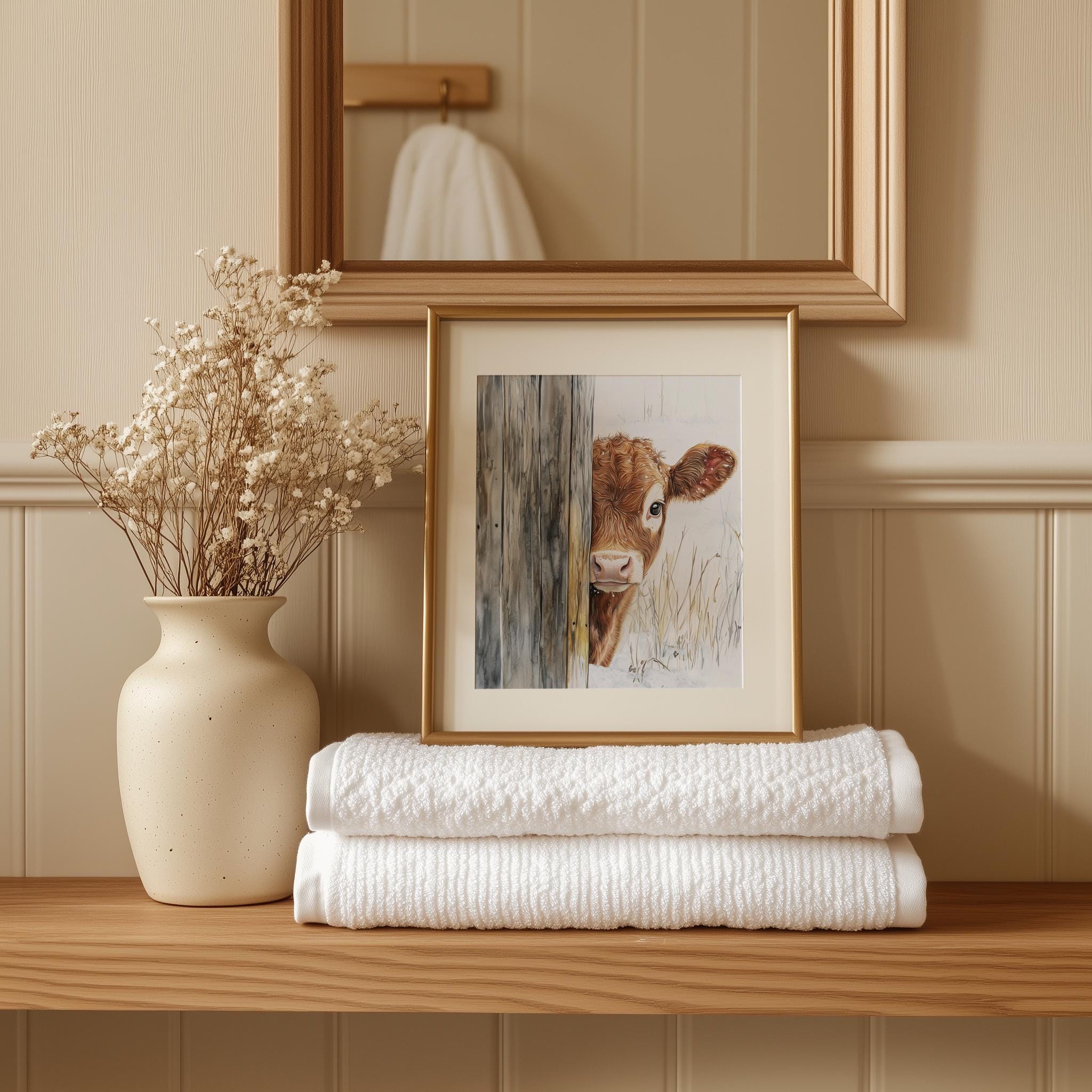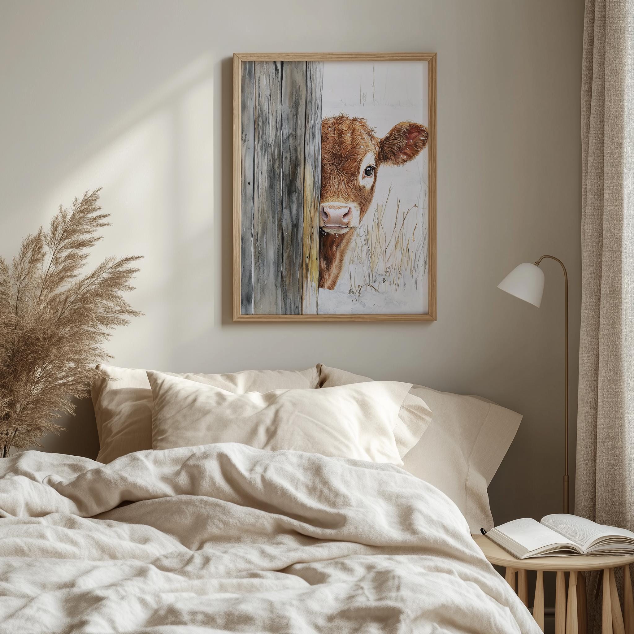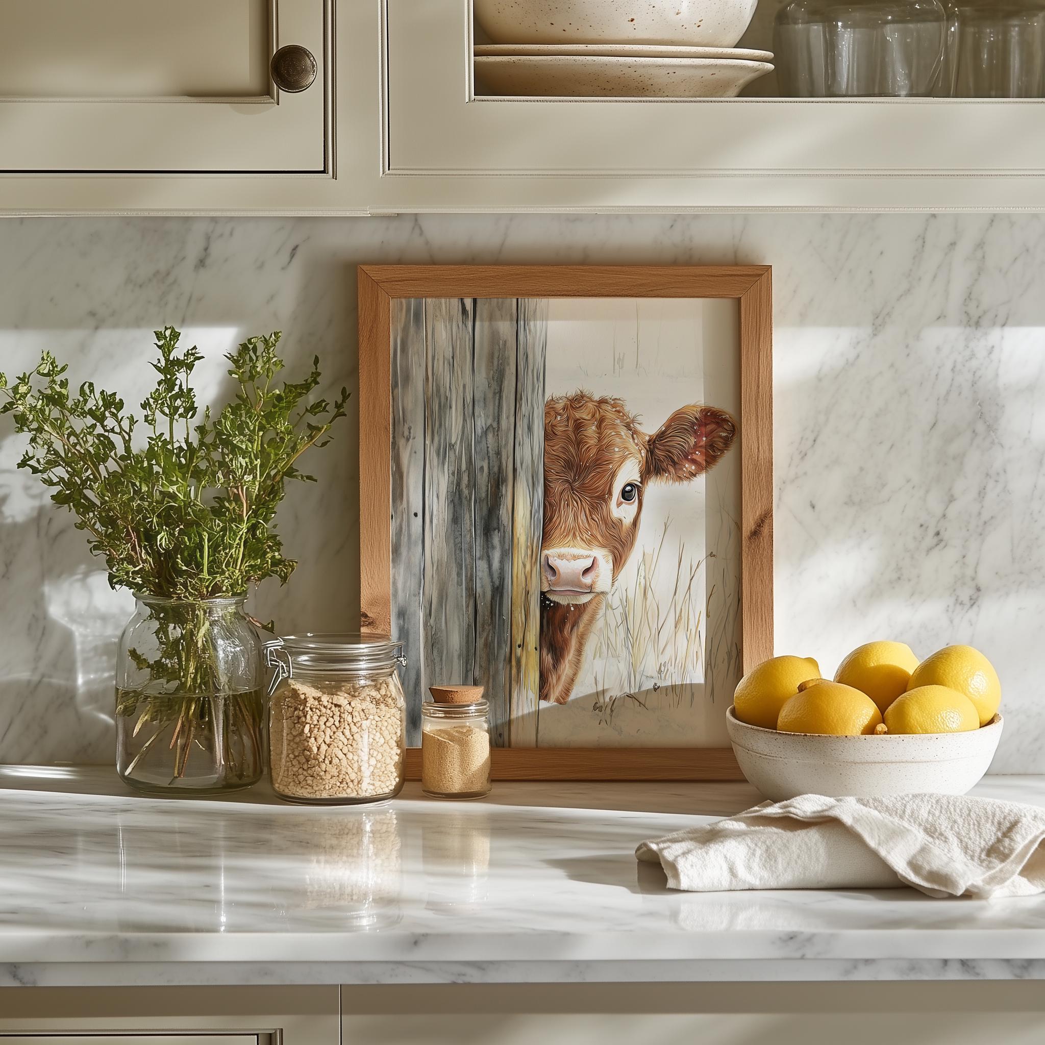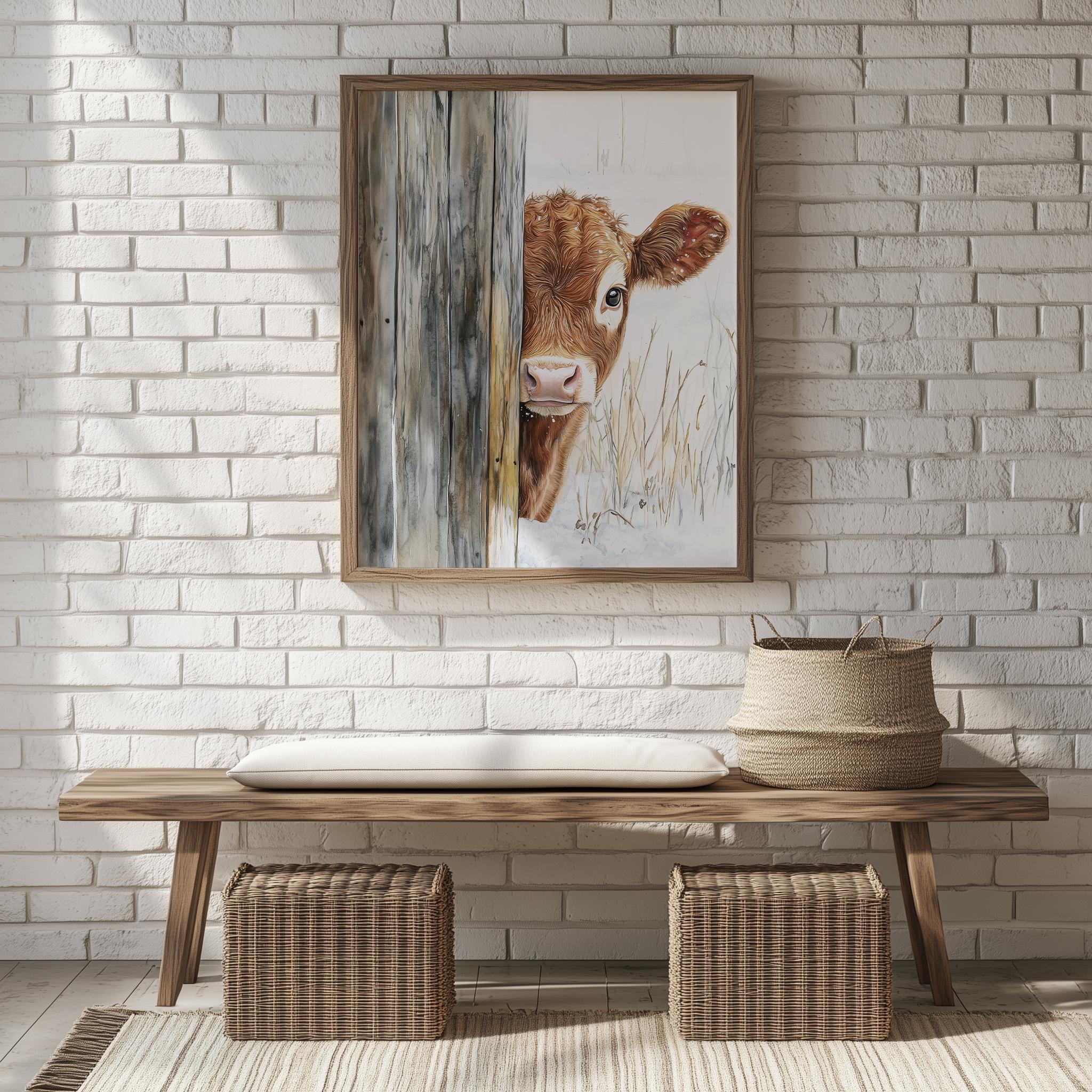 Immerse yourself in the charm with this rustic painting of a delightful calf, showcasing its gentle features and endearing expression.