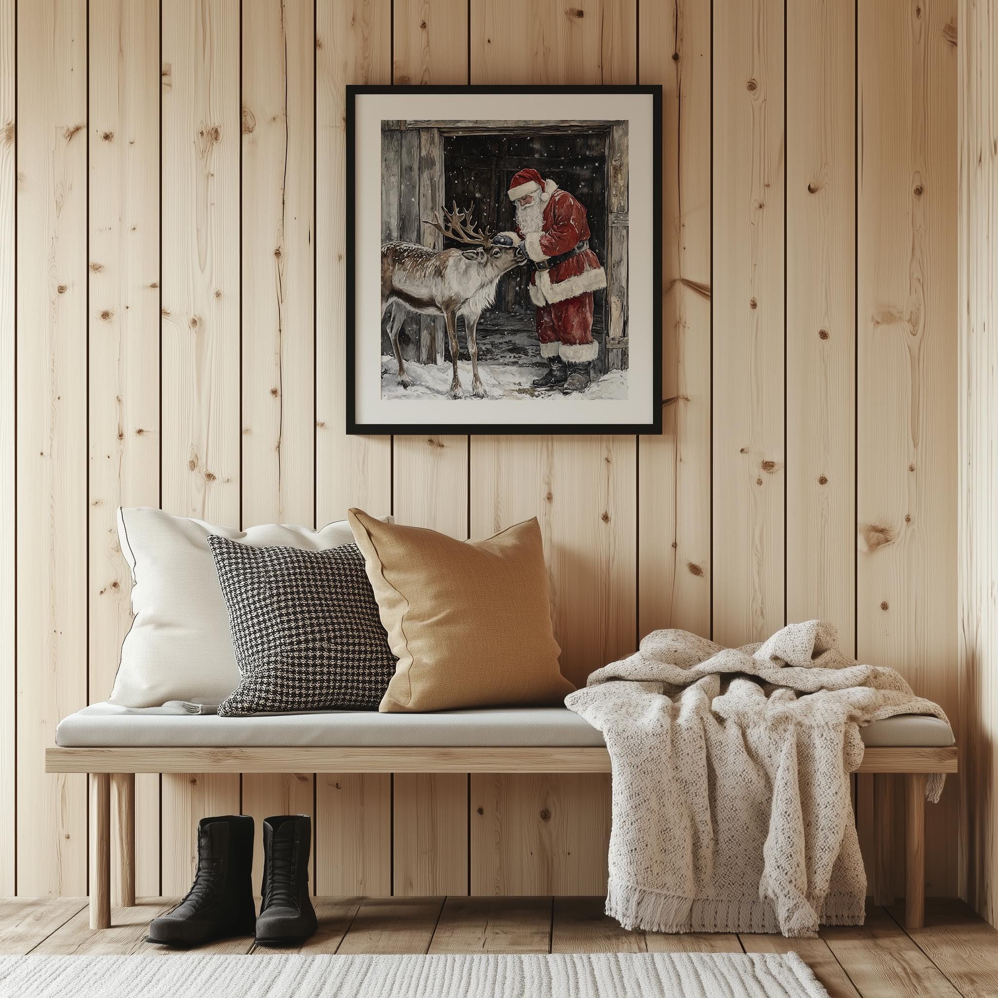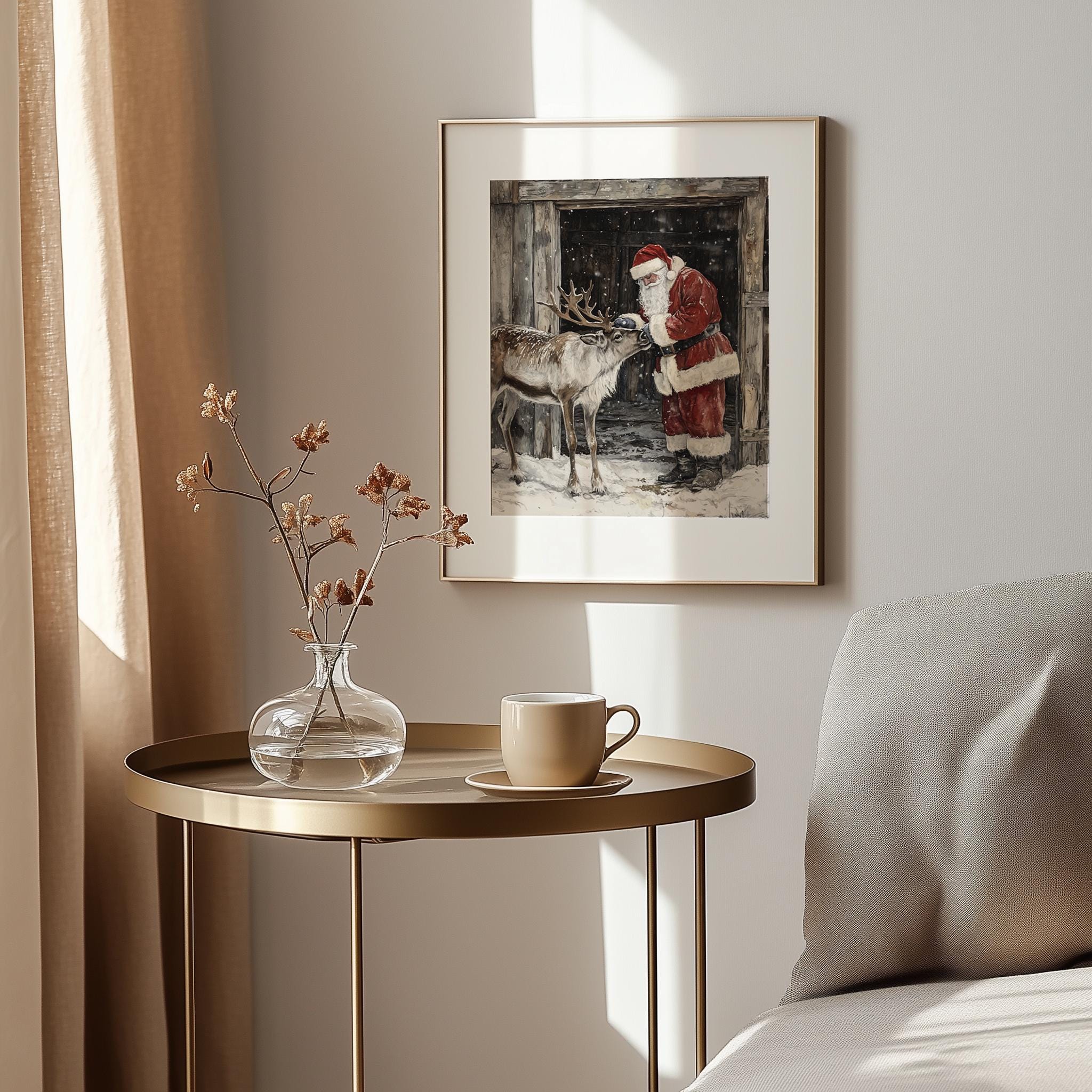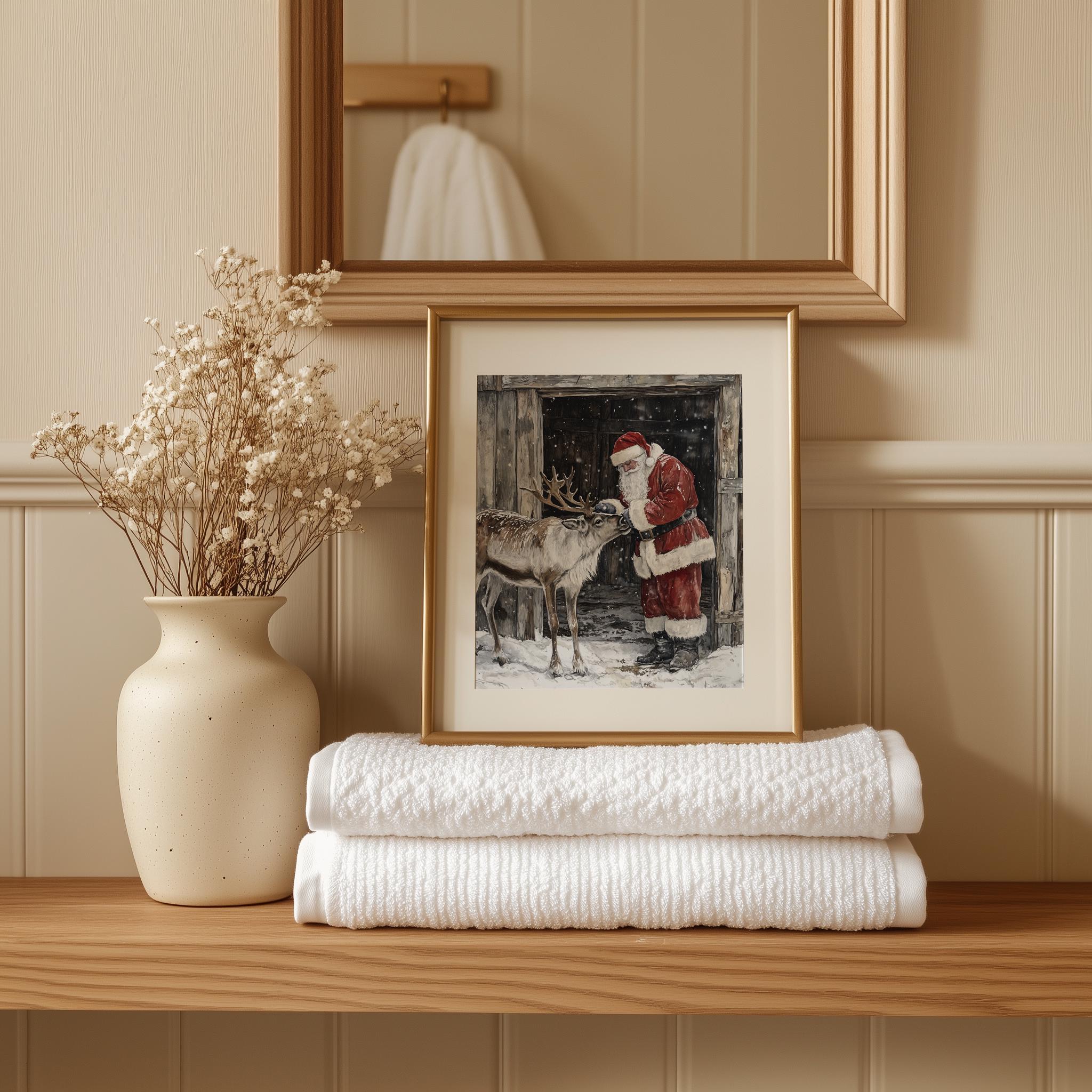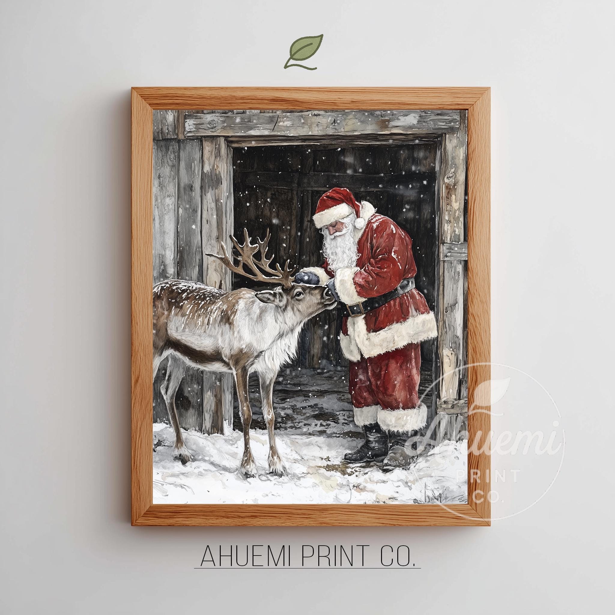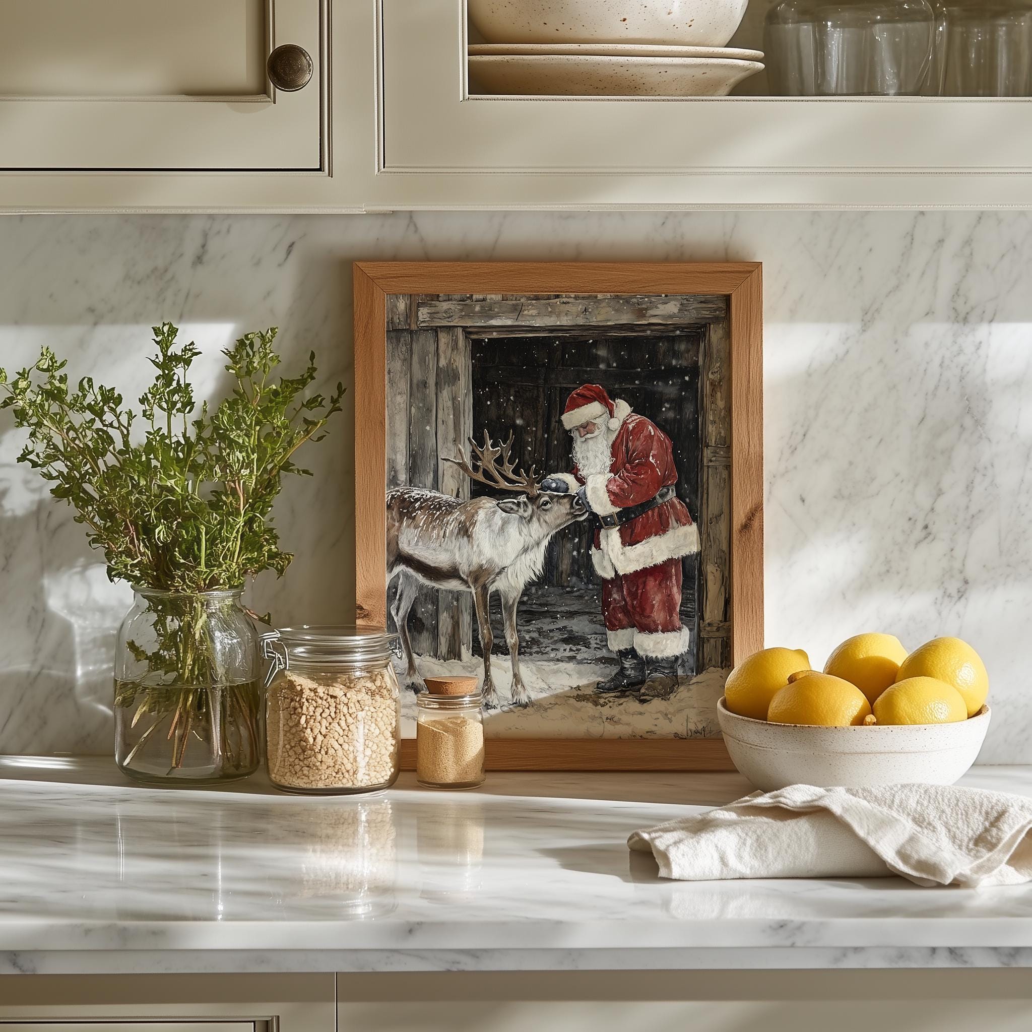 Are you ready to transform your holiday decor with a dash of rustic charm? Our Santa Feeding Reindeer Print is an enchanting piece of Christmas decor that effortlessly brings the magic of the season into your home. This unique holiday artwork is not just a wall art but a delightful glimpse into a winter wonderland, capturing the heartwarming scene of Santa lovingly feeding his reindeer. What's even better? It's a digital download, so you can get it instantly and start decorating without delay. Perfect for those who adore holiday decor that feels personal and cozy, this piece adds a touch of festive charm to any room. Trust me, your walls are going to tell a story of holiday warmth and tradition!