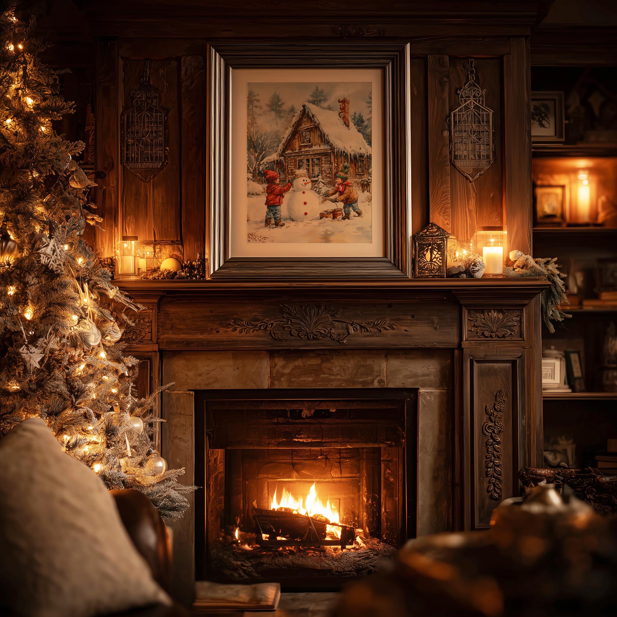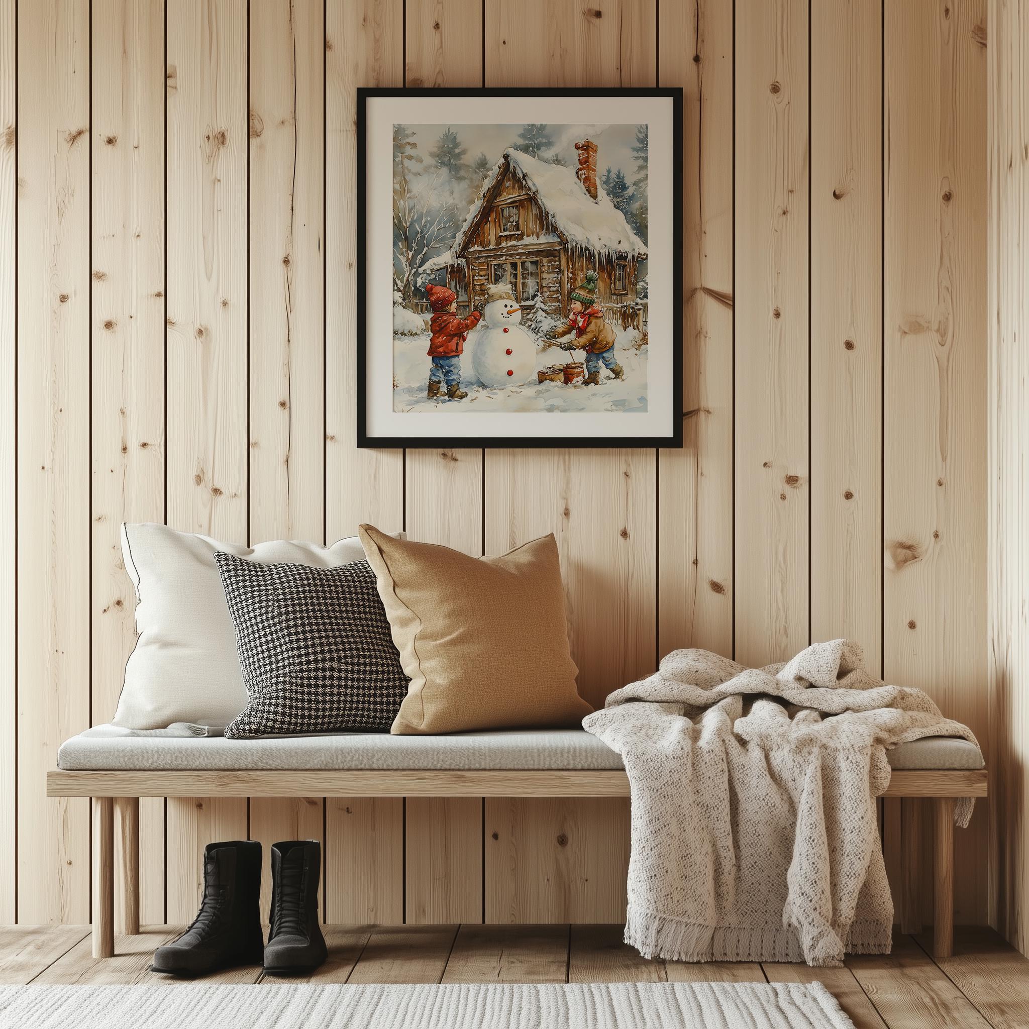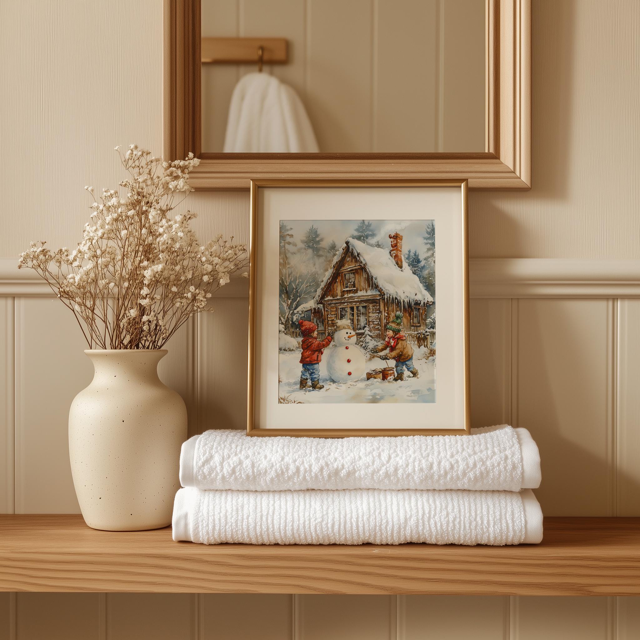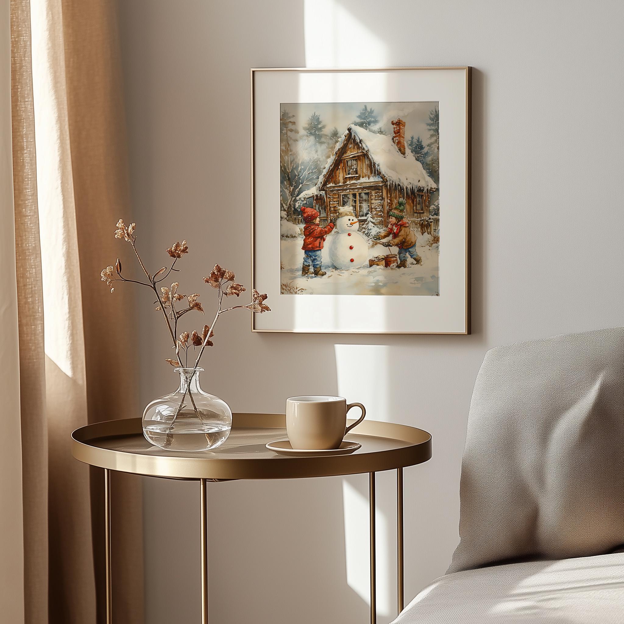Immerse yourself in the charm with this rustic painting of children joyfully building a snowman in a serene winter landscape. An instantly downloadable print, it's perfect for elevating your decor with budget-friendly charm. This gives you the flexibility to customize the size, frame, and material according to your personal taste and space, ensuring a perfect fit for your walls.