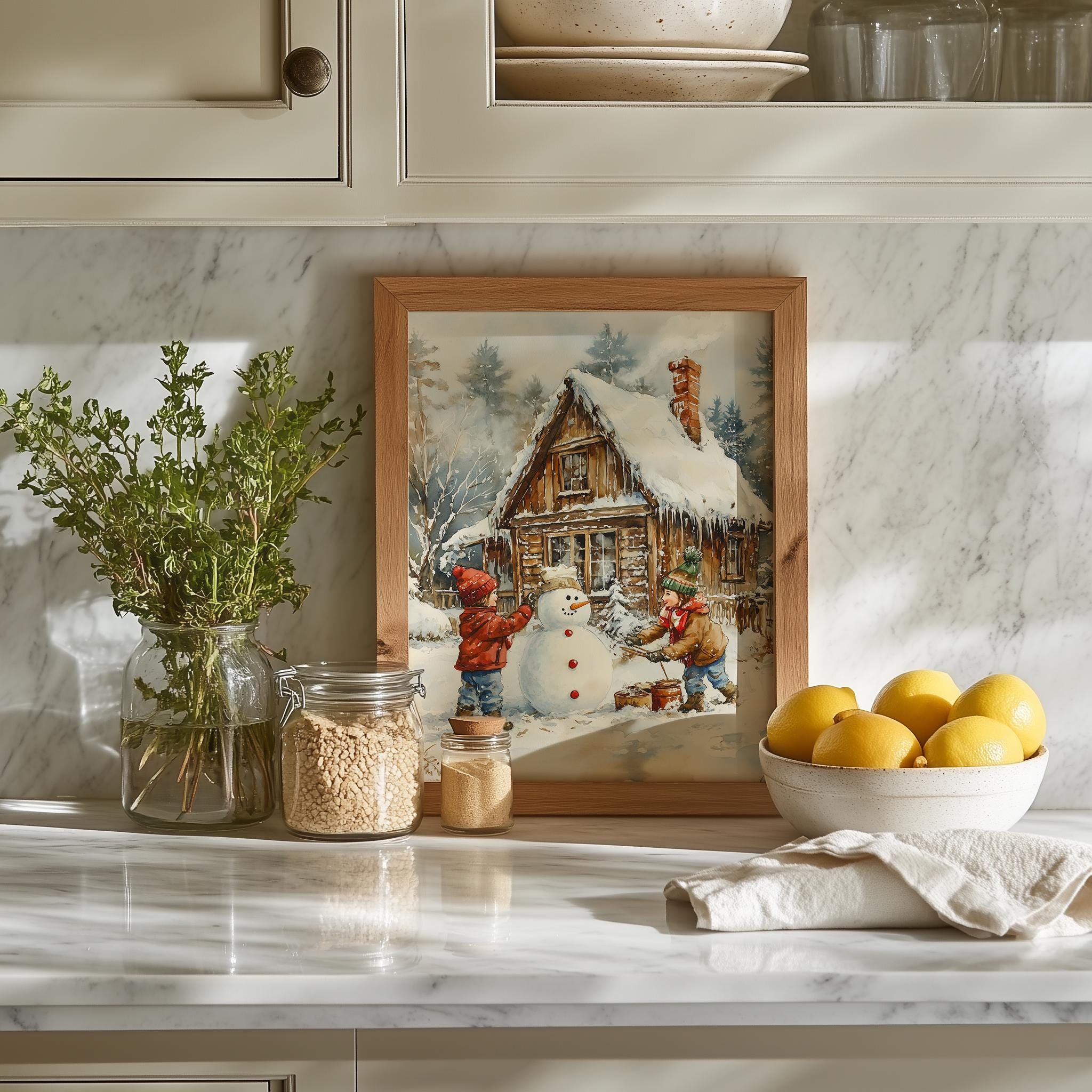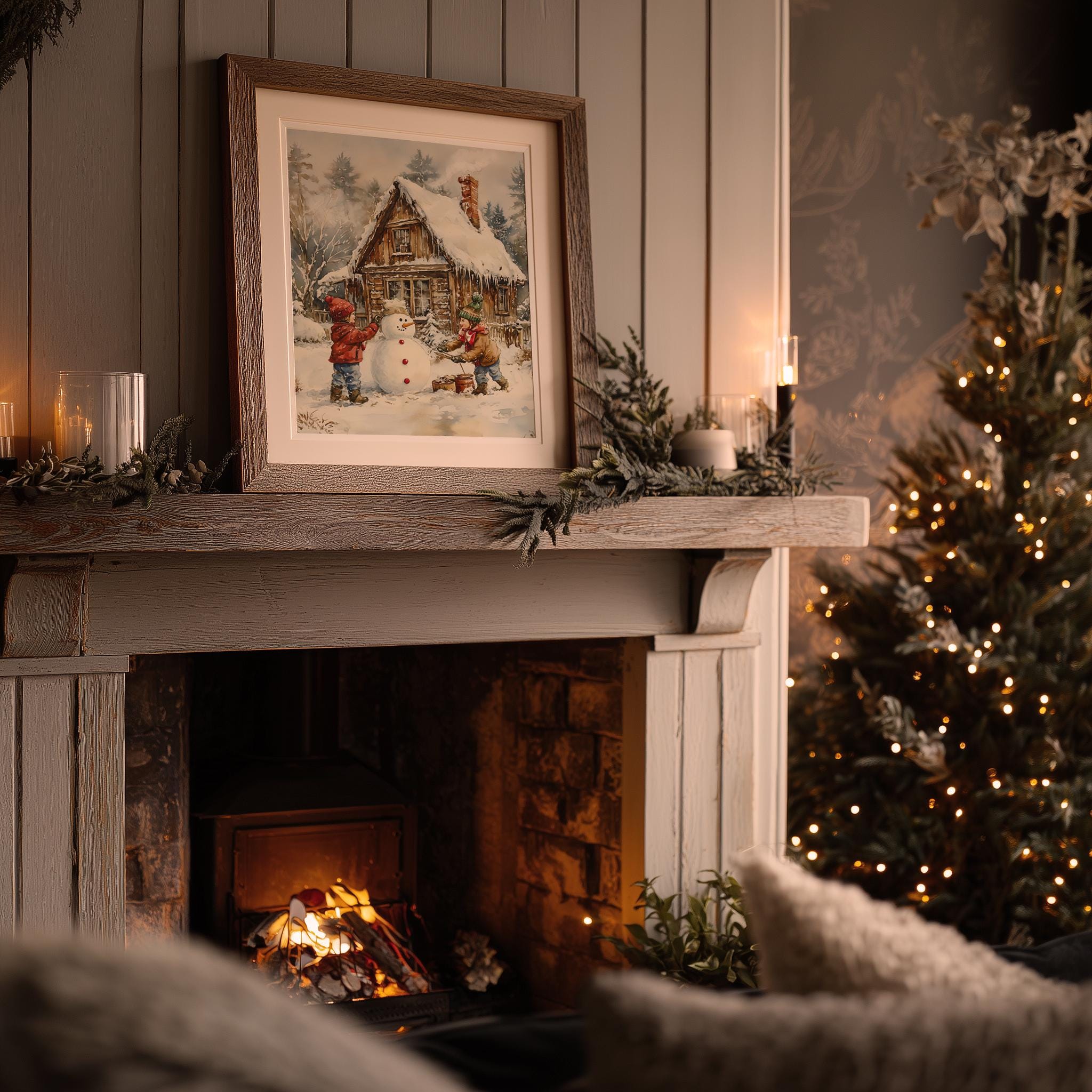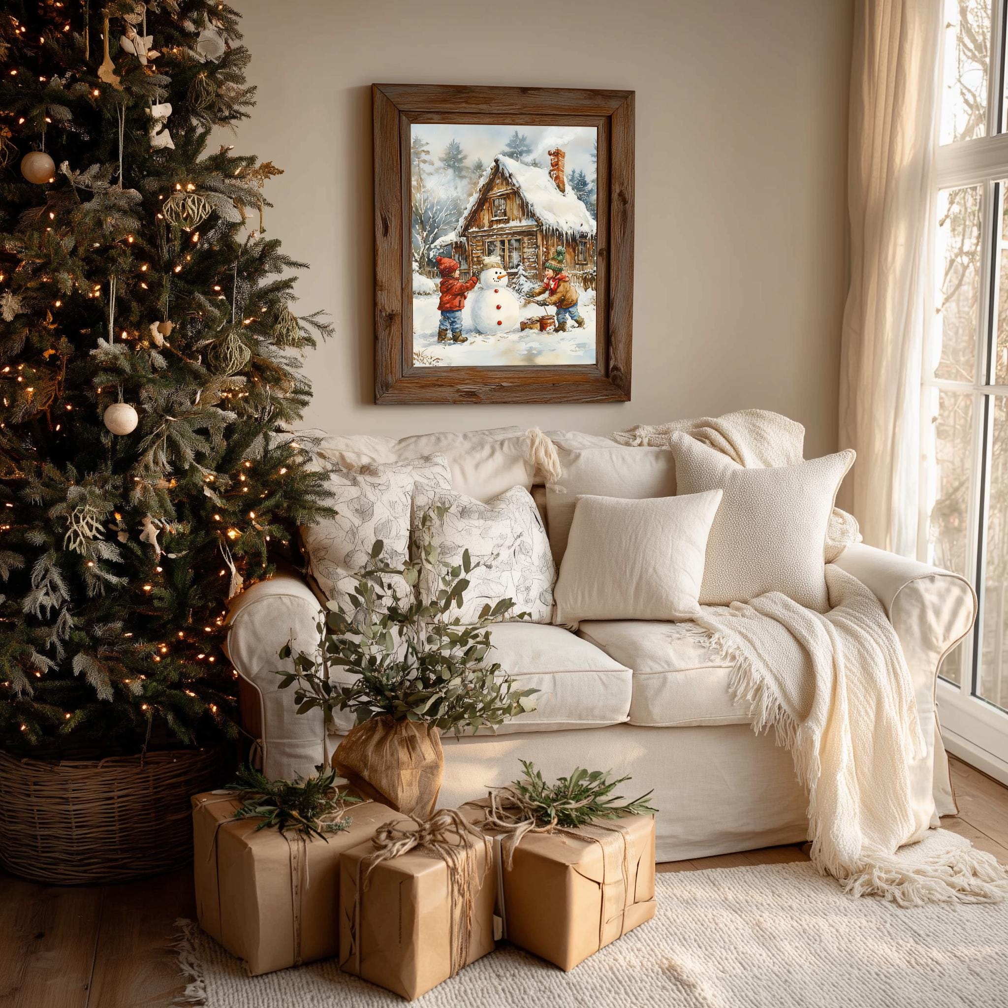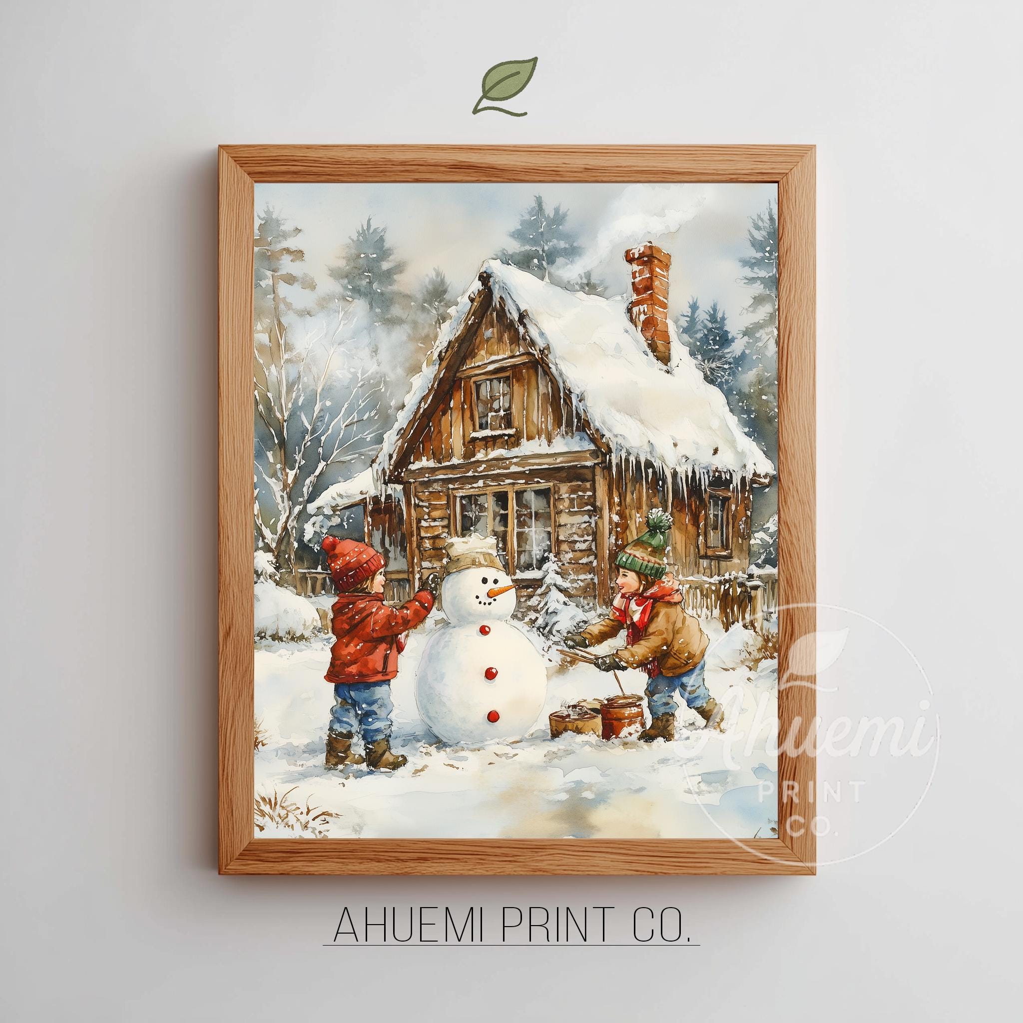 Immerse yourself in the charm with this rustic painting of children joyfully building a snowman in a serene winter landscape. An instantly downloadable print, it's perfect for elevating your decor with budget-friendly charm. This gives you the flexibility to customize the size, frame, and material according to your personal taste and space, ensuring a perfect fit for your walls.