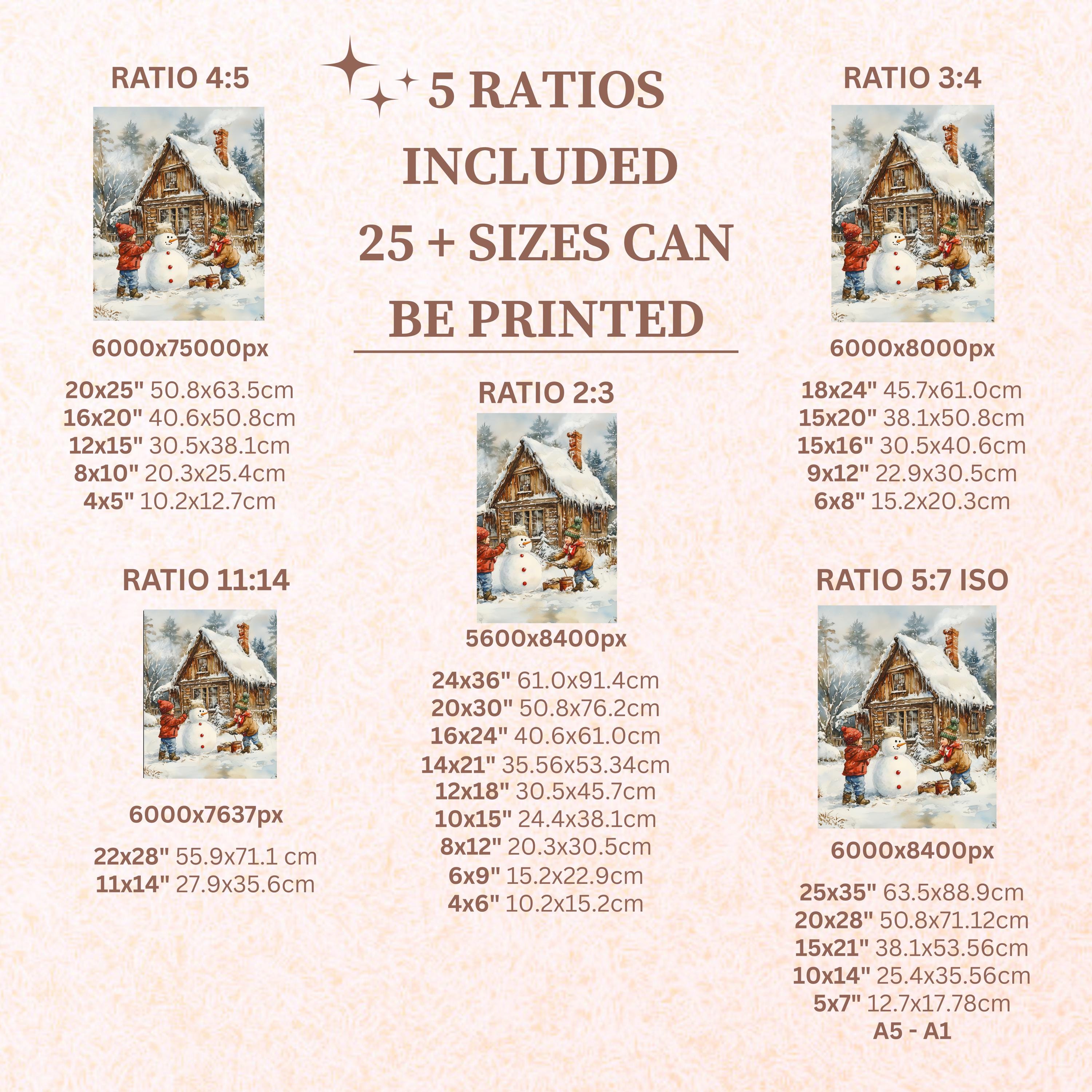 Each artwork includes 5 aspect ratios with 25+ print sizes. Most standard frames are covered. One custom resize per purchase available—message before ordering.