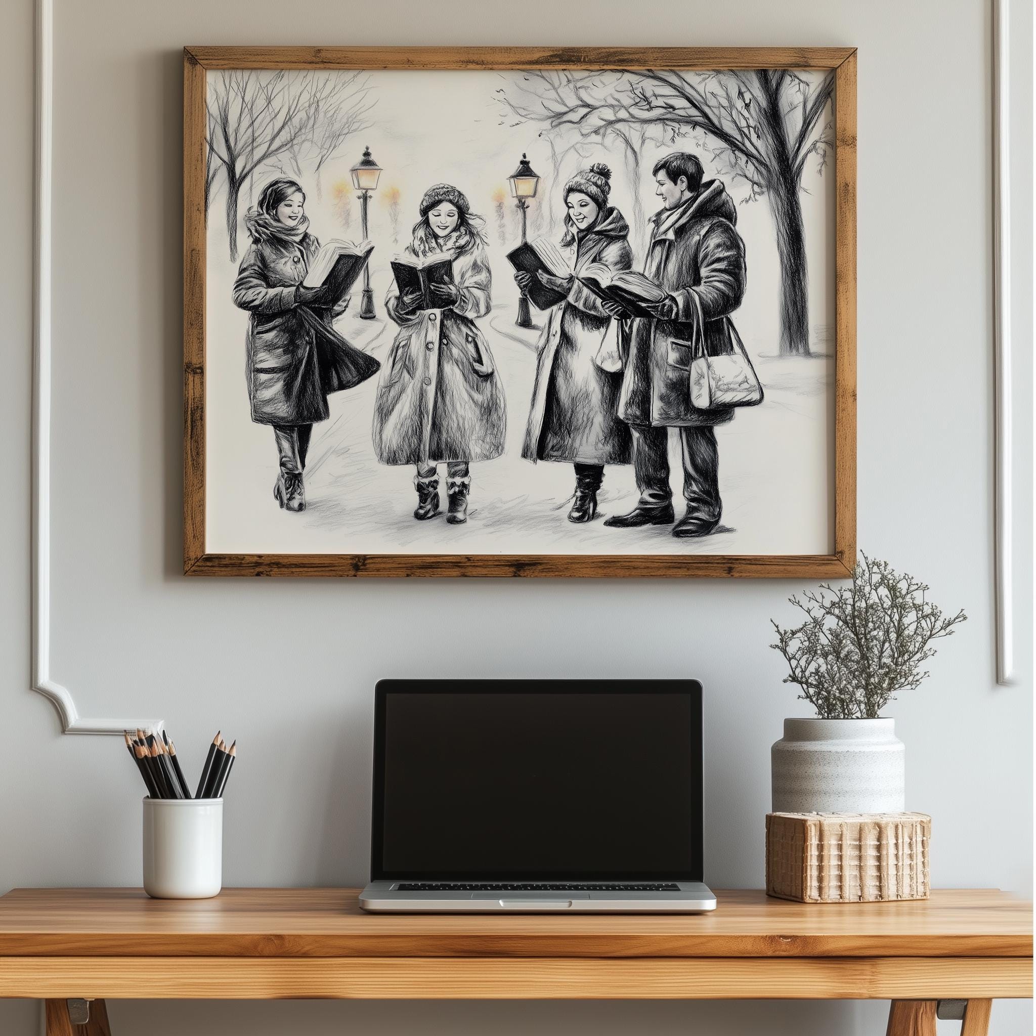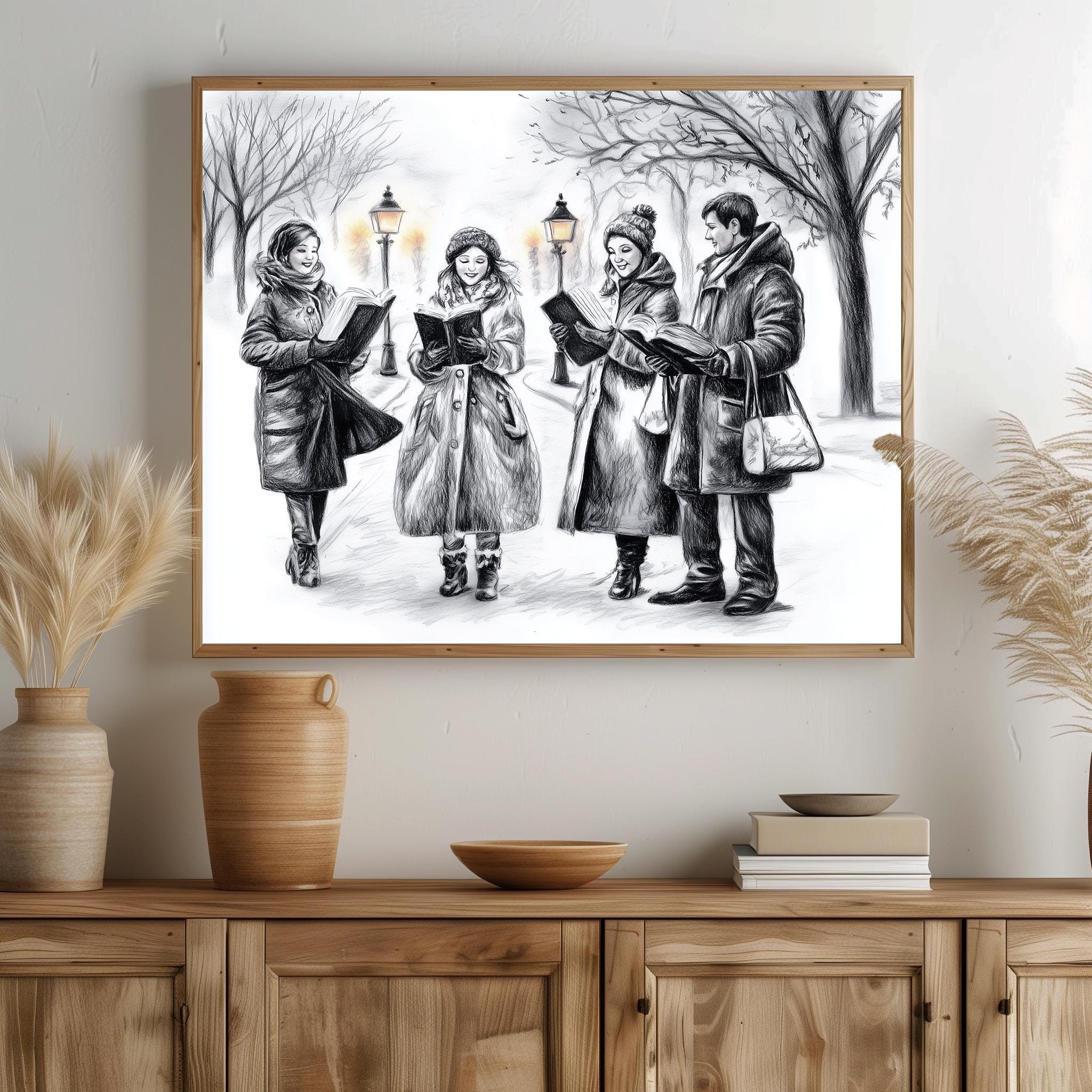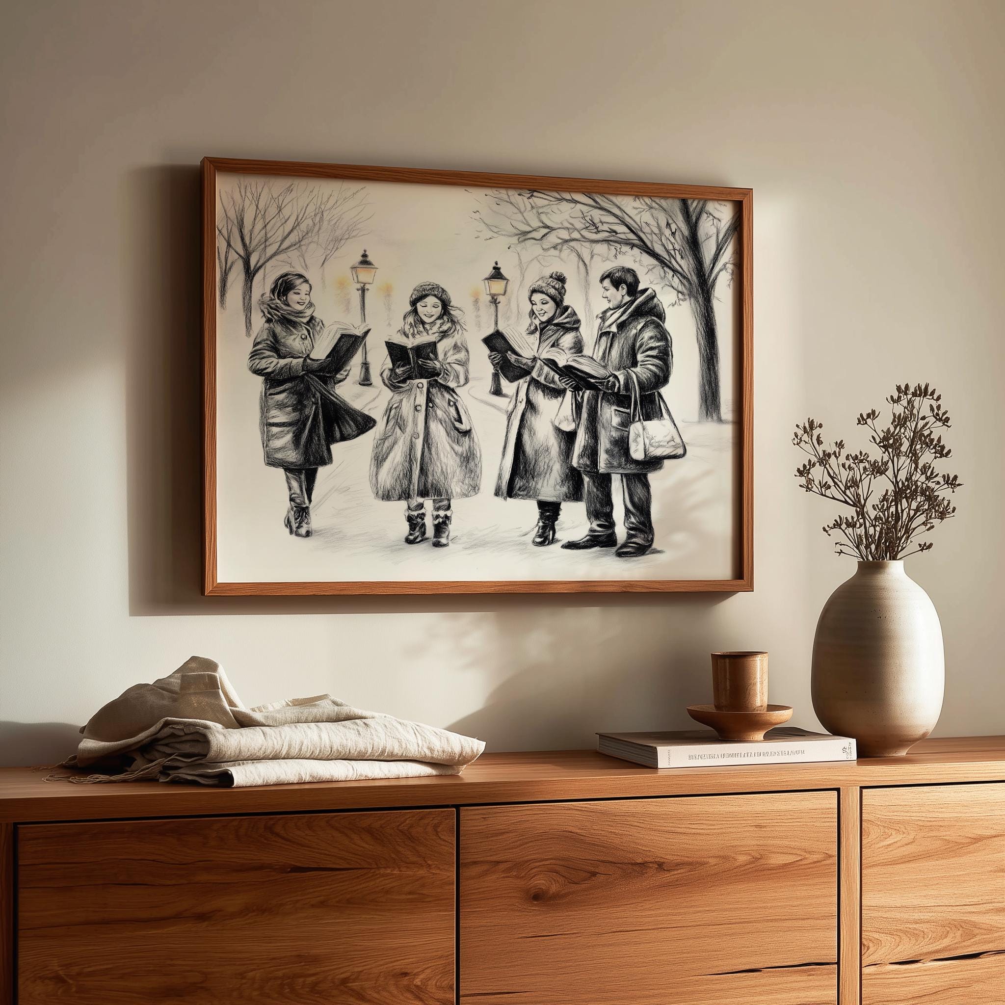 Looking to add a touch of charm to your holiday decor this season? Our Vintage Carolers Illustration is just the thing you need. This rustic holiday wall art captures the magic of Christmas with its classic design—a perfect piece for cozying up your winter decor. Available as a convenient digital download, you can effortlessly bring festive cheer into your home. Imagine this beautiful Christmas art gracing your walls and creating a warm, inviting atmosphere. Plus, it's a seasonal print that keeps the spirit of winter alive all year round if you wish. Trust me, this timeless illustration will surely become a beloved holiday tradition in your home!
