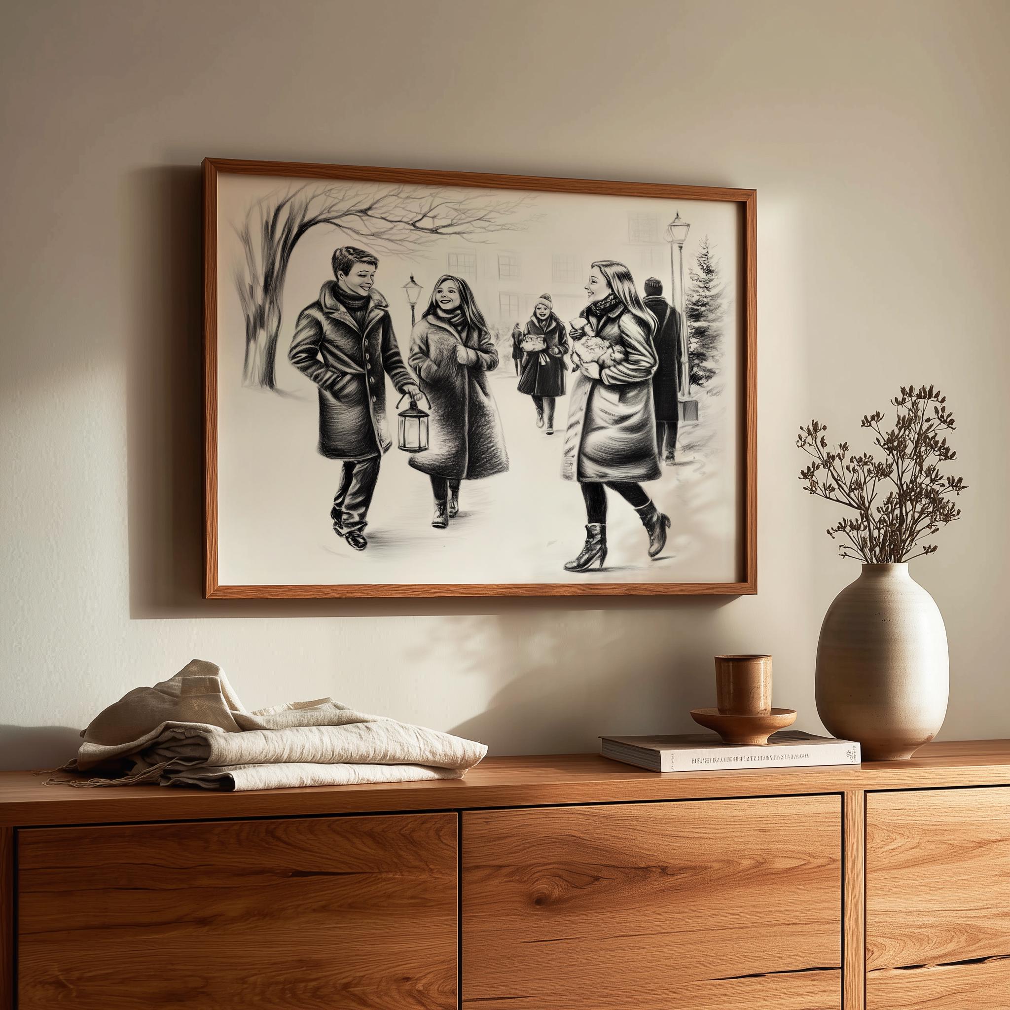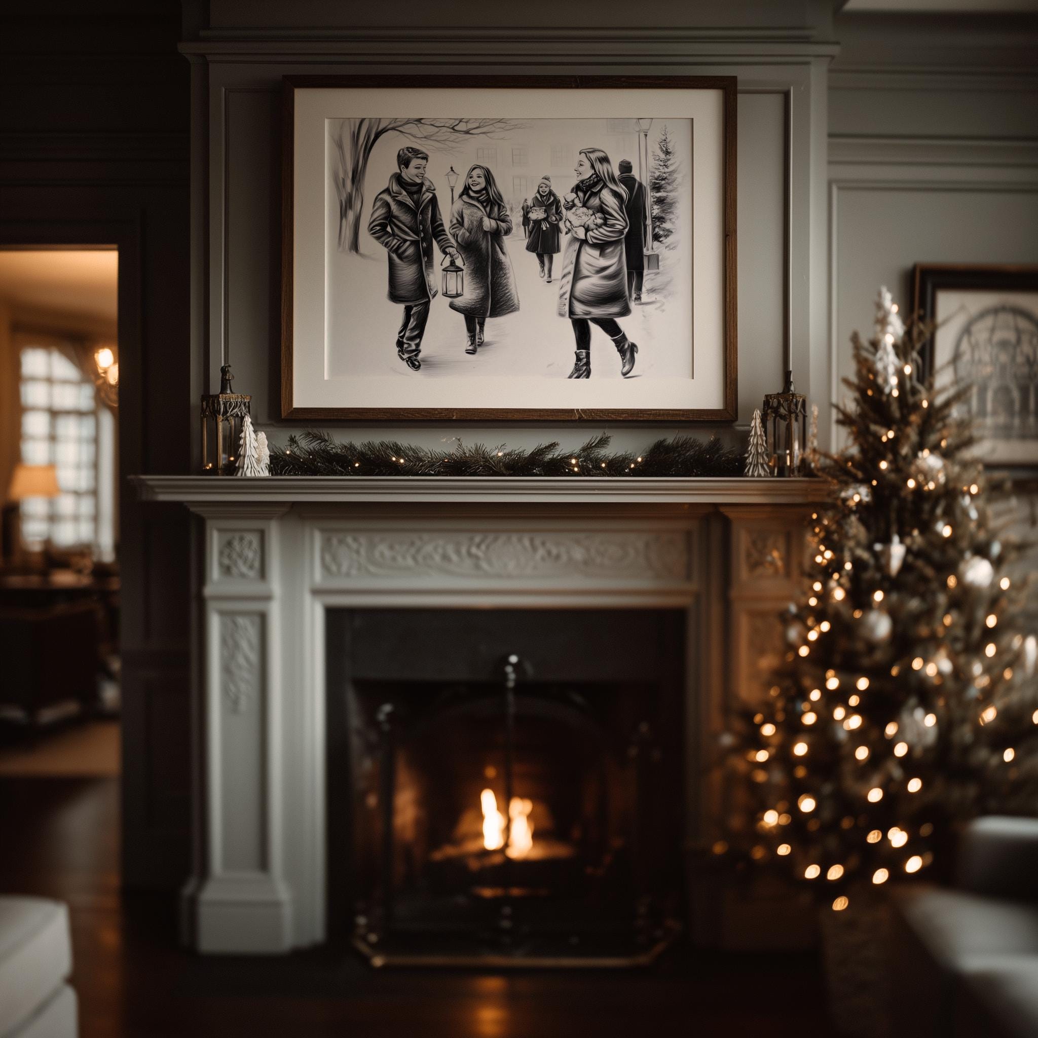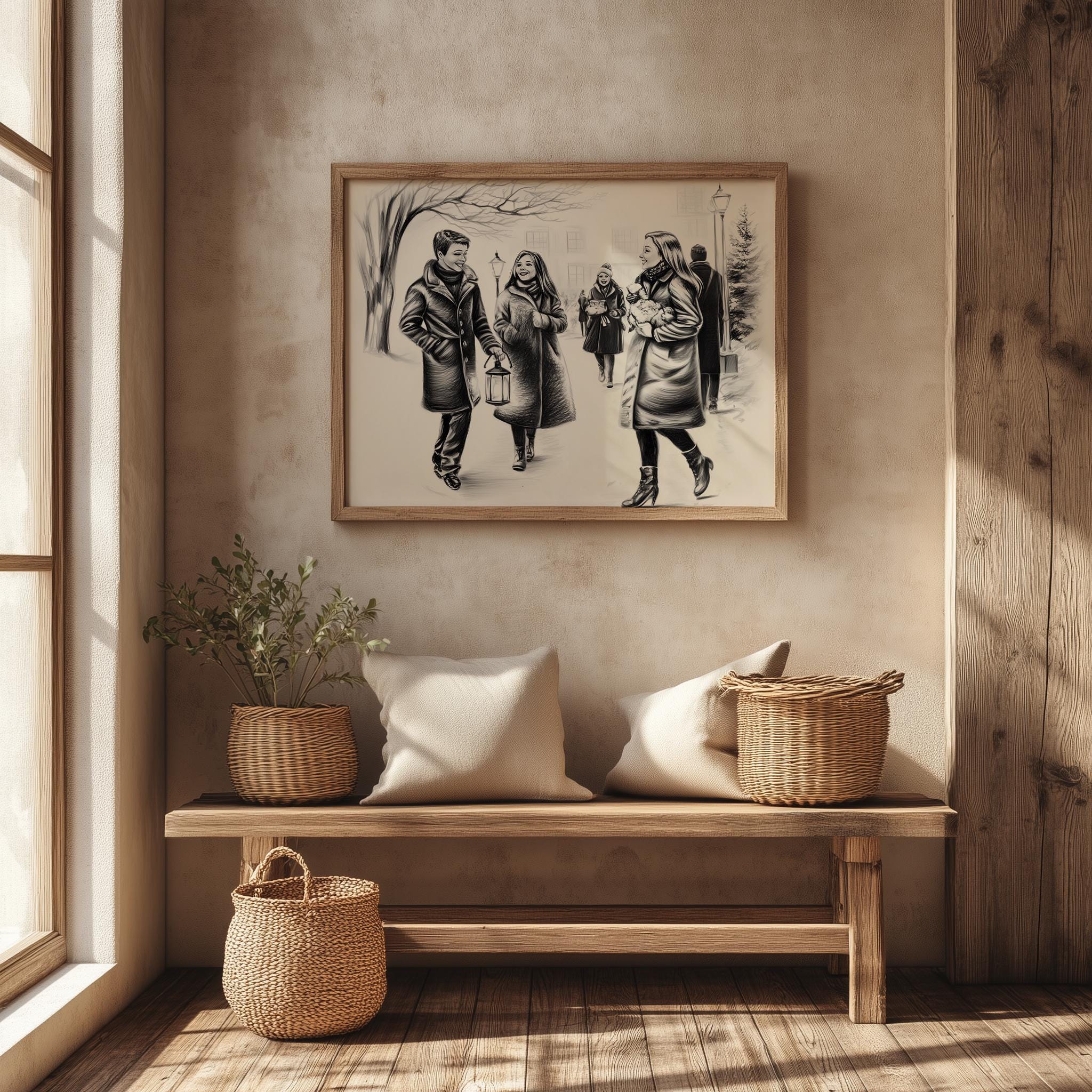 Immerse yourself in the charm with this rustic painting of vintage carolers dressed in winter coats. An instantly downloadable print, it's perfect for elevating your decor with budget-friendly charm. This gives you the flexibility to customize the size, frame, and material according to your personal taste and space, ensuring a perfect fit for your walls.