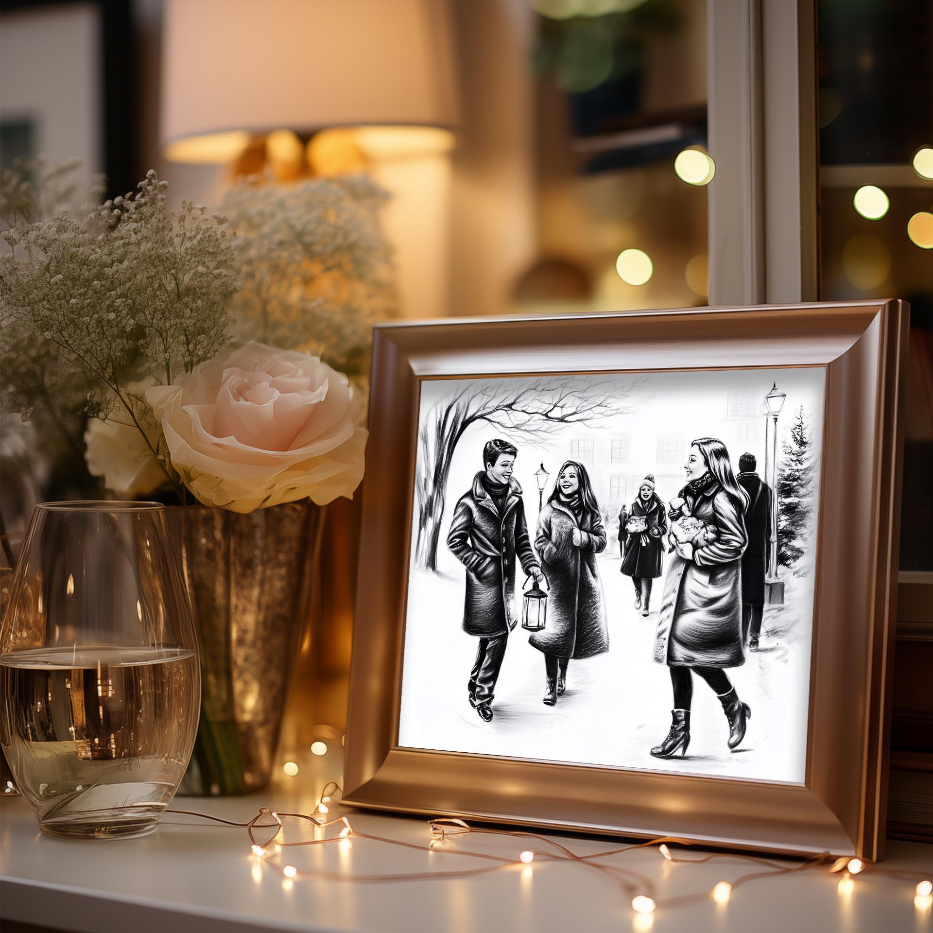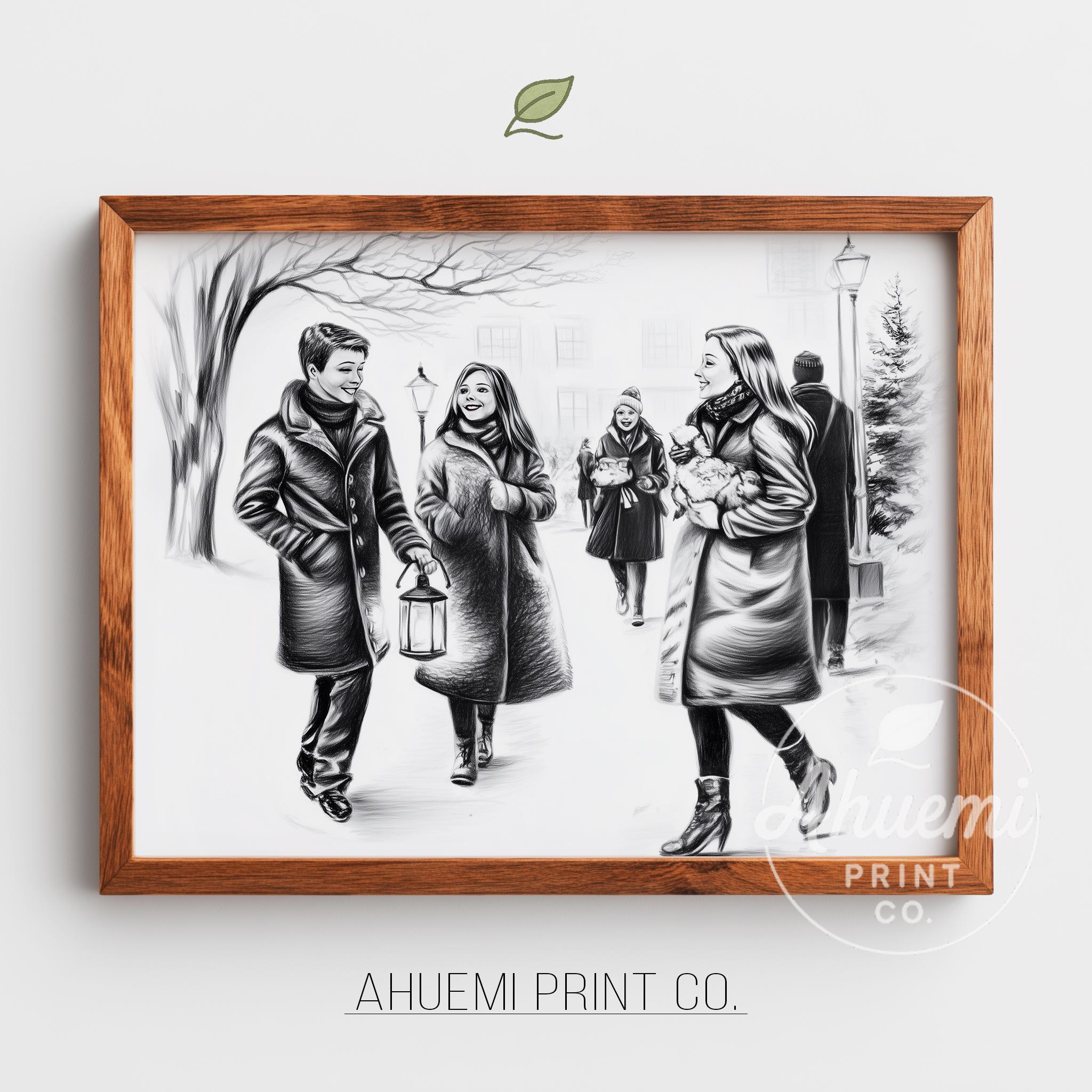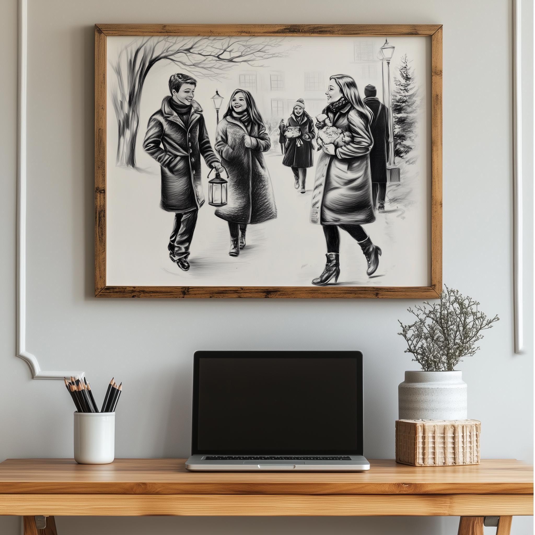 Immerse yourself in the charm with this rustic painting of vintage carolers dressed in winter coats. An instantly downloadable print, it's perfect for elevating your decor with budget-friendly charm. This gives you the flexibility to customize the size, frame, and material according to your personal taste and space, ensuring a perfect fit for your walls.