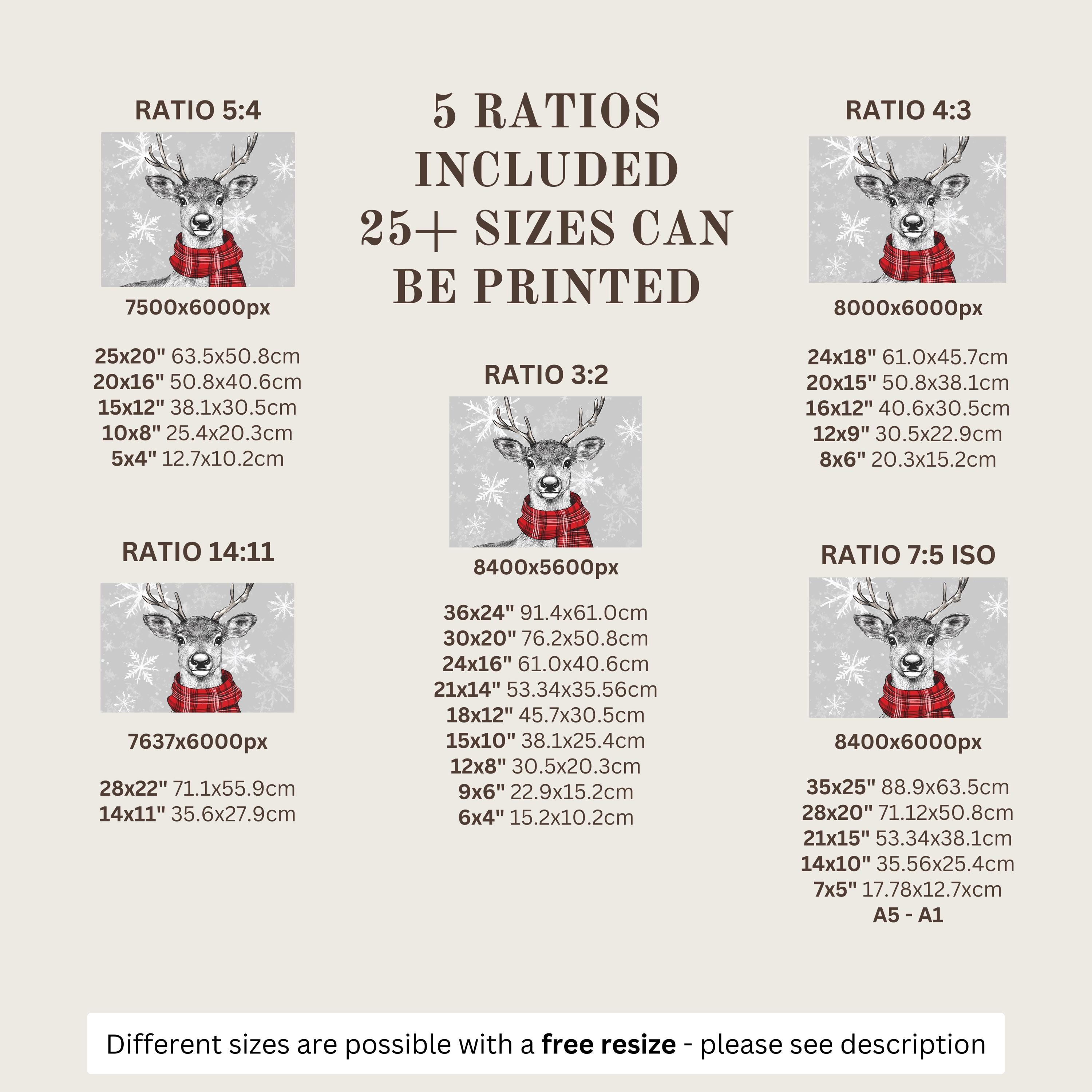 Each artwork includes 5 aspect ratios with 25+ print sizes. Most standard frames are covered. One custom resize per purchase available—message before ordering.