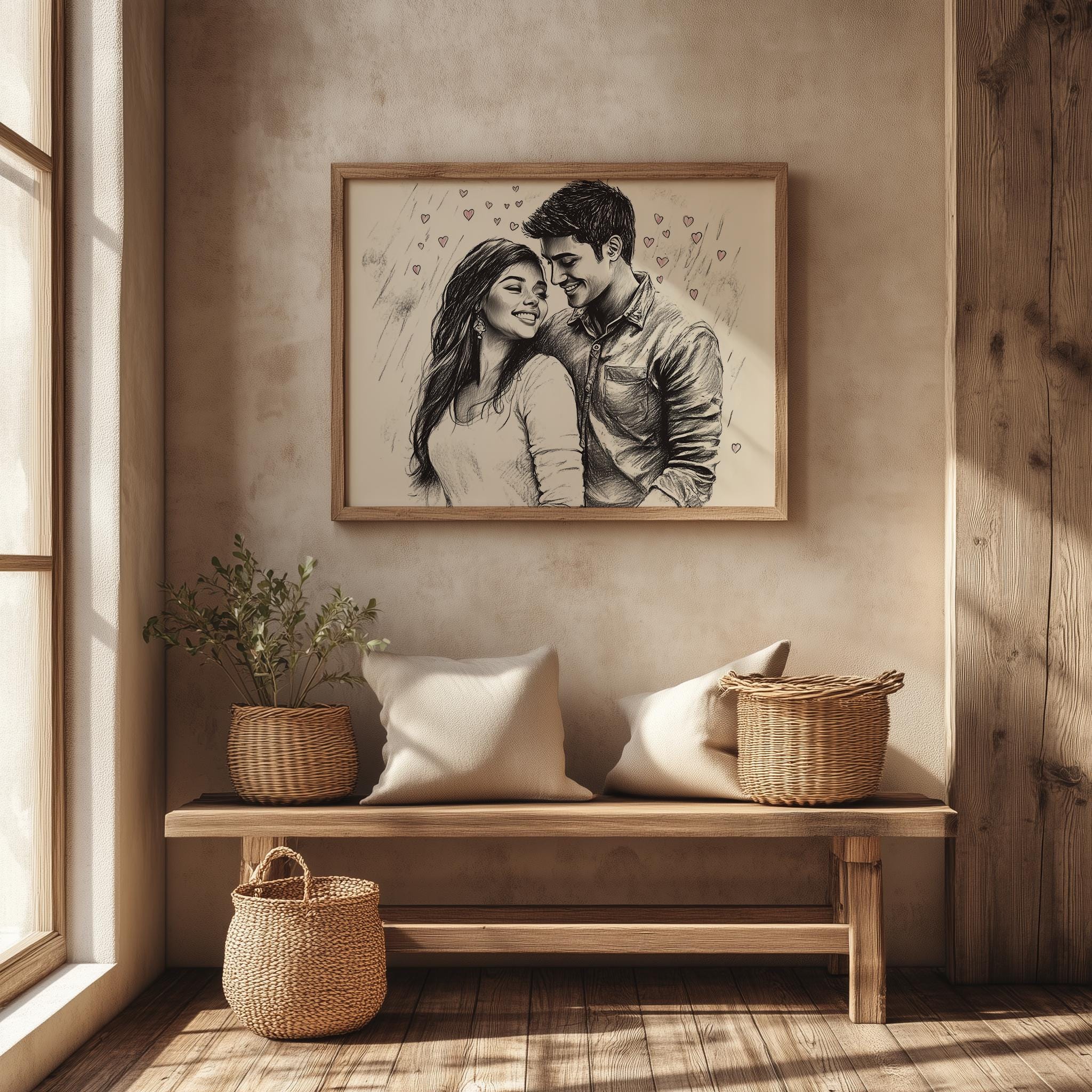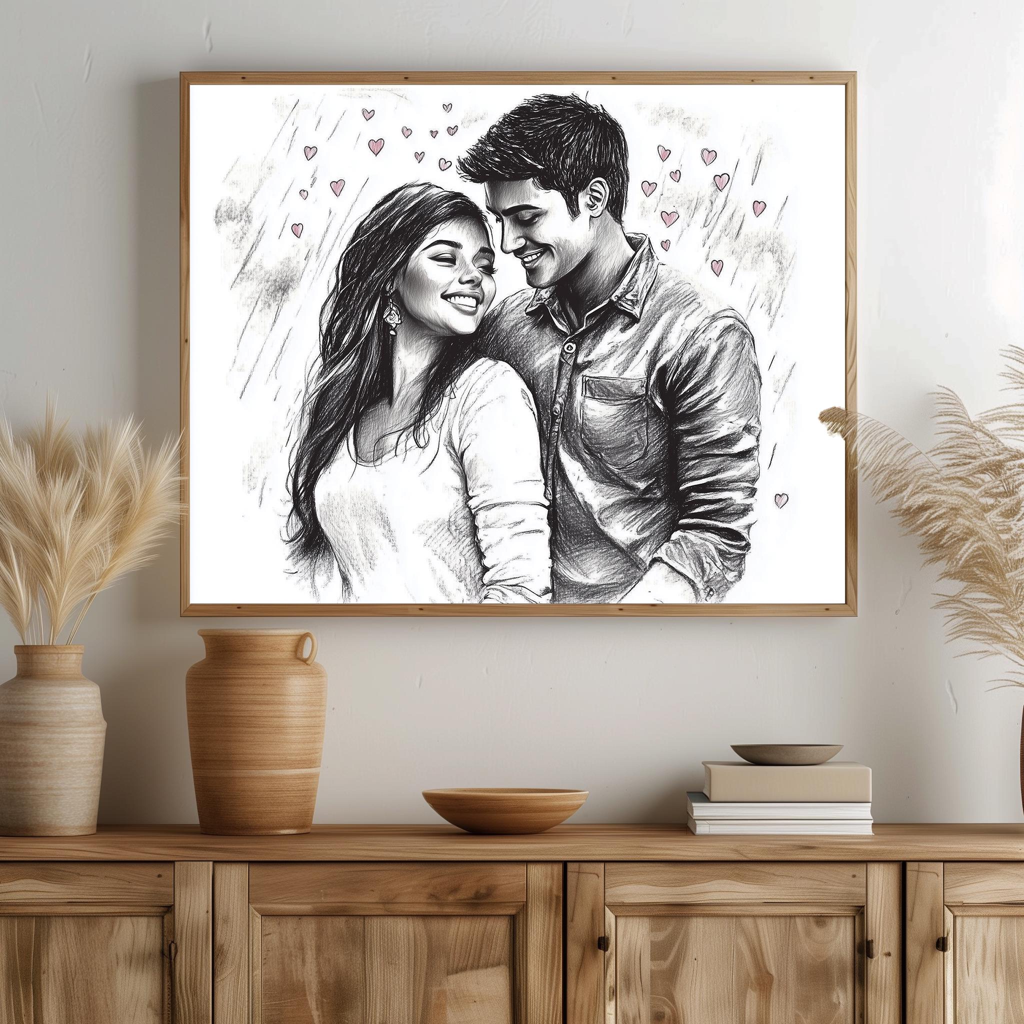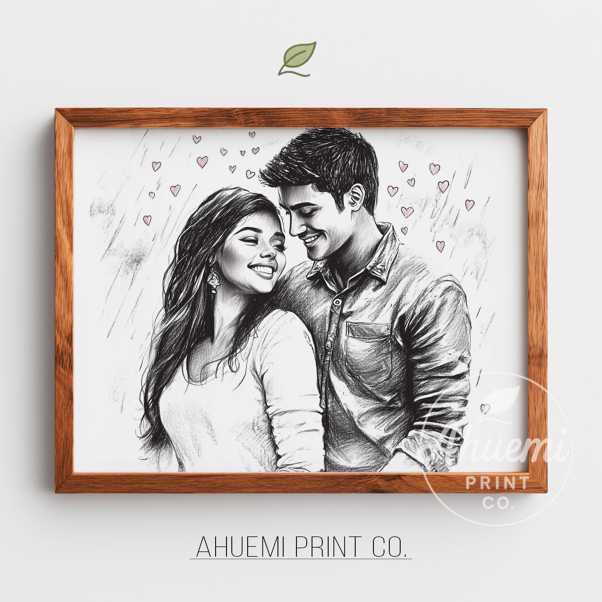 Immerse yourself in the charm with this rustic painting of a romantic couple sharing a tender moment in the rain. An instantly downloadable print, it's perfect for elevating your decor with budget-friendly charm. This gives you the flexibility to customize the size, frame, and material according to your personal taste and space, ensuring a perfect fit for your walls.