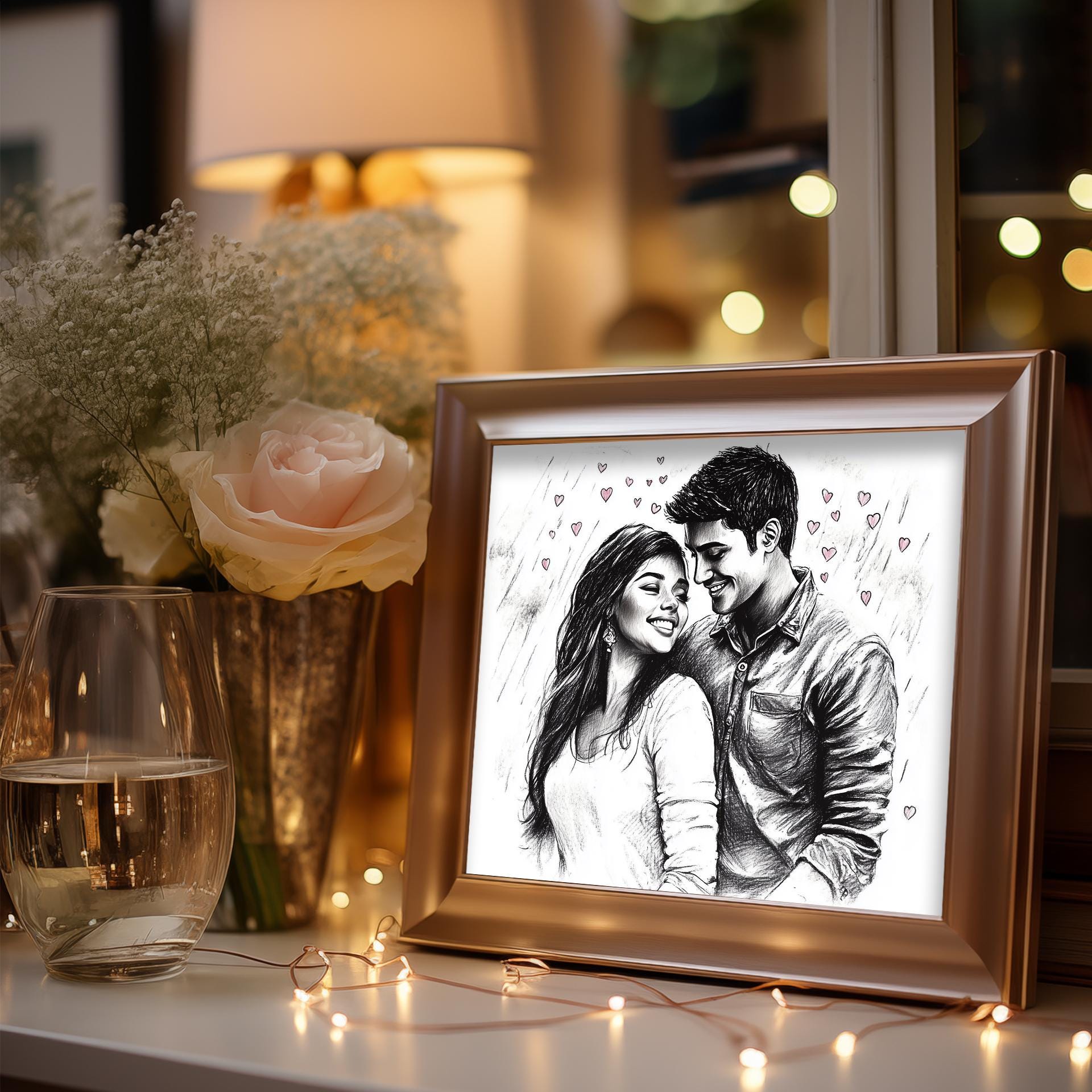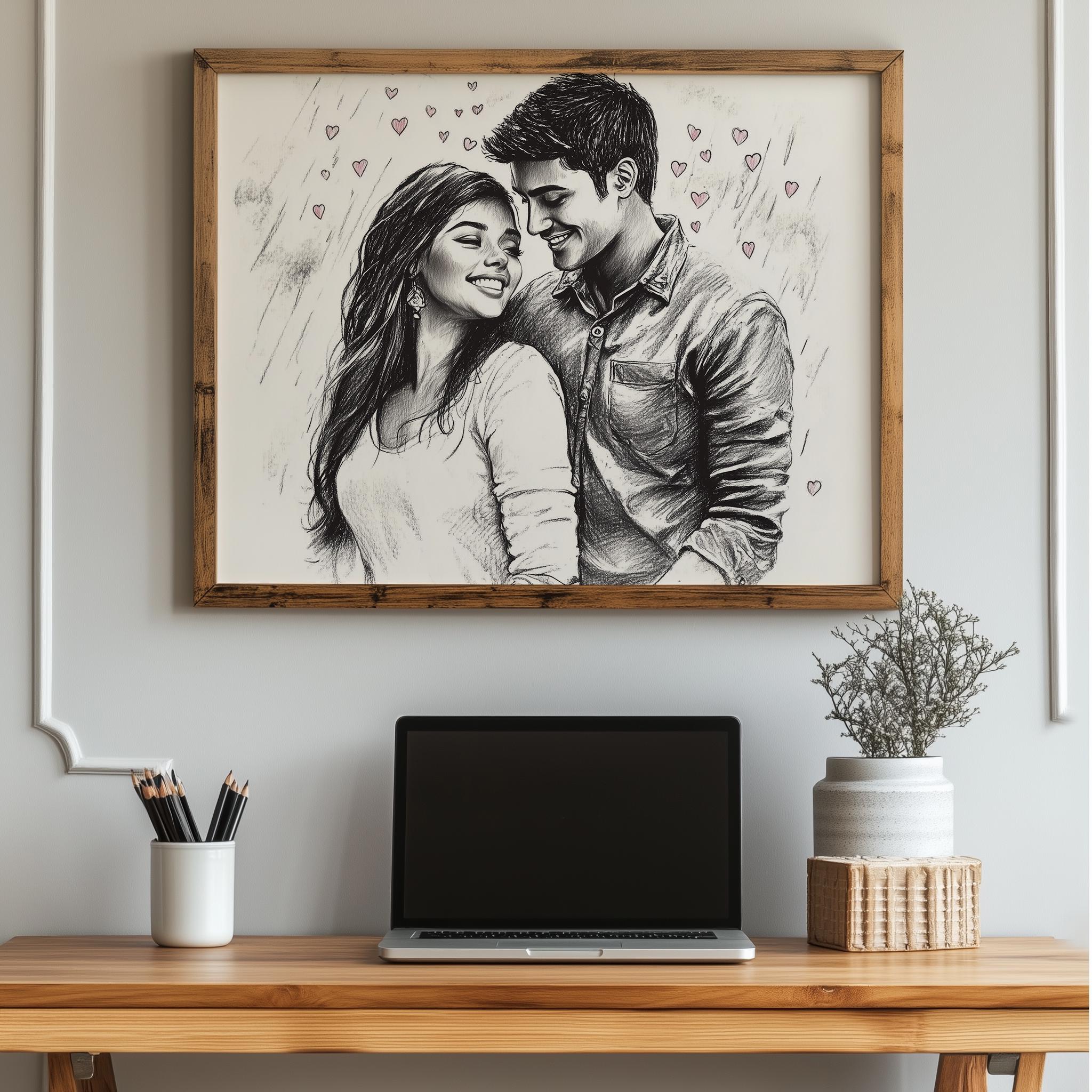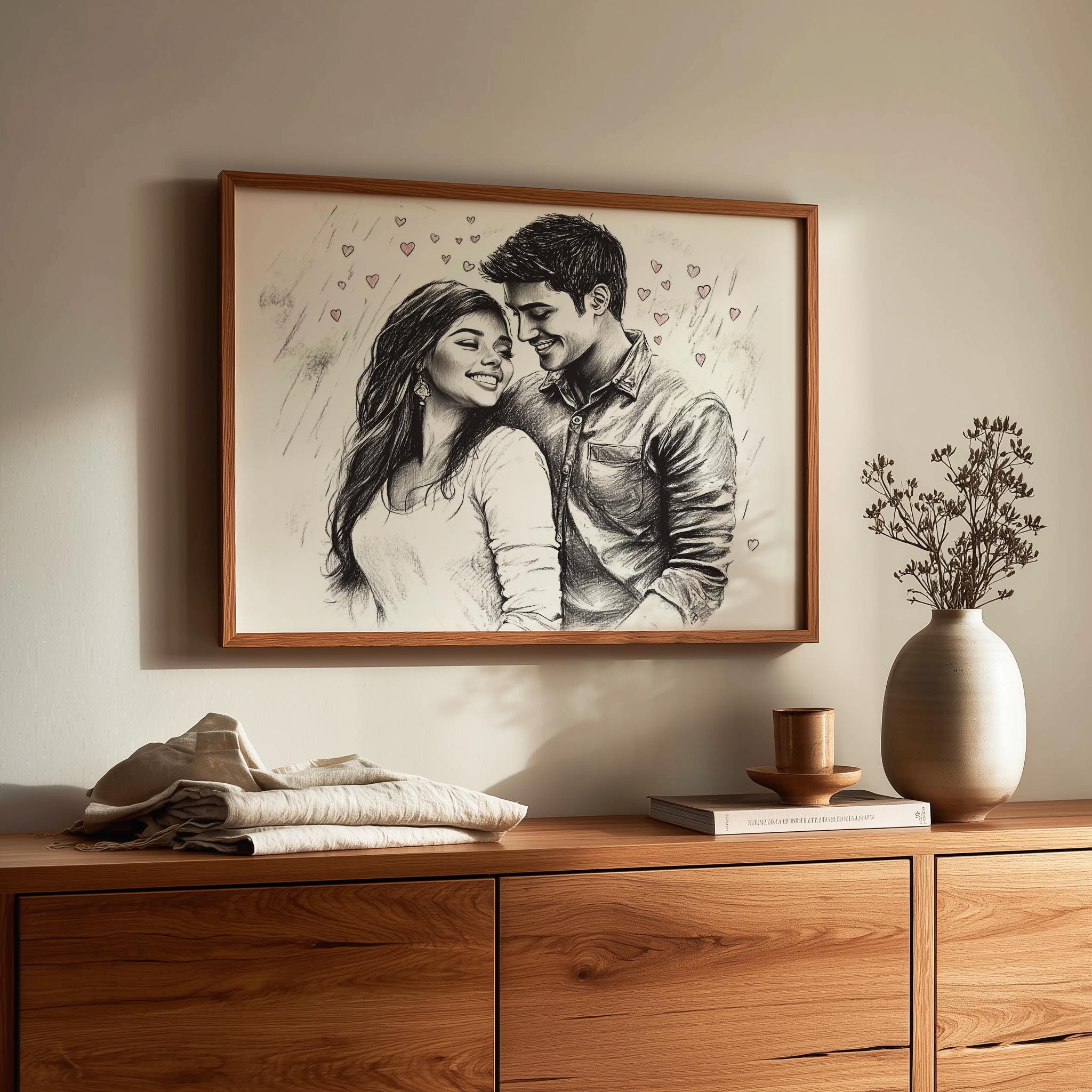 Immerse yourself in the charm with this rustic painting of a romantic couple sharing a tender moment in the rain. An instantly downloadable print, it's perfect for elevating your decor with budget-friendly charm. This gives you the flexibility to customize the size, frame, and material according to your personal taste and space, ensuring a perfect fit for your walls.