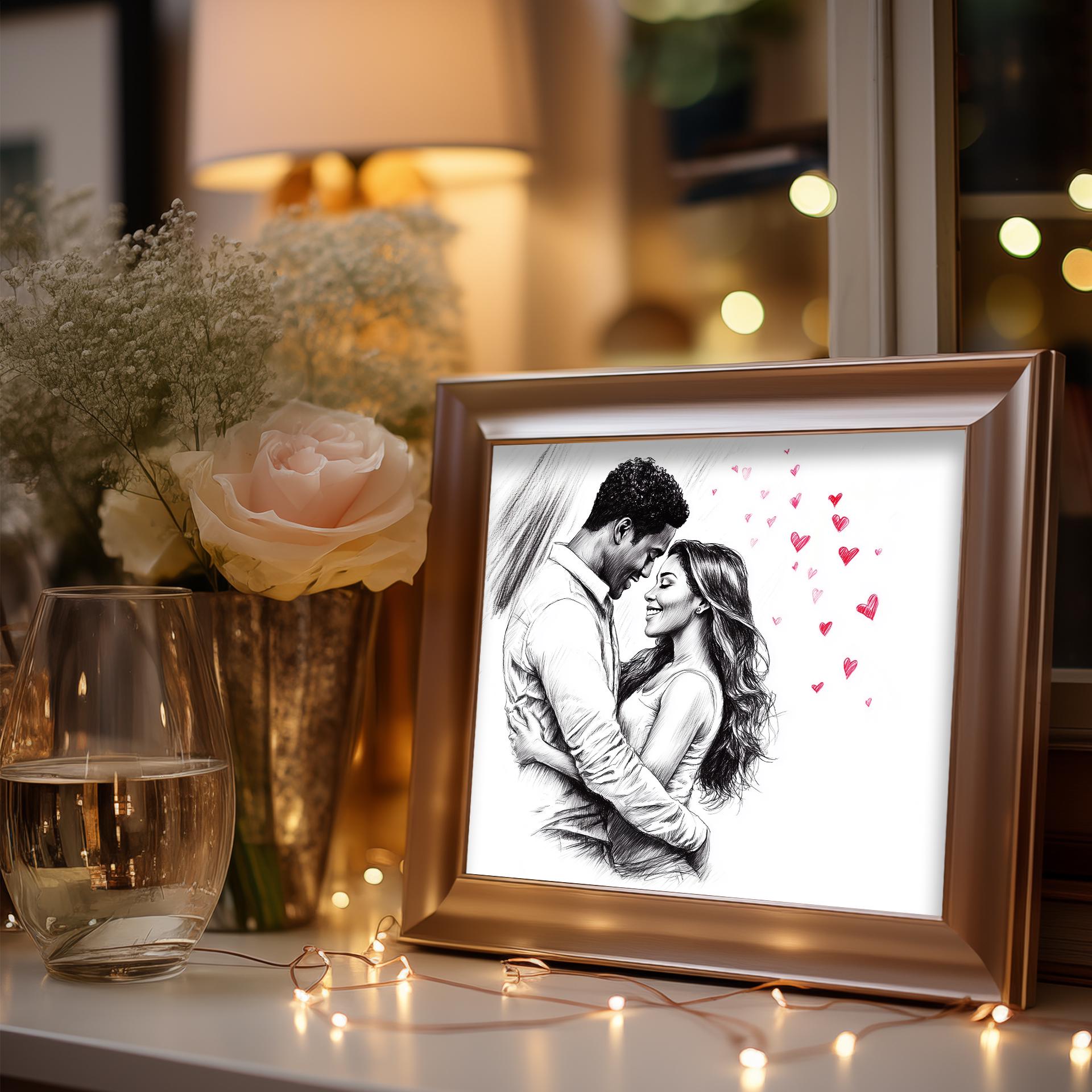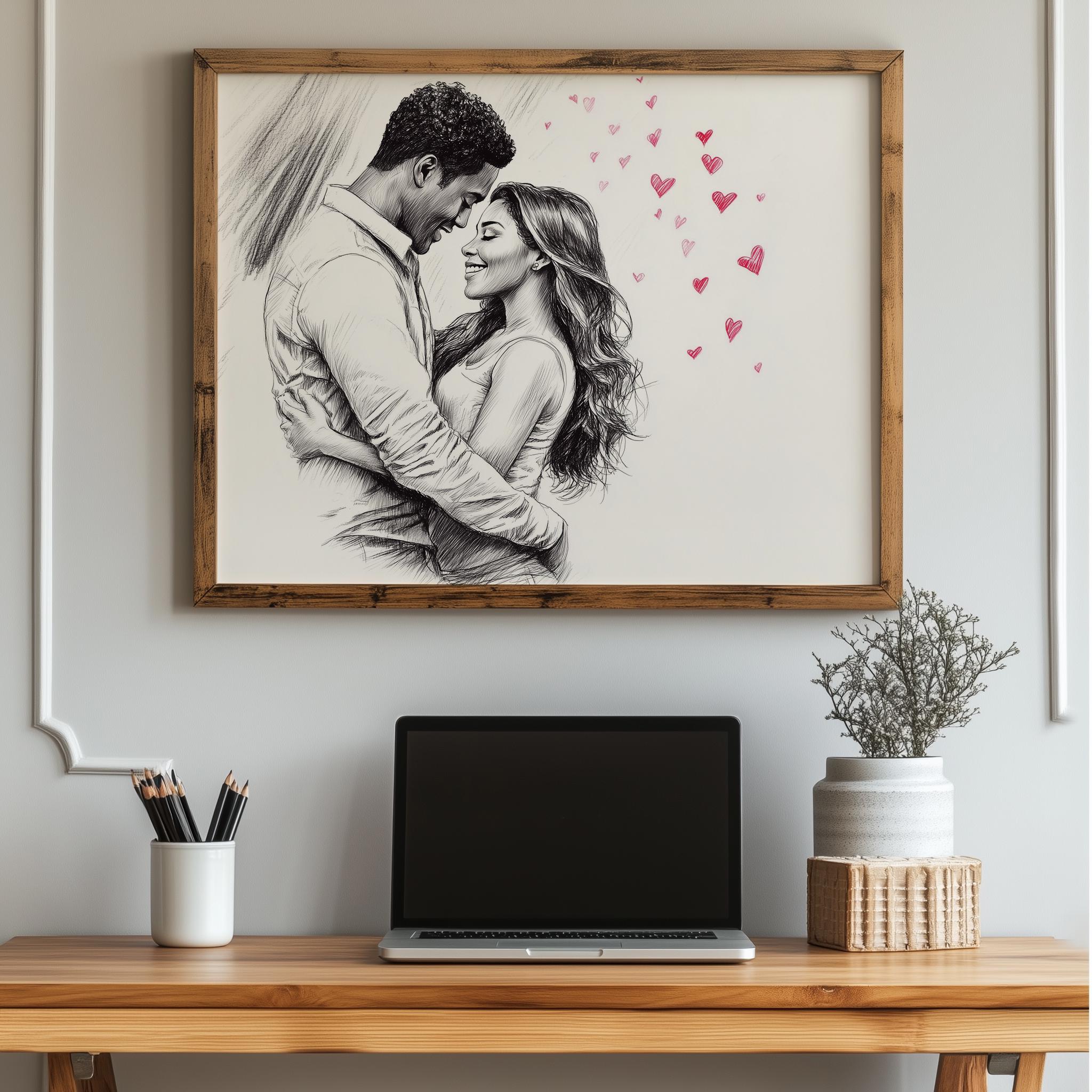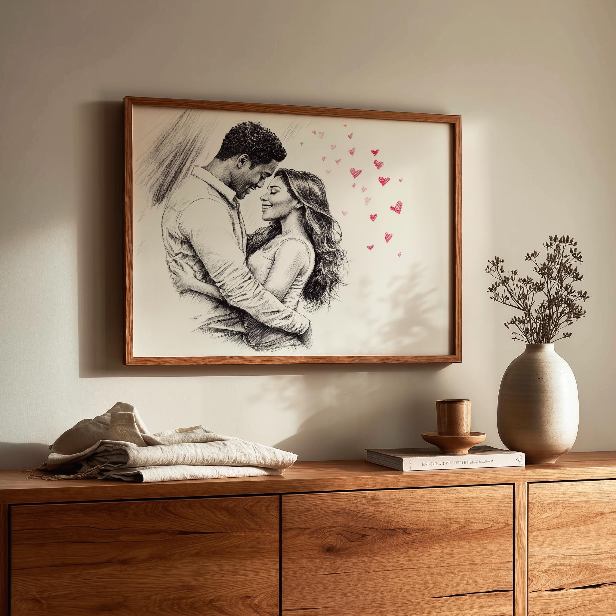 Immerse yourself in the charm with this rustic painting of a loving black couple sharing a tender embrace, captured in a minimalist style. An instantly downloadable print, it's perfect for elevating your decor with budget-friendly charm. This gives you the flexibility to customize the size, frame, and material according to your personal taste and space, ensuring a perfect fit for your walls.