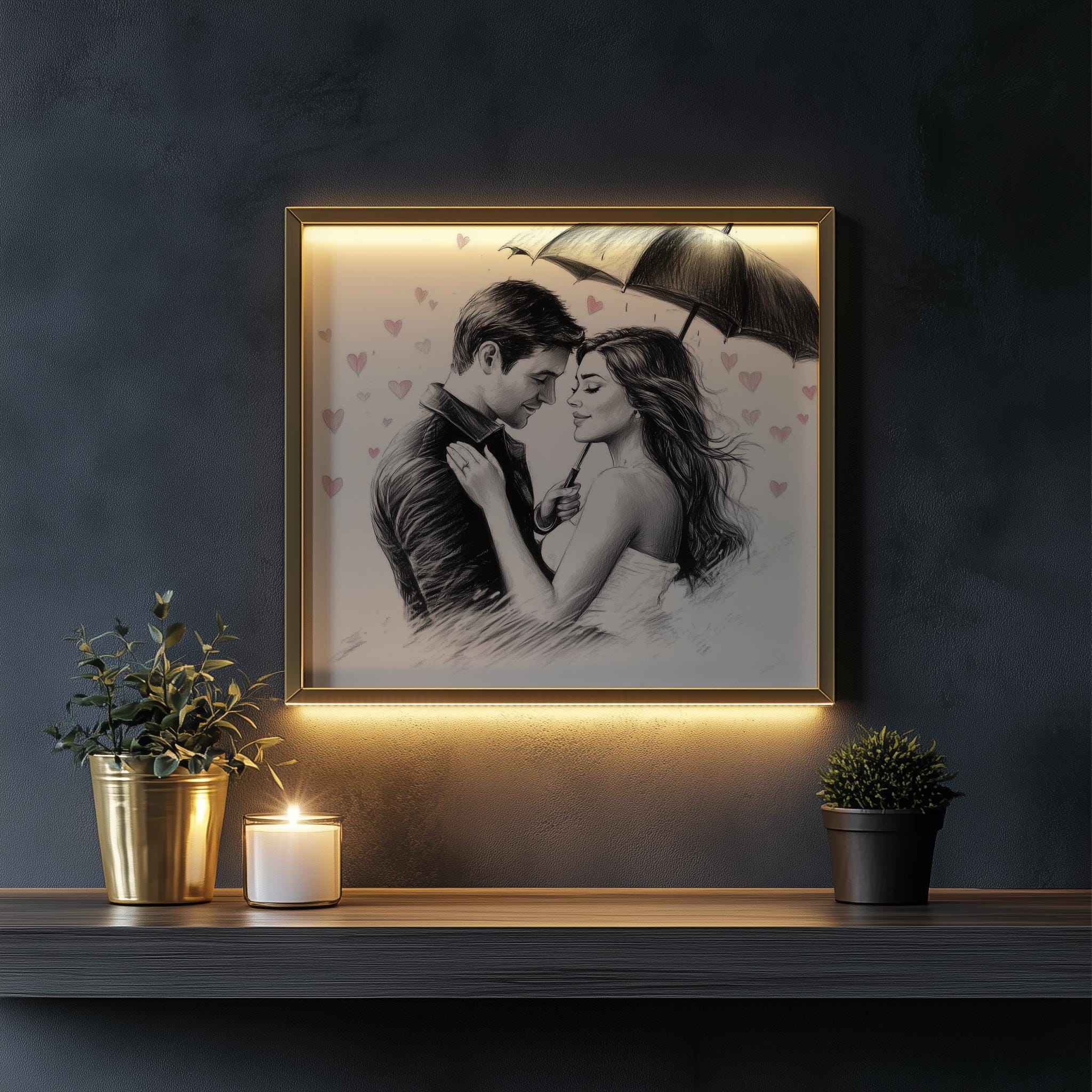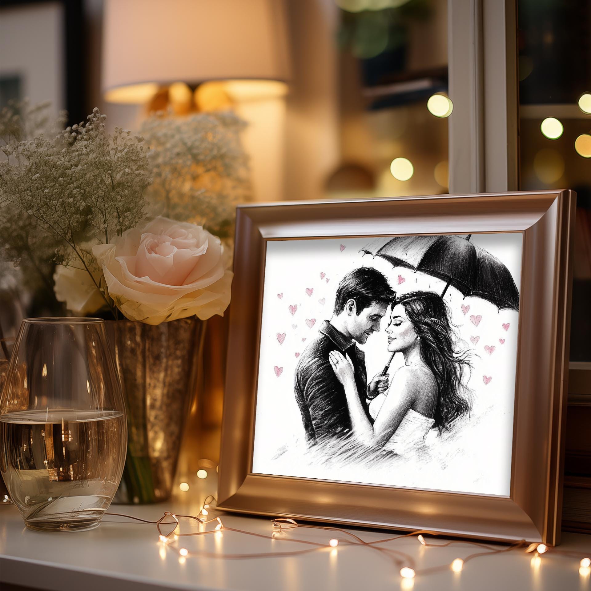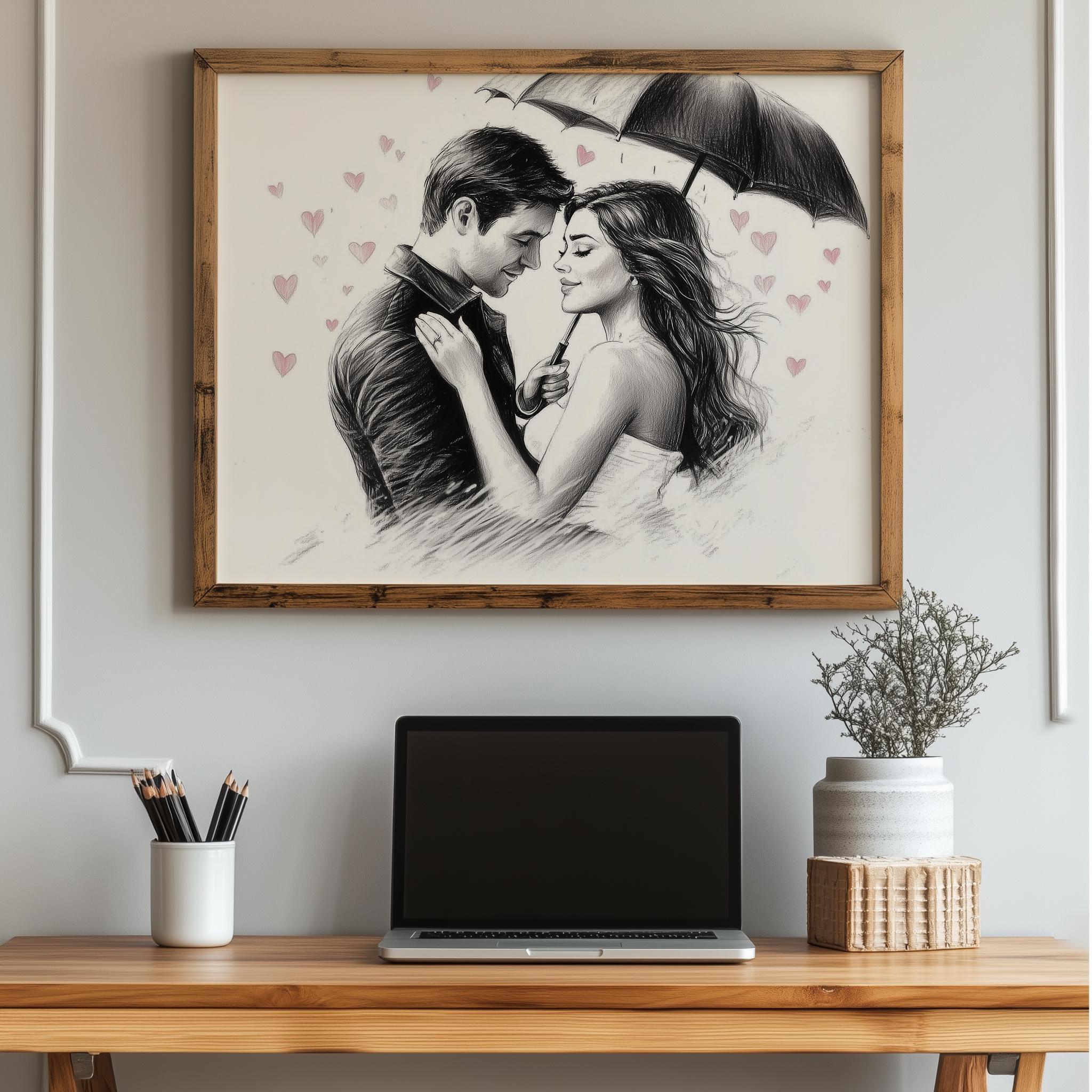 Immerse yourself in the charm with this rustic painting of a loving couple sharing an umbrella. An instantly downloadable print, it's perfect for elevating your decor with budget-friendly charm. This gives you the flexibility to customize the size, frame, and material according to your personal taste and space, ensuring a perfect fit for your walls.