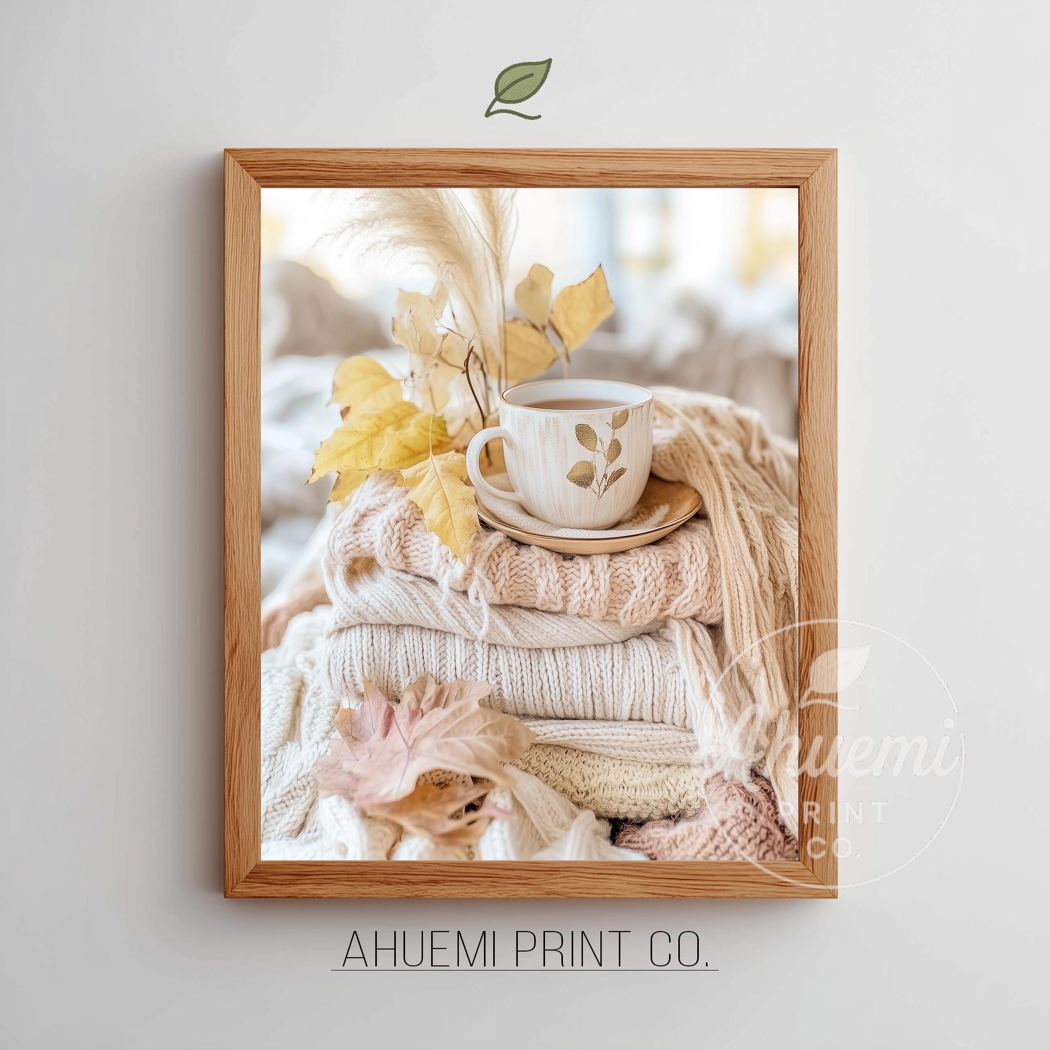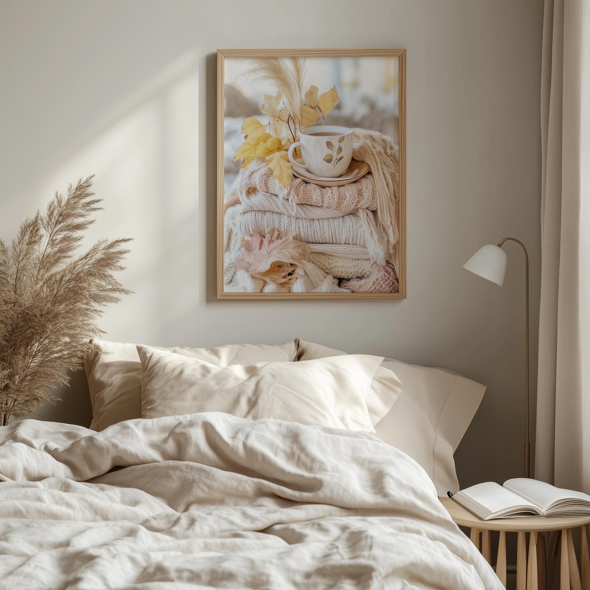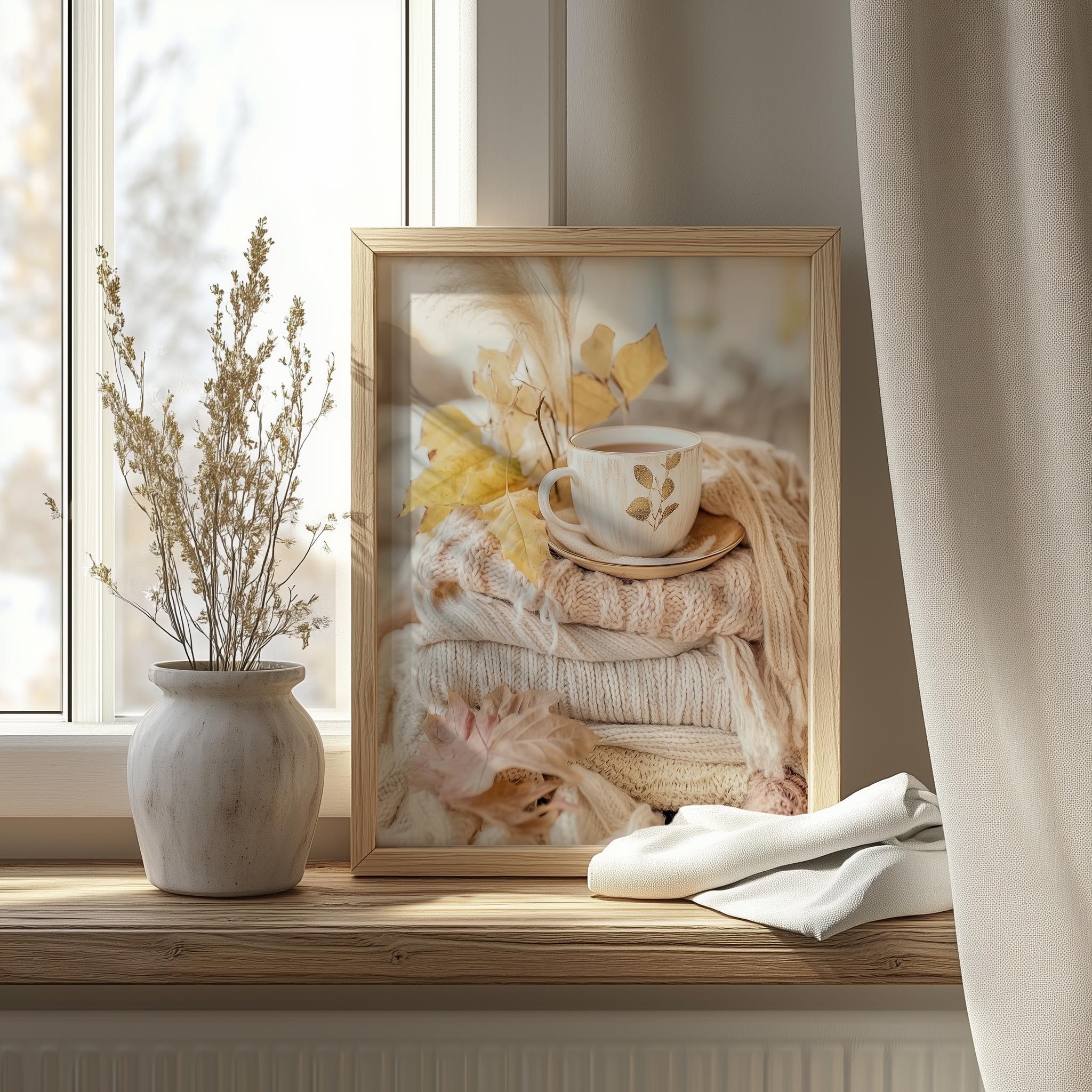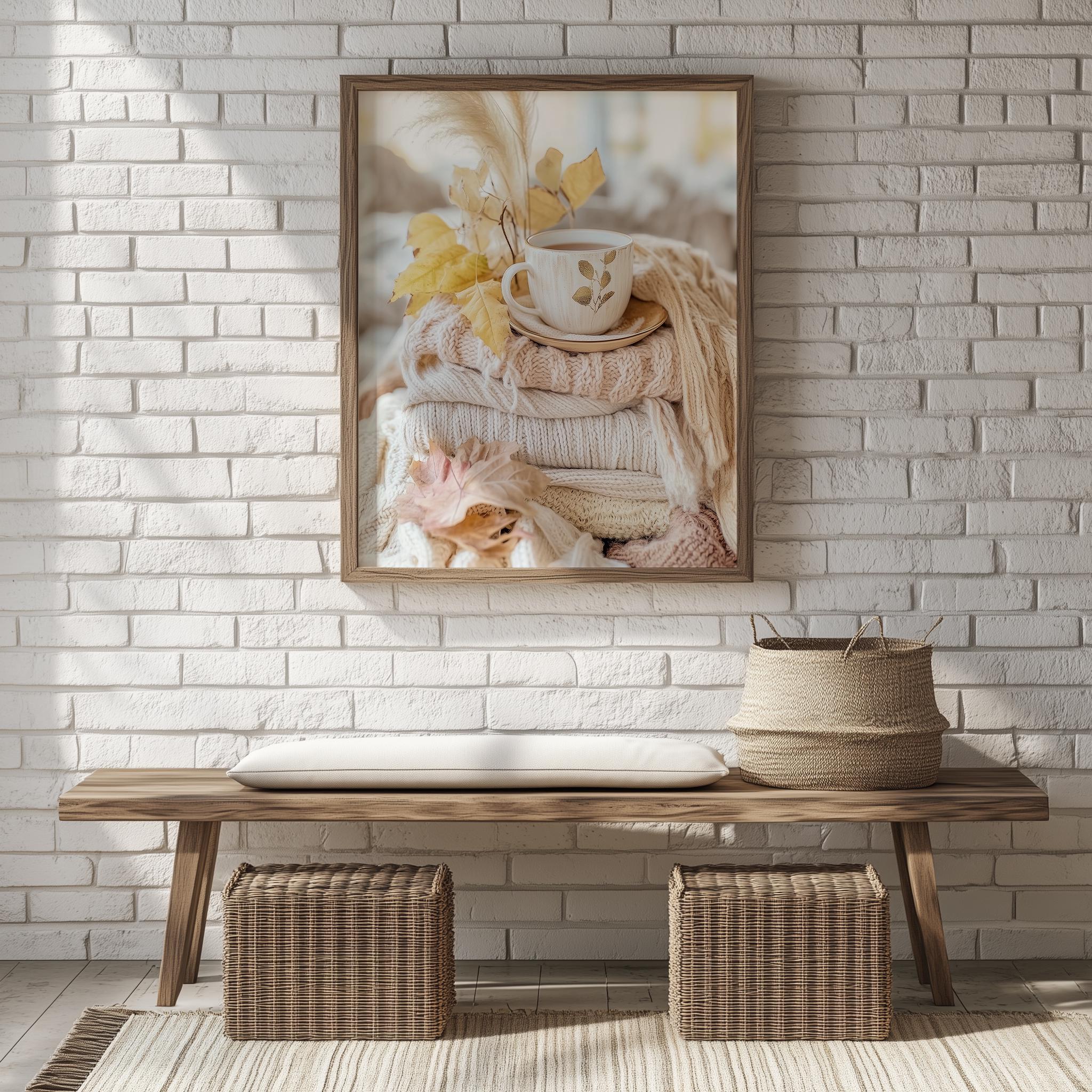 Immerse yourself in the charm with this rustic painting ofa serene still life featuring cozy knitted blankets and warm, inviting tones. An instantly downloadable print, it's perfect for elevating your decor with budget friendly charm. This gives you the flexibility to customize the size, frame, and material according to your personal taste and space, ensuring a perfect fit for your walls.