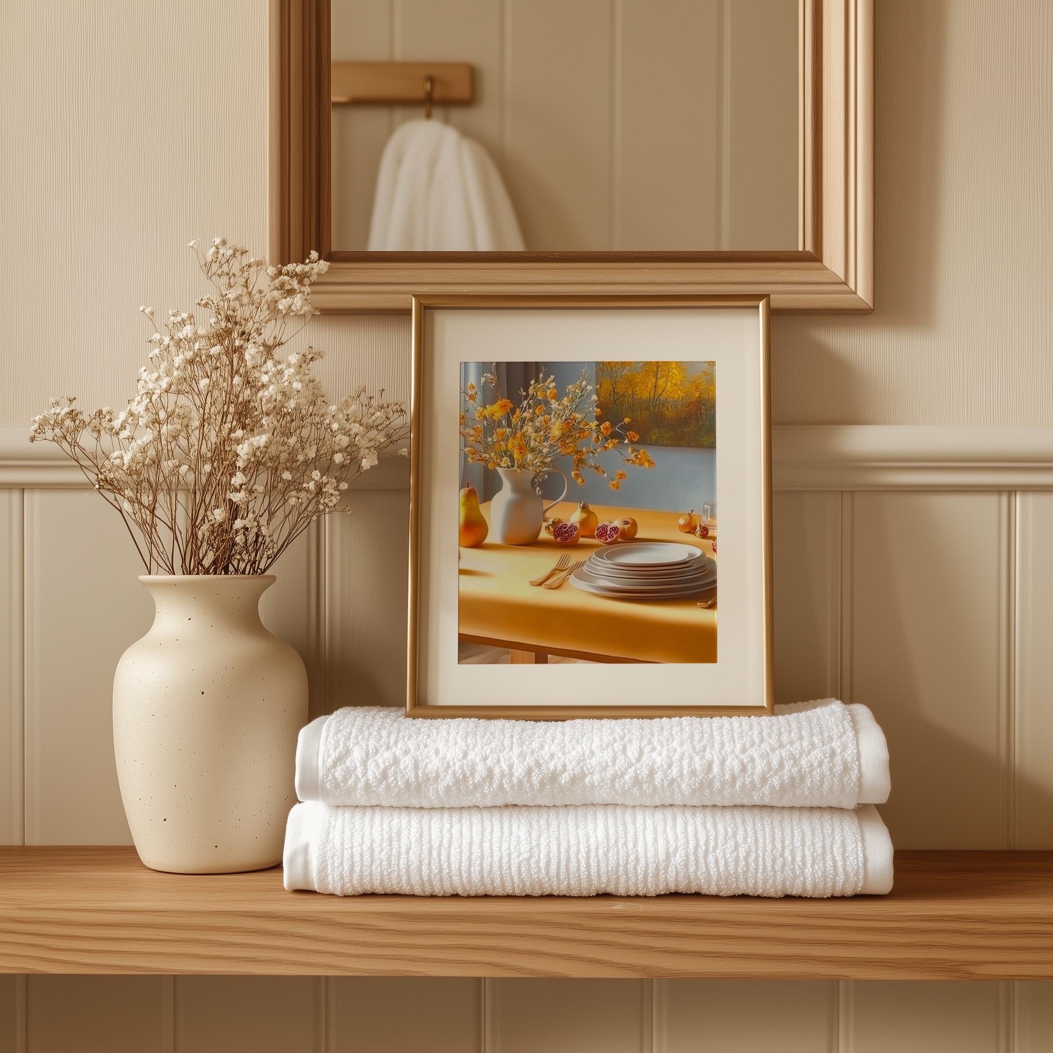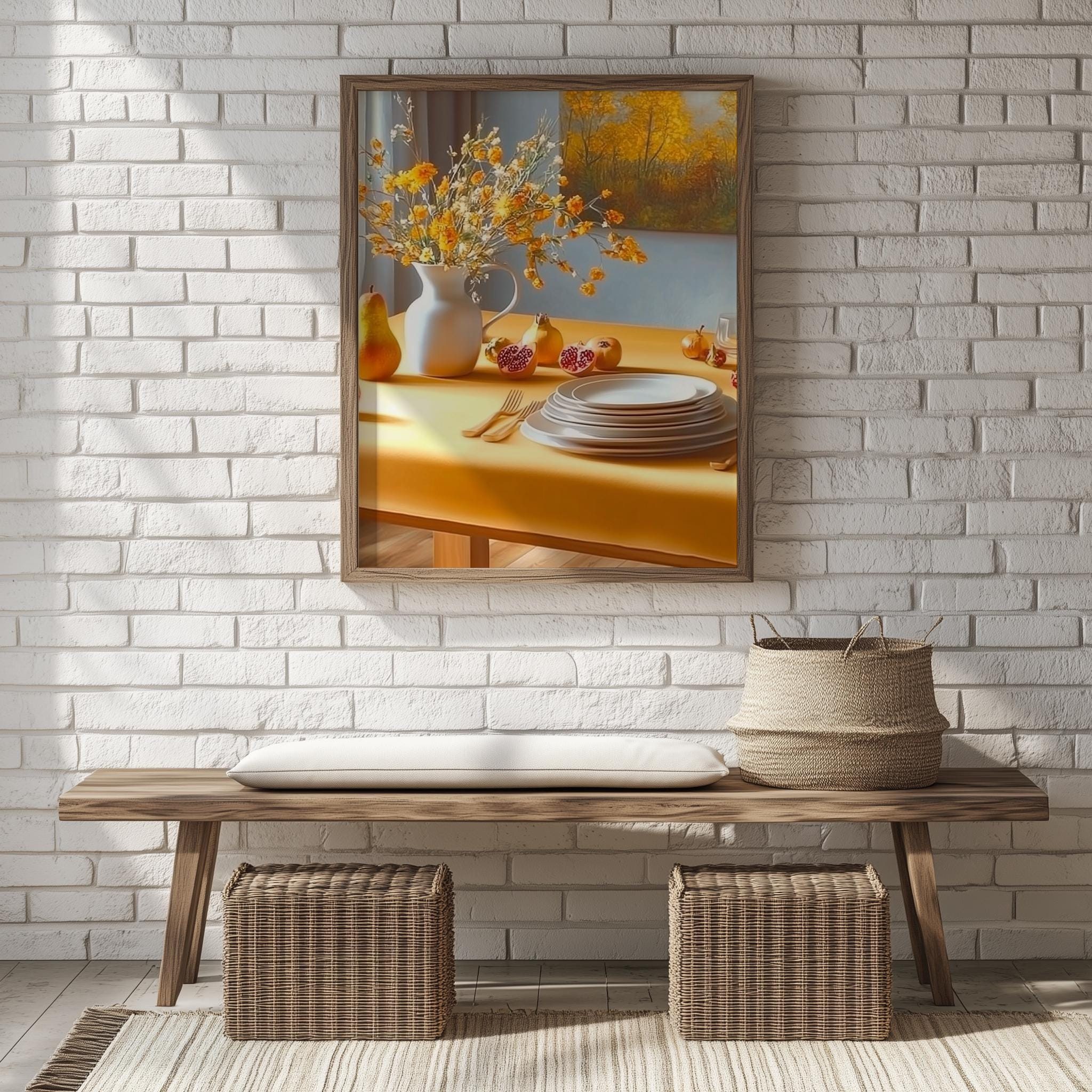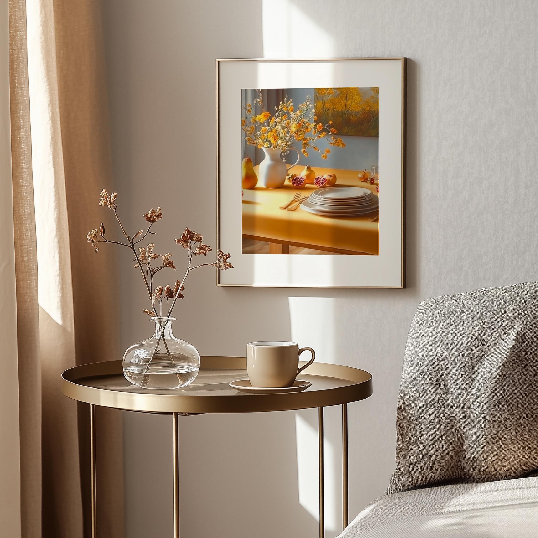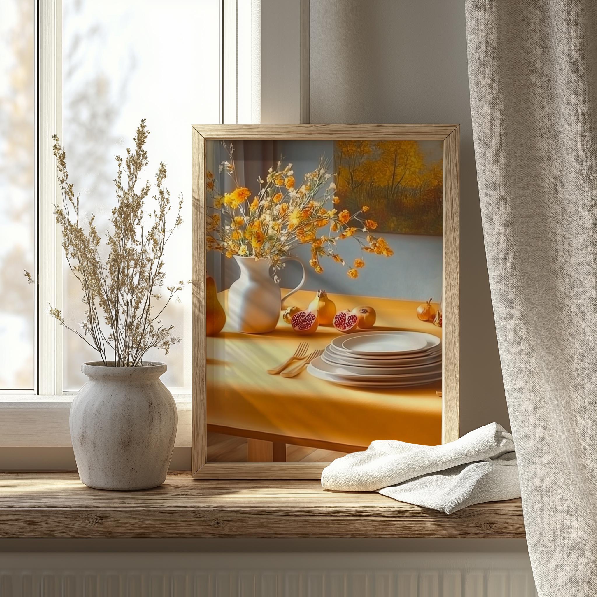 Immerse yourself in the charm with this rustic painting ofa warm vintage table setting adorned with earthy tones and soft brushwork. An instantly downloadable print, it's perfect for elevating your decor with budget friendly charm. This gives you the flexibility to customize the size, frame, and material according to your personal taste and space, ensuring a perfect fit for your walls.
