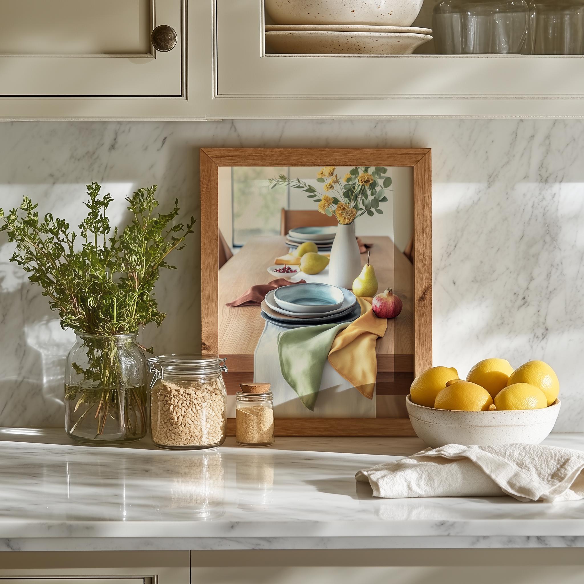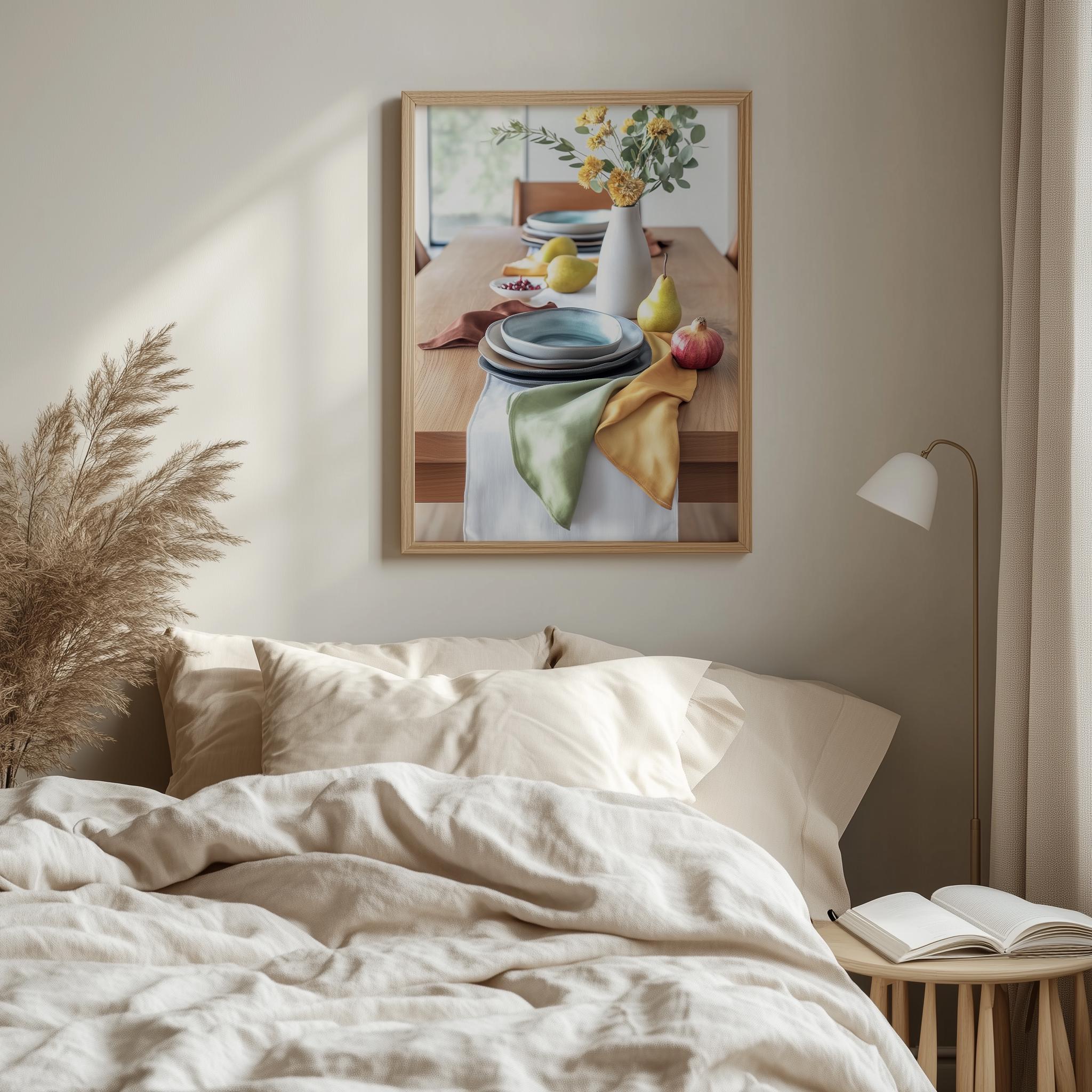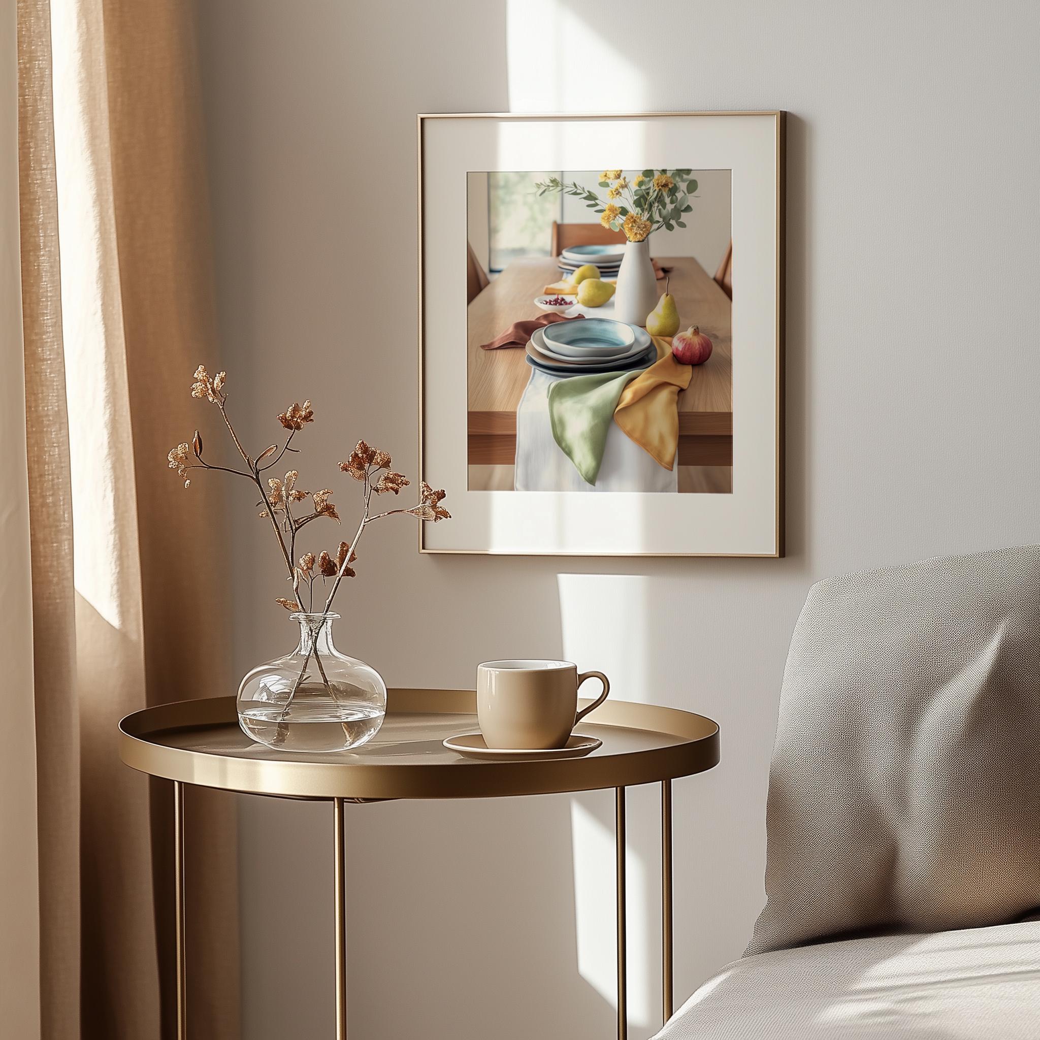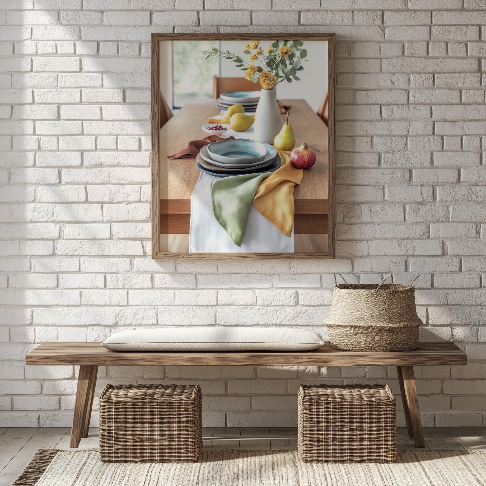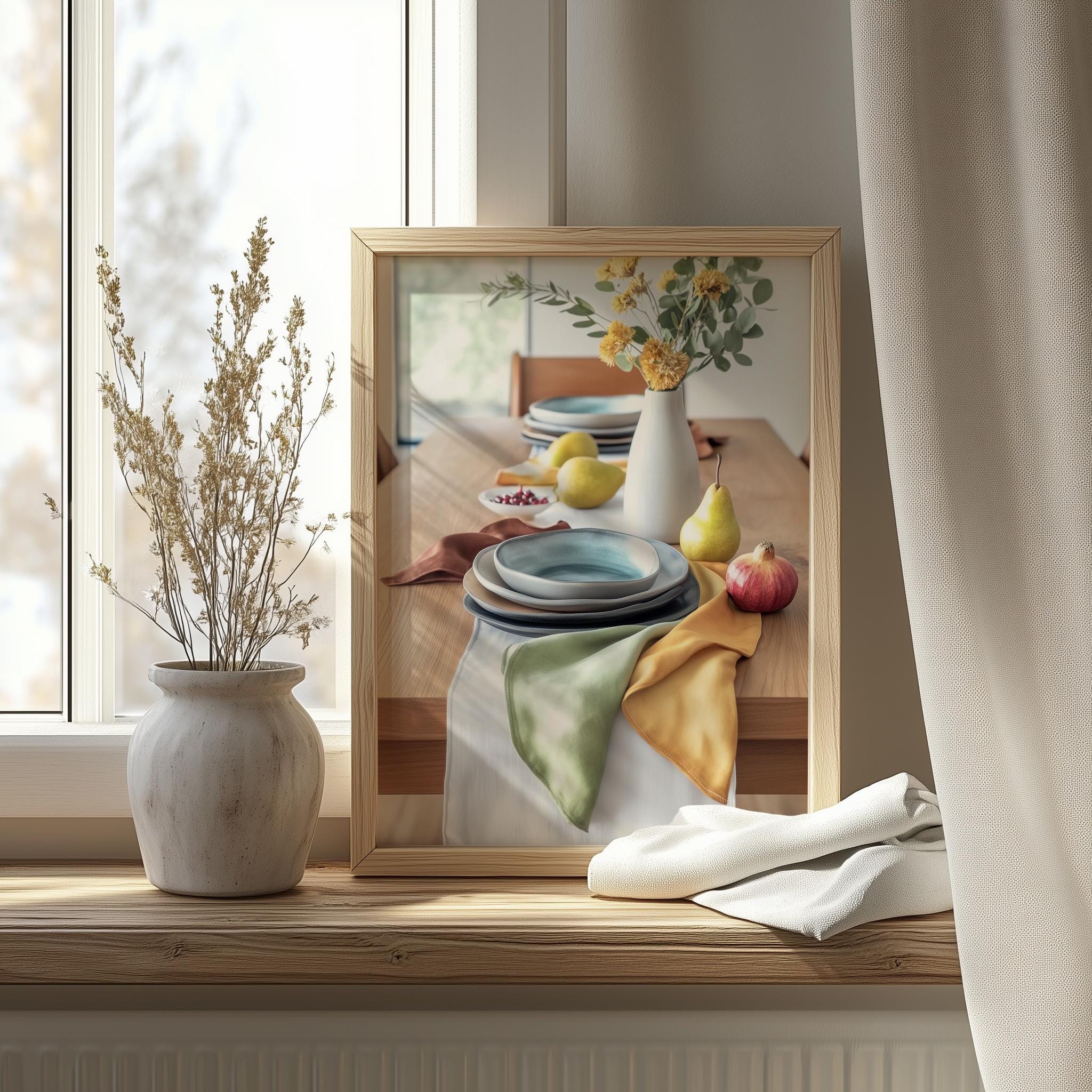 Immerse yourself in the charm with this rustic painting ofa beautifully arranged table featuring seasonal fruits and flowers. An instantly downloadable print, it's perfect for elevating your decor with budget friendly charm. This gives you the flexibility to customize the size, frame, and material according to your personal taste and space, ensuring a perfect fit for your walls.