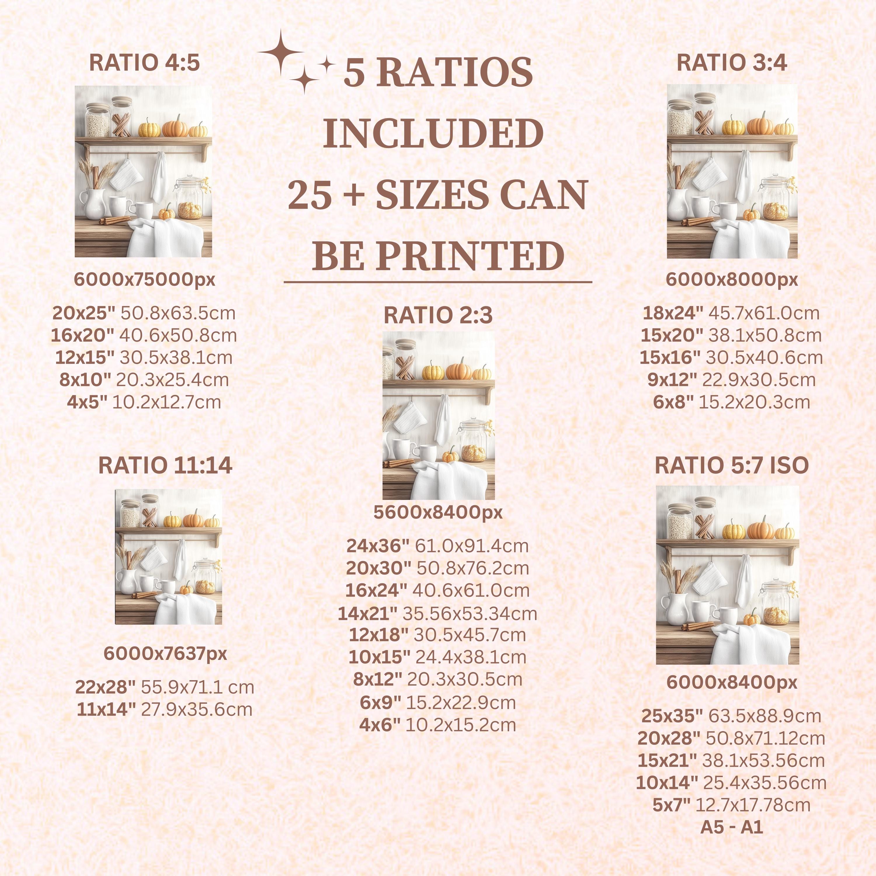 Each artwork includes 5 aspect ratios with 25+ print sizes. Most standard frames are covered. One custom resize per purchase available—message before ordering.