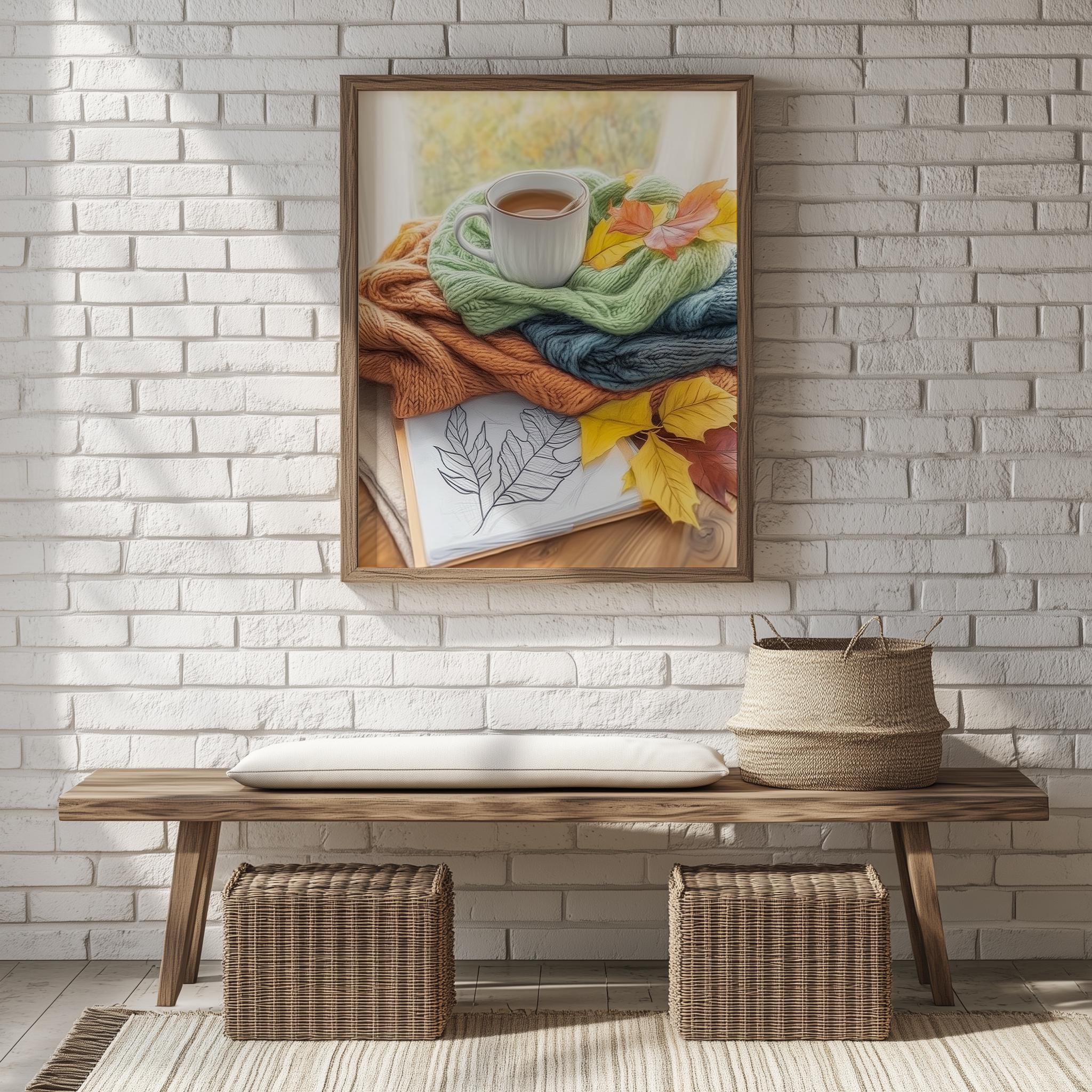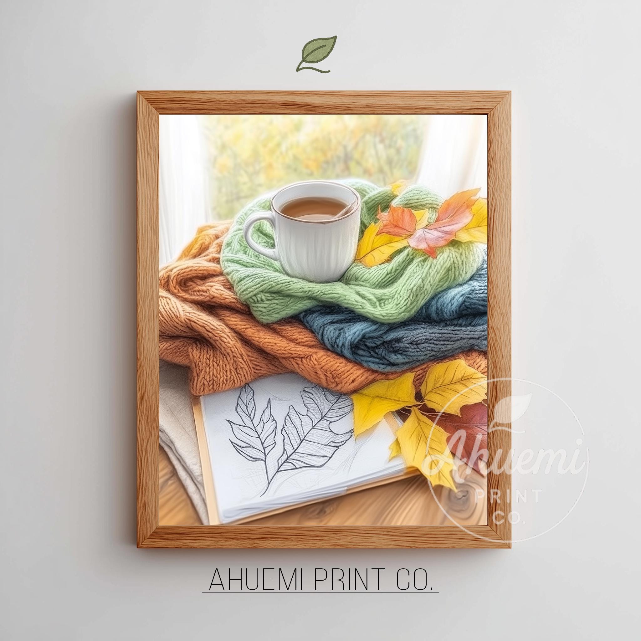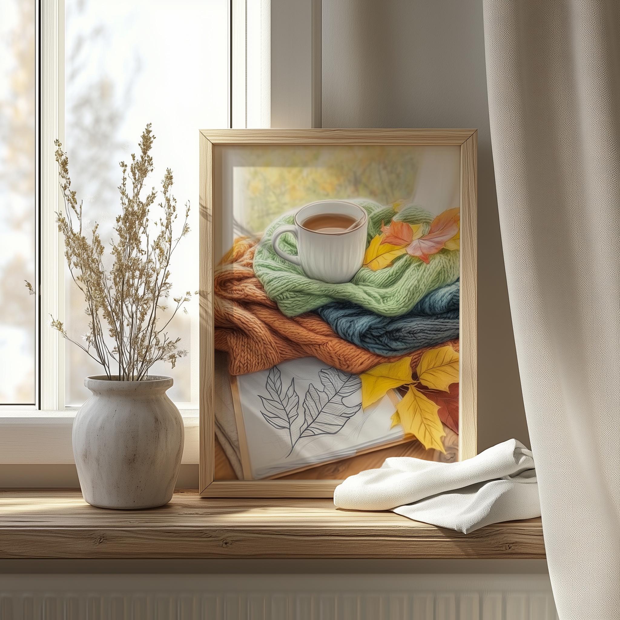Immerse yourself in the charm with this rustic painting ofa cozy stack of knit sweaters and warm blankets, evoking the essence of autumn. An instantly downloadable print, it's perfect for elevating your decor with budget friendly charm. This gives you the flexibility to customize the size, frame, and material according to your personal taste and space, ensuring a perfect fit for your walls.