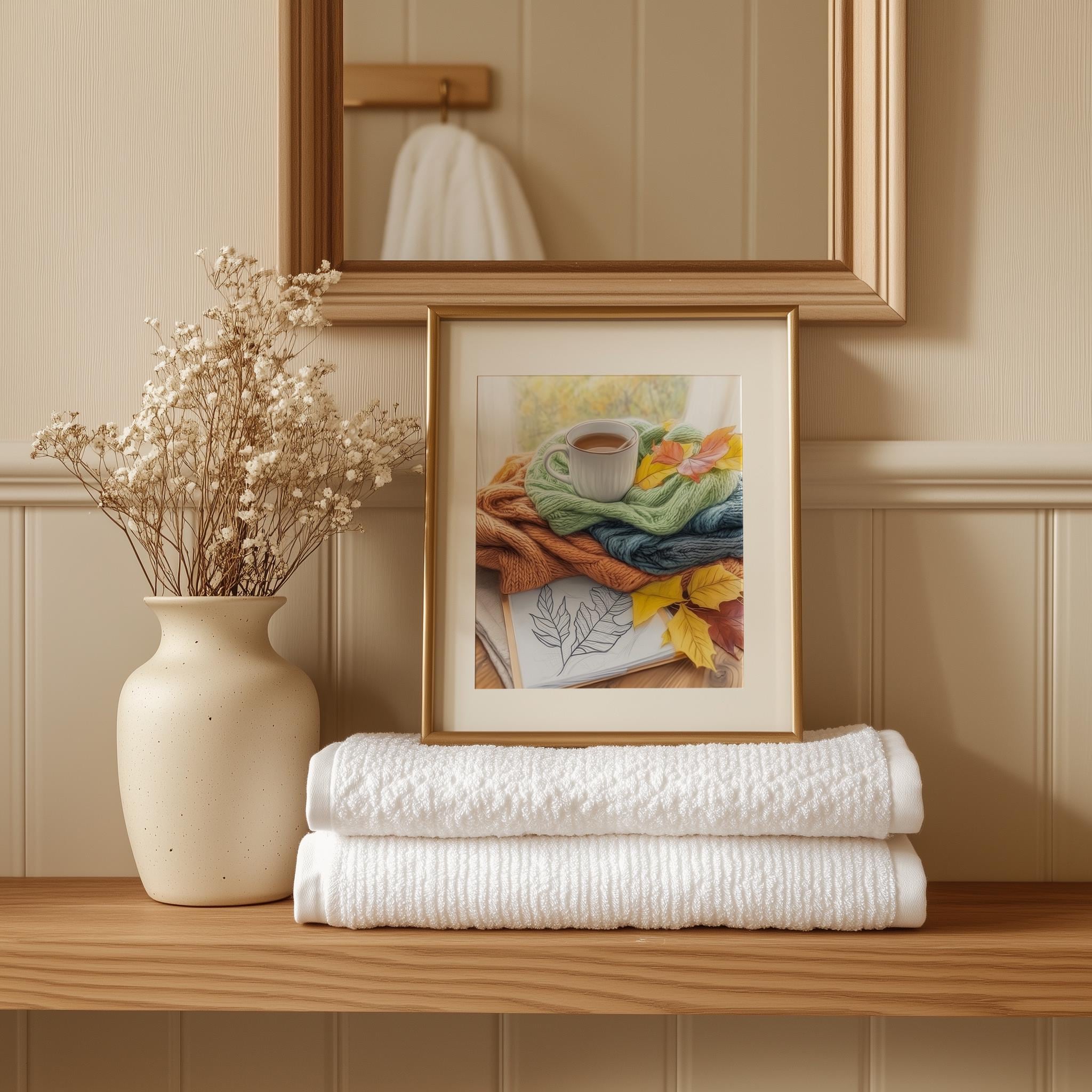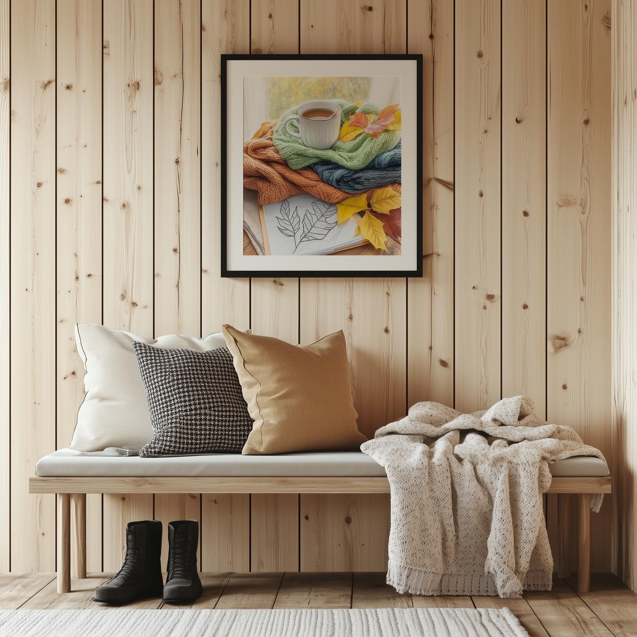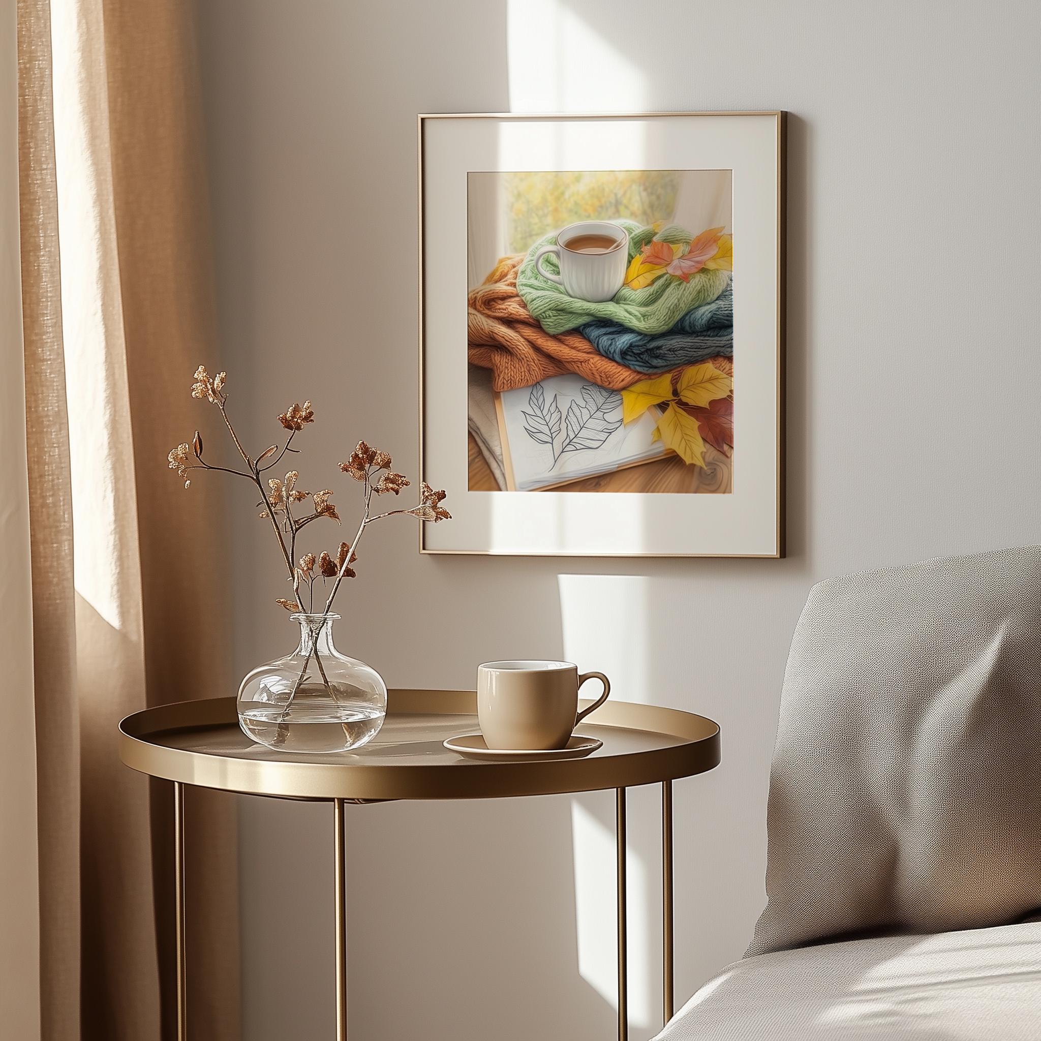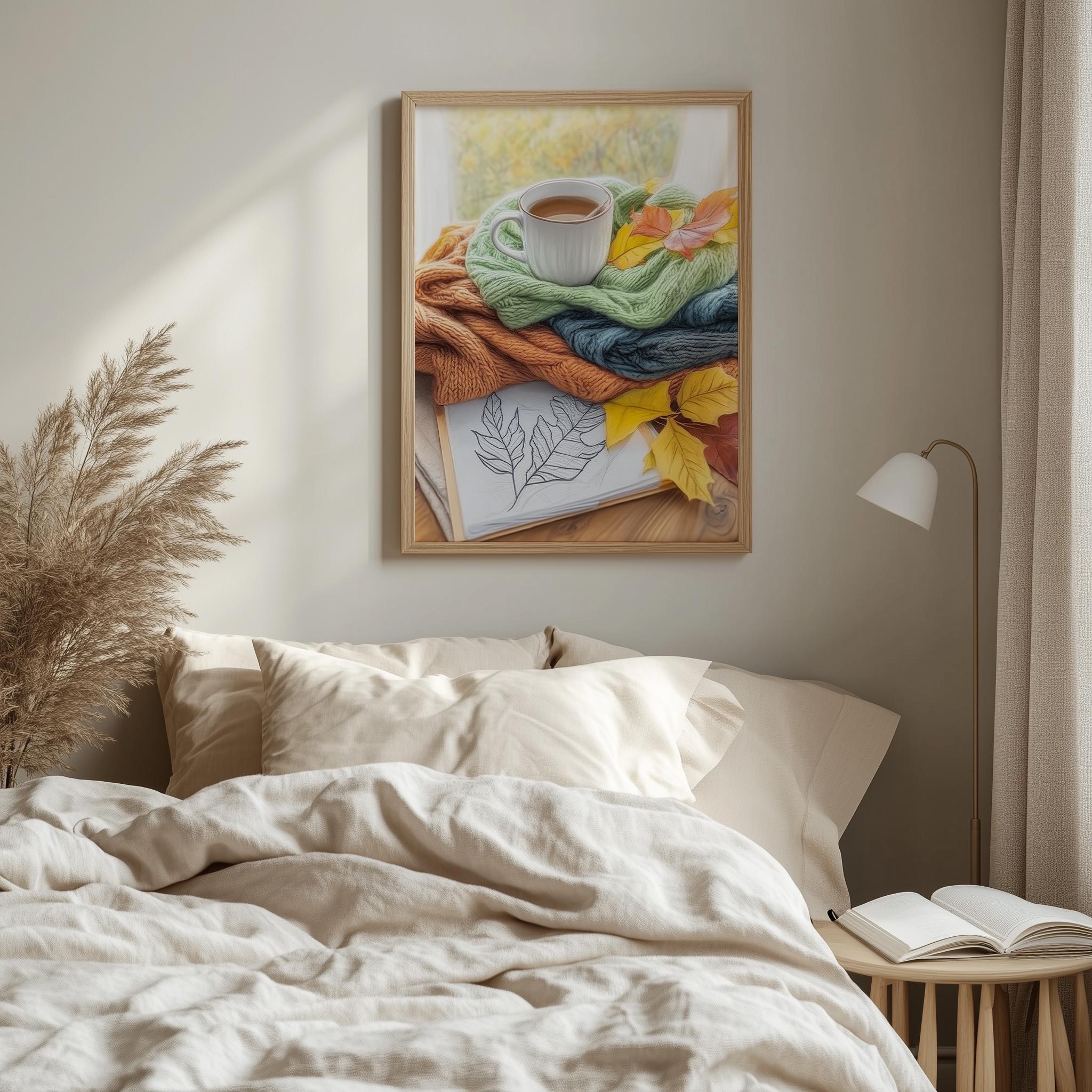 Immerse yourself in the charm with this rustic painting ofa cozy stack of knit sweaters and warm blankets, evoking the essence of autumn. An instantly downloadable print, it's perfect for elevating your decor with budget friendly charm. This gives you the flexibility to customize the size, frame, and material according to your personal taste and space, ensuring a perfect fit for your walls.
