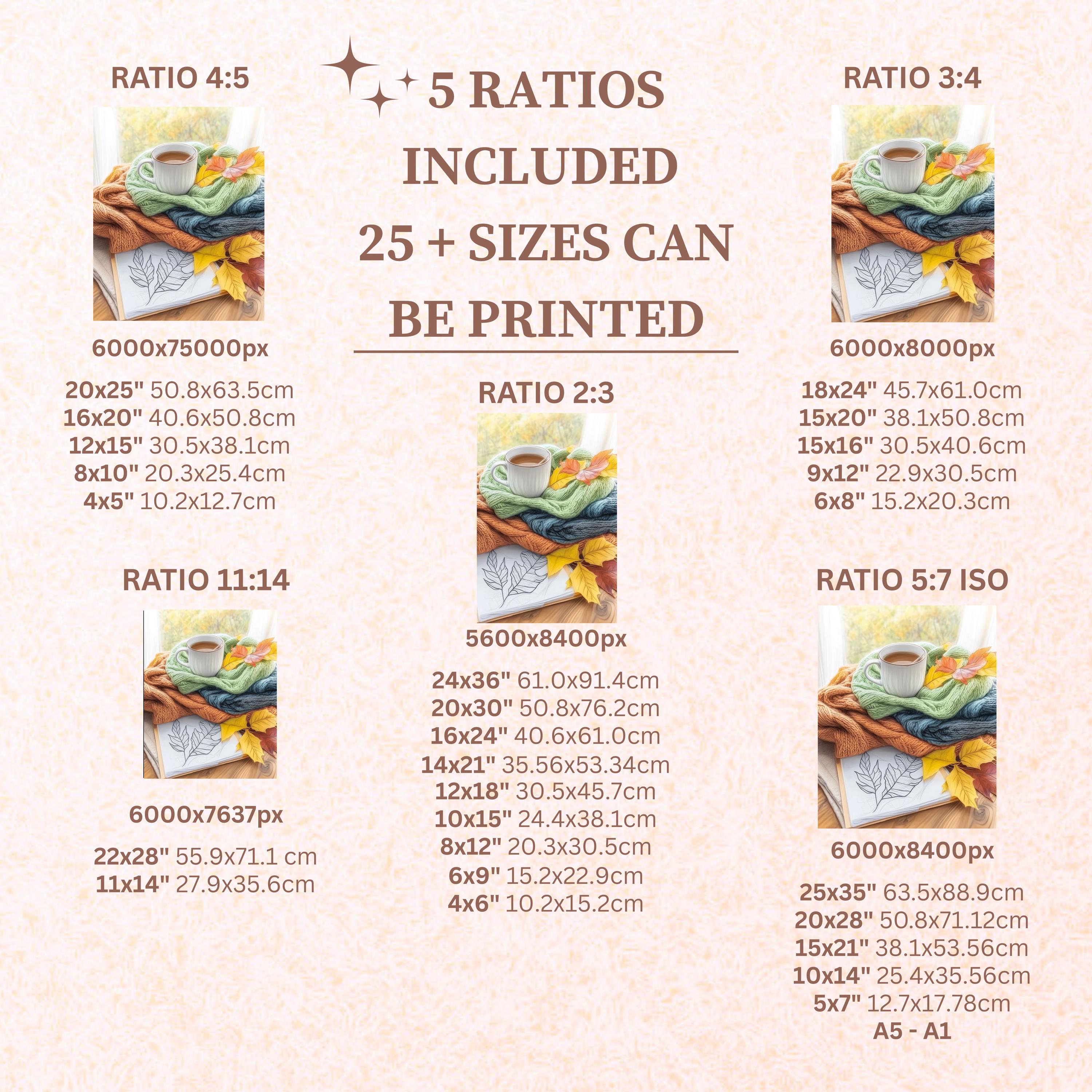 Each artwork includes 5 aspect ratios with 25+ print sizes. Most standard frames are covered. One custom resize per purchase available—message before ordering.