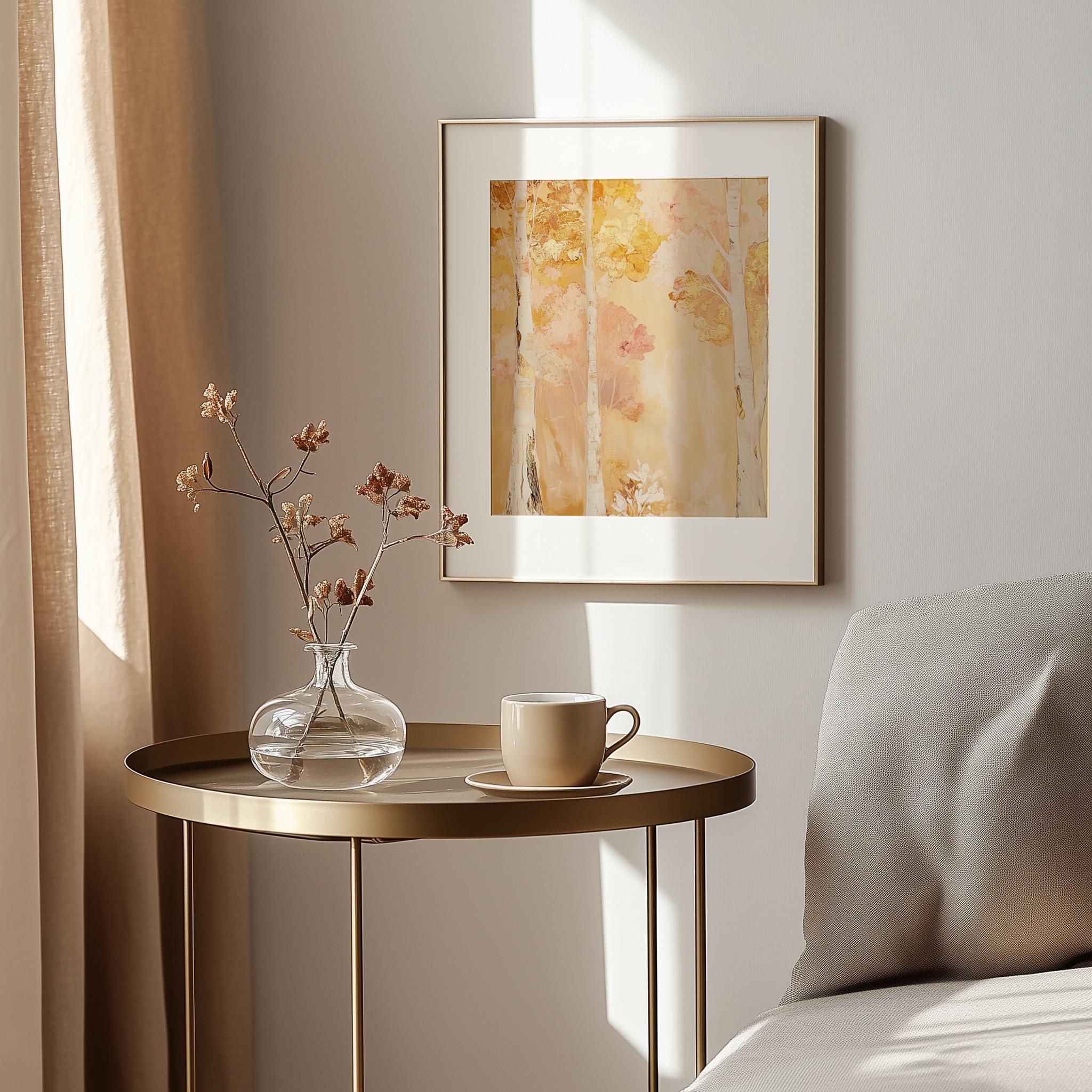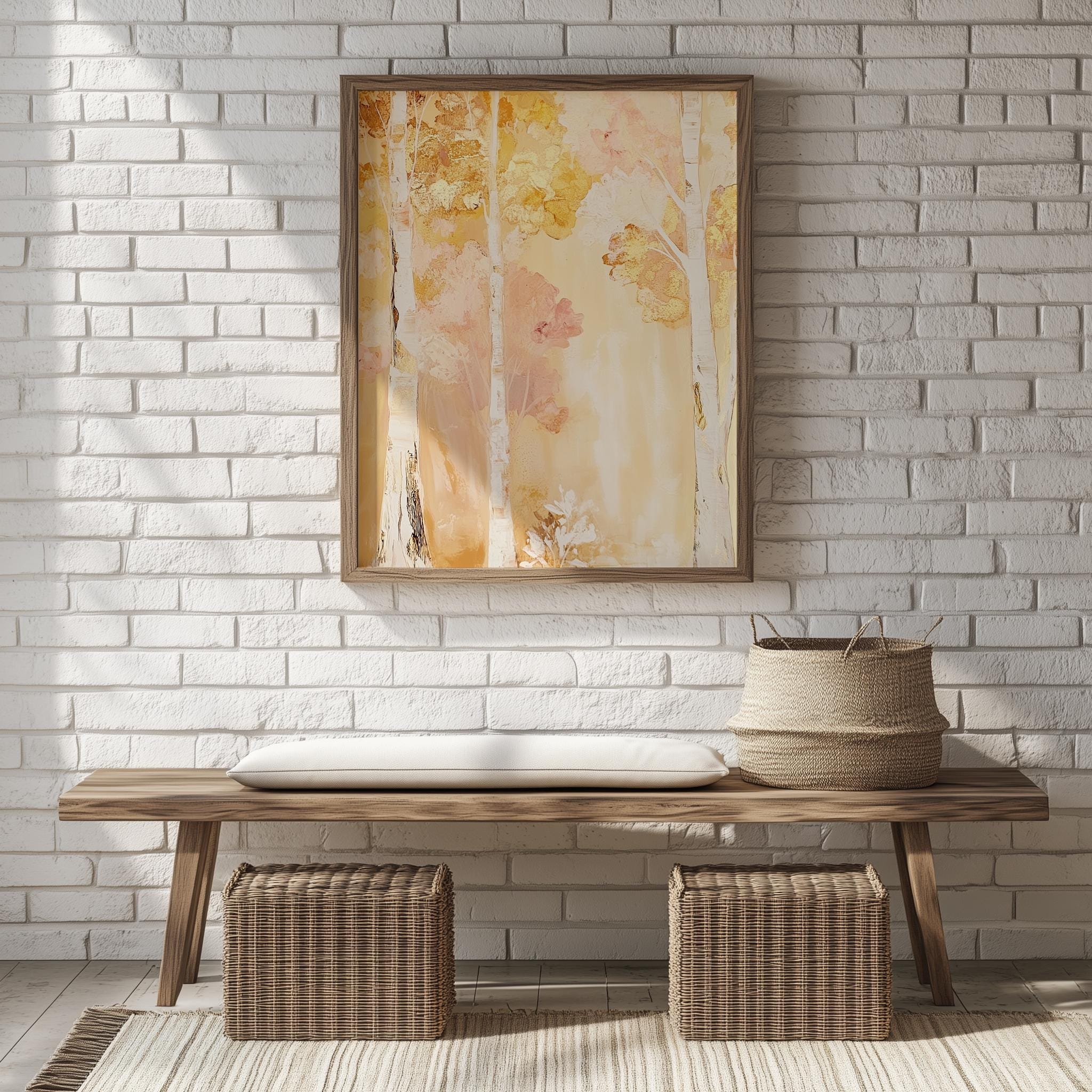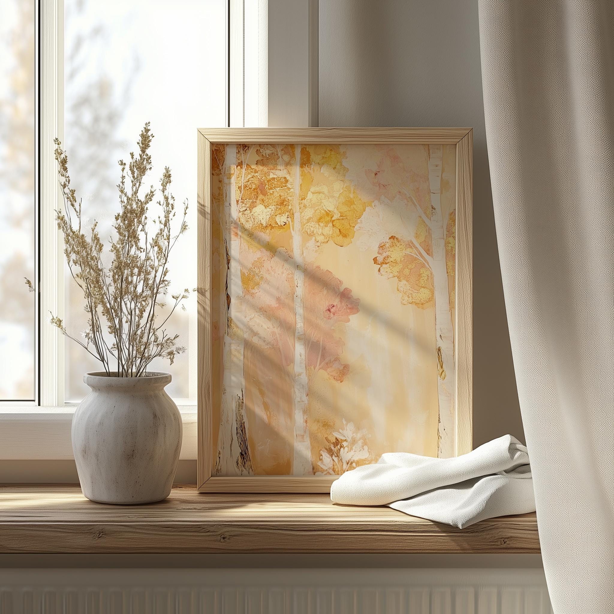 Immerse yourself in the charm with this rustic painting ofa serene tree canopy adorned in warm autumn hues, capturing the essence of a cozy woodland escape. An instantly downloadable print, it's perfect for elevating your decor with budget friendly charm. This gives you the flexibility to customize the size, frame, and material according to your personal taste and space, ensuring a perfect fit for your walls.