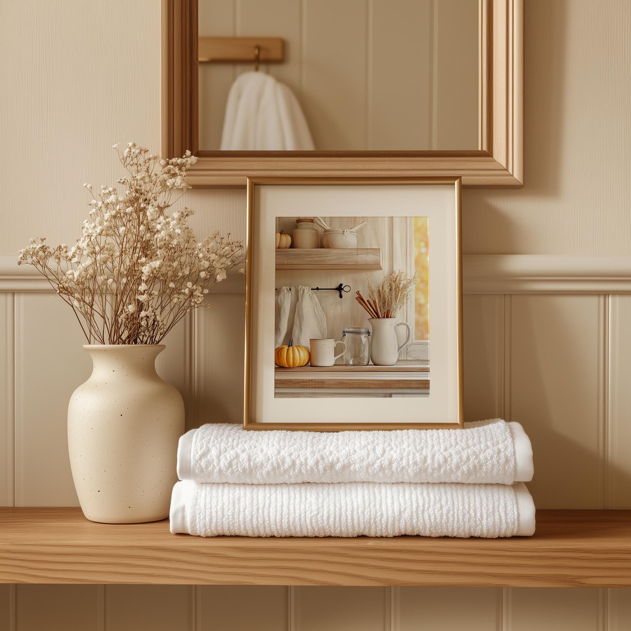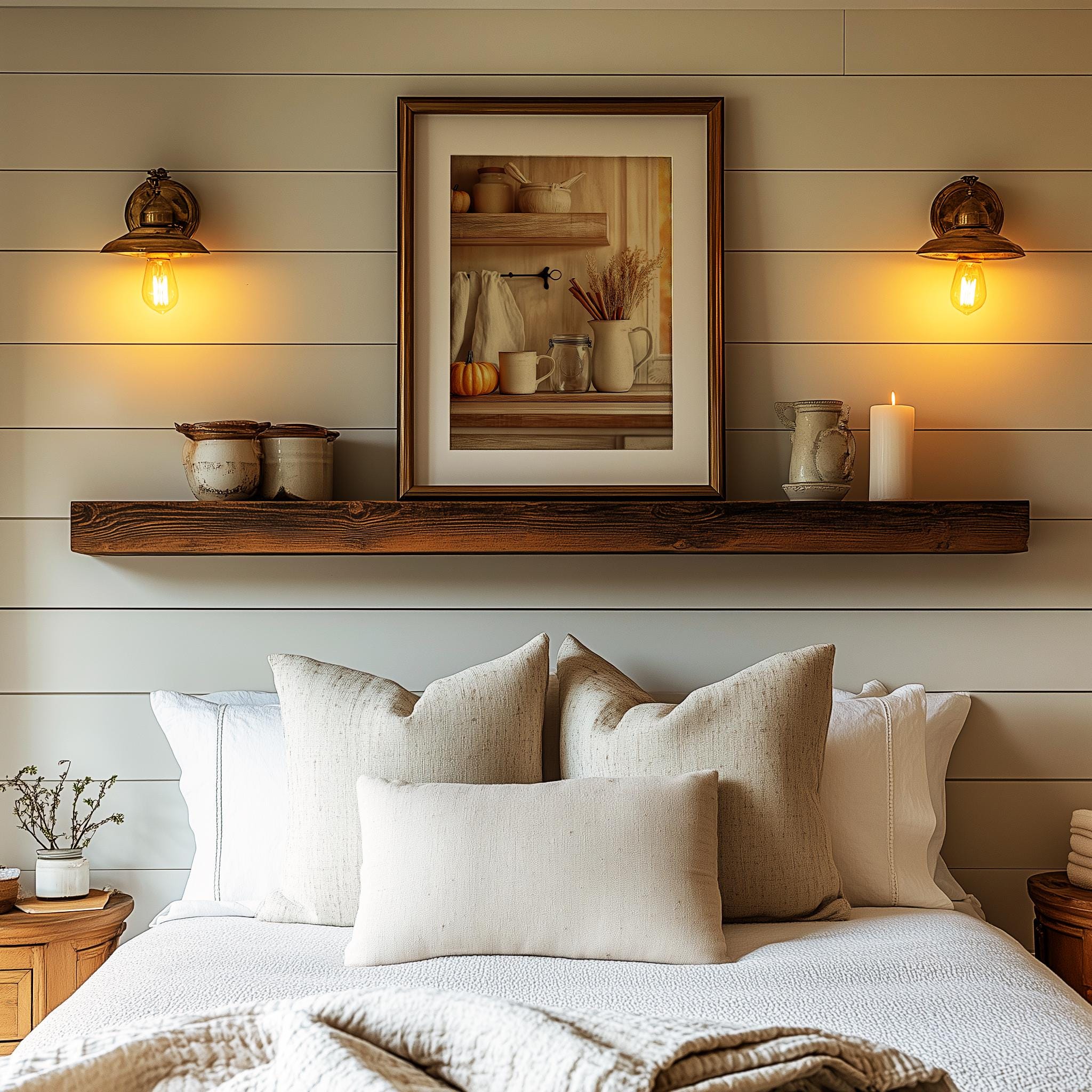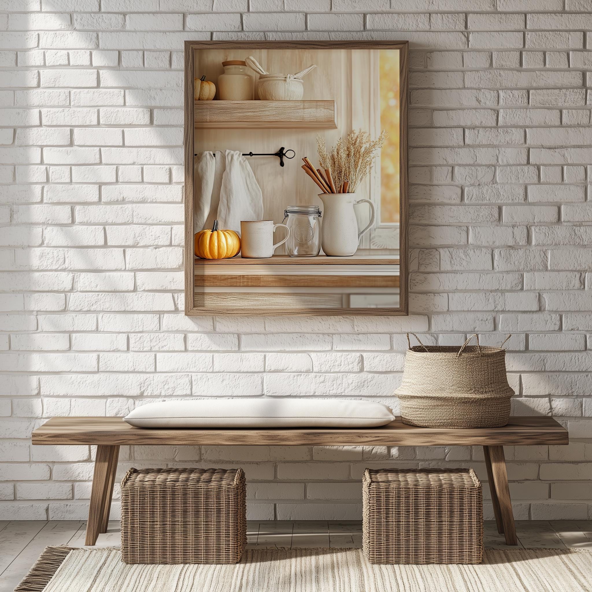 Immerse yourself in the charm with this rustic painting ofa cozy fall kitchen shelf adorned with seasonal elements. An instantly downloadable print, it's perfect for elevating your decor with budget friendly charm. This gives you the flexibility to customize the size, frame, and material according to your personal taste and space, ensuring a perfect fit for your walls.