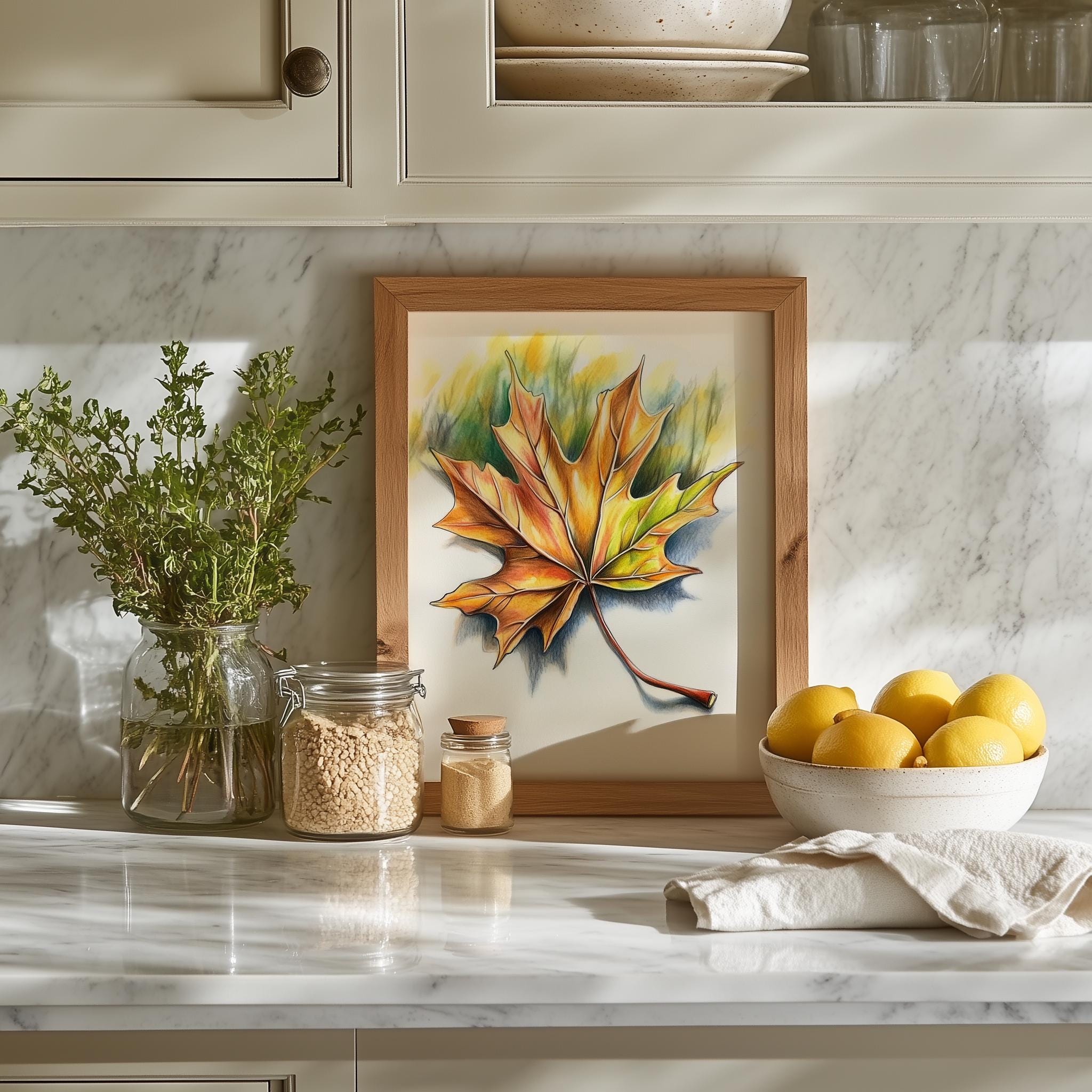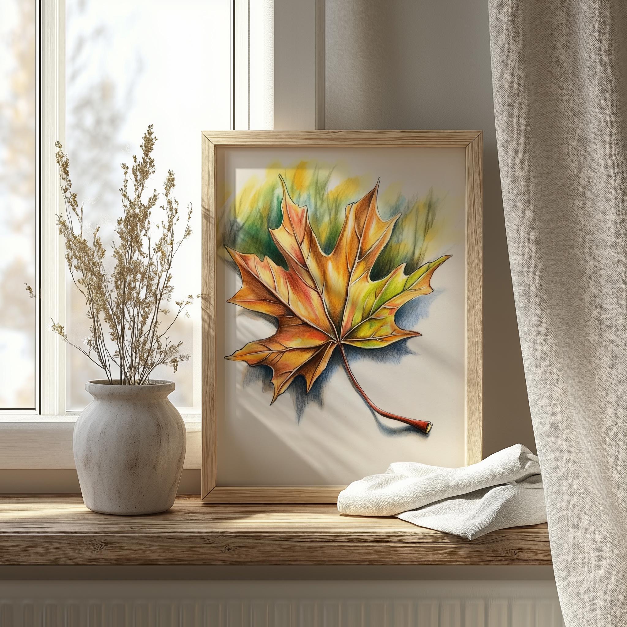 Immerse yourself in the charm with this rustic painting ofa beautifully detailed maple leaf, showcasing the vibrant hues of autumn. An instantly downloadable print, it's perfect for elevating your decor with budget friendly charm. This gives you the flexibility to customize the size, frame, and material according to your personal taste and space, ensuring a perfect fit for your walls.