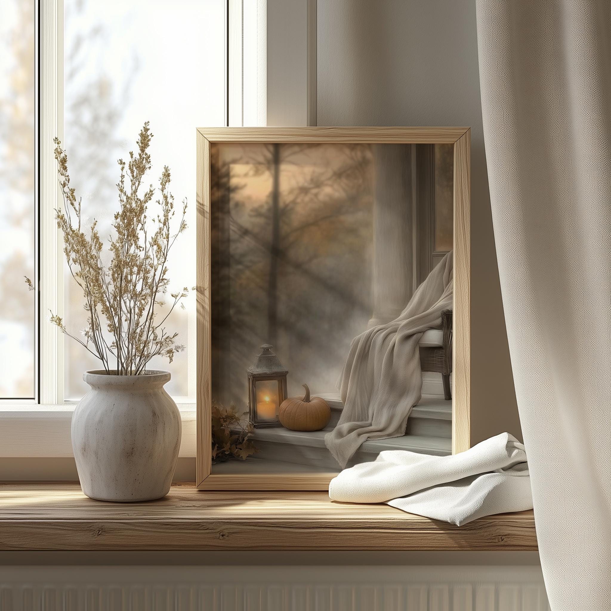 Immerse yourself in the charm with this rustic painting ofa cozy pumpkin nestled on the steps, complemented by a woven blanket. An instantly downloadable print, it's perfect for elevating your decor with budget friendly charm. This gives you the flexibility to customize the size, frame, and material according to your personal taste and space, ensuring a perfect fit for your walls.