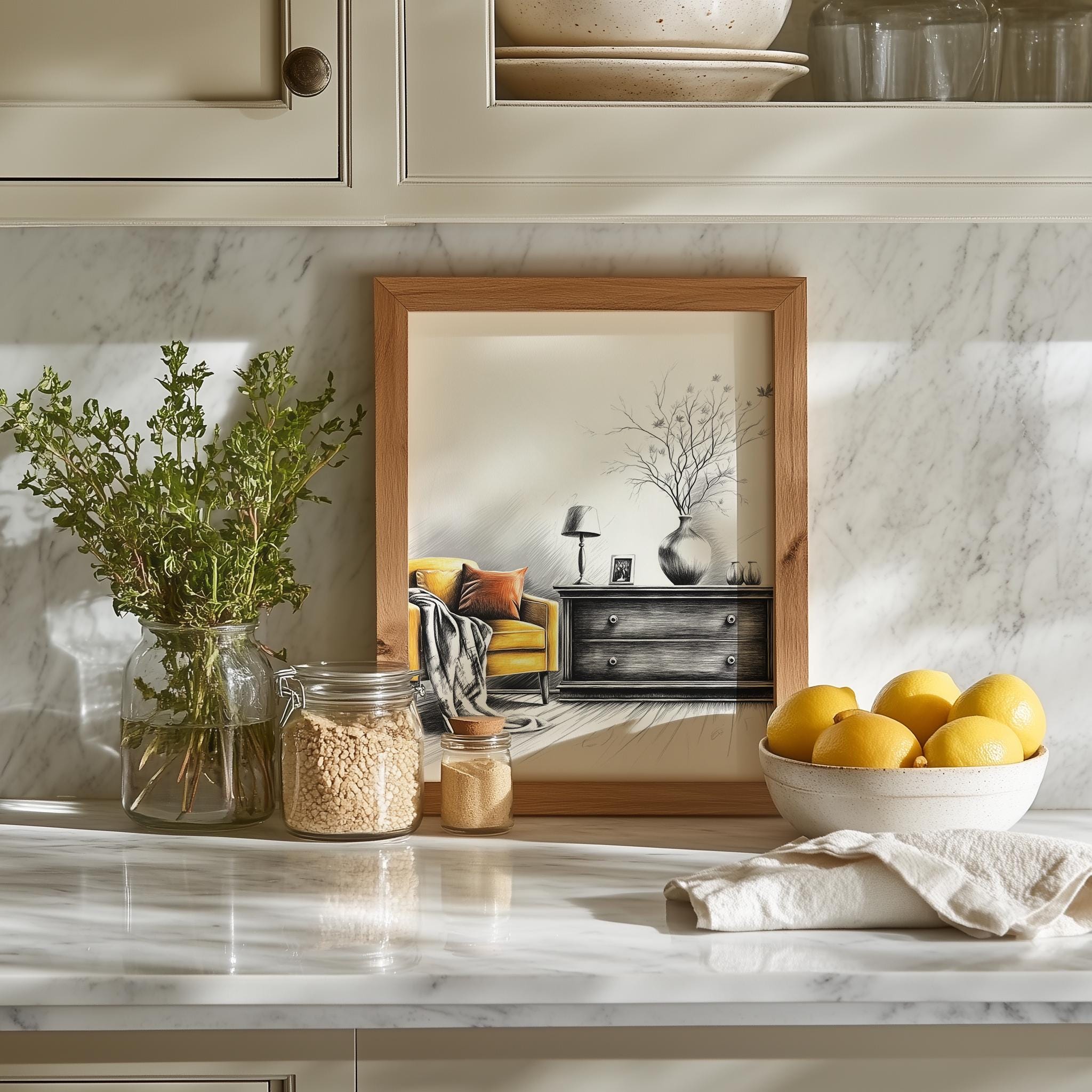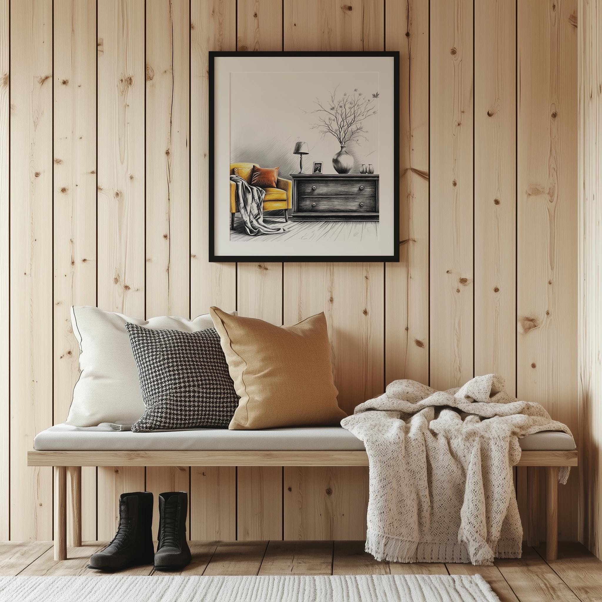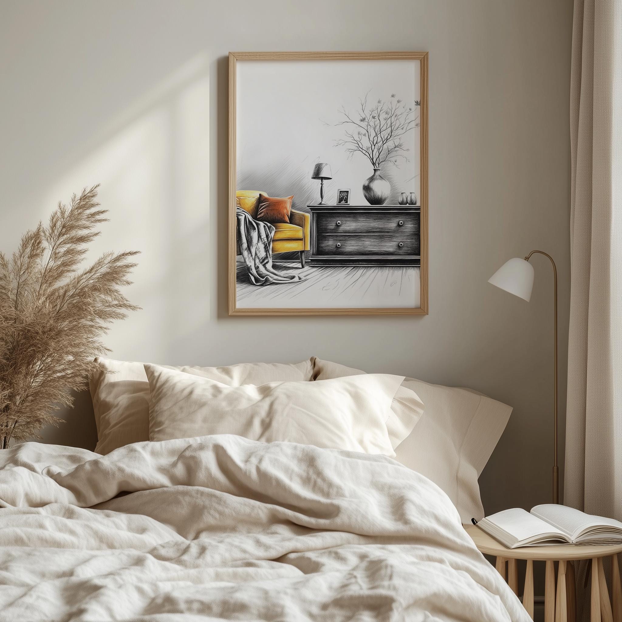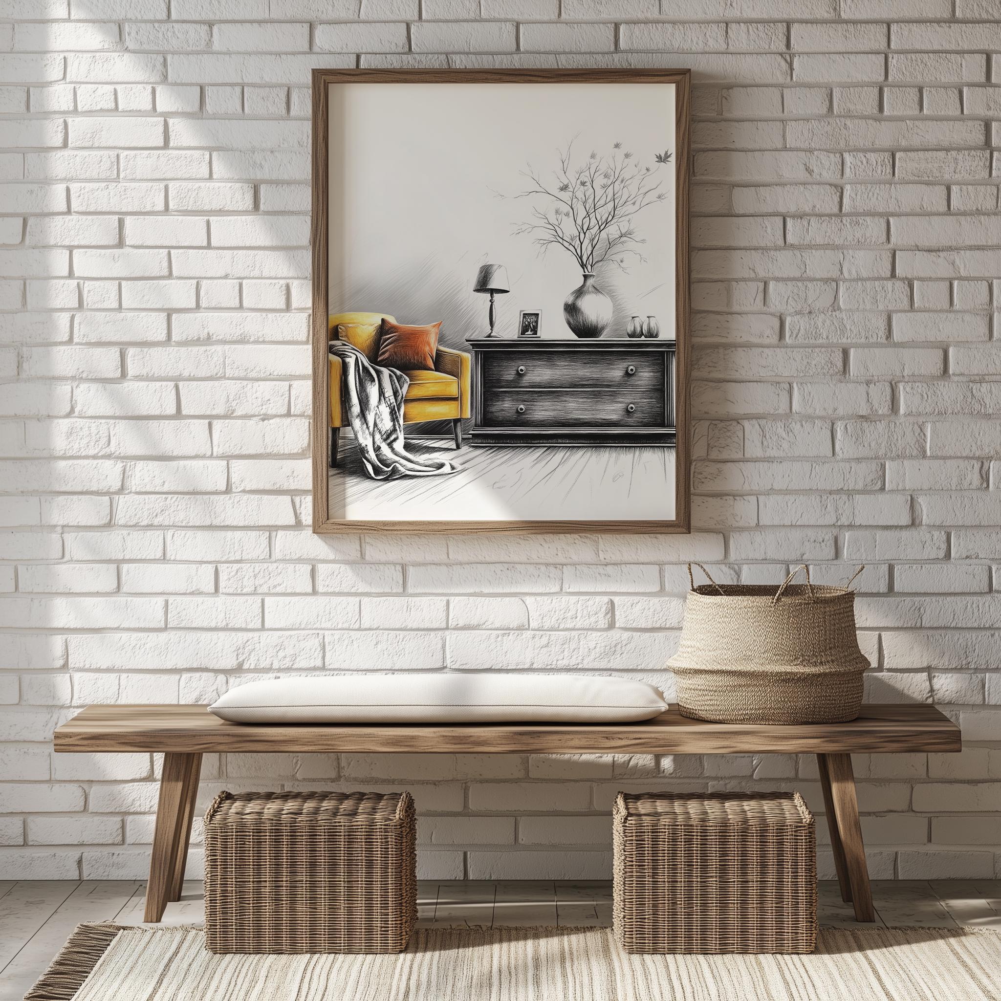 Immerse yourself in the charm with this rustic painting ofa cozy autumn interior featuring a vintage yellow armchair surrounded by warm hues and inviting textures. An instantly downloadable print, it's perfect for elevating your decor with budget friendly charm. This gives you the flexibility to customize the size, frame, and material according to your personal taste and space, ensuring a perfect fit for your walls.