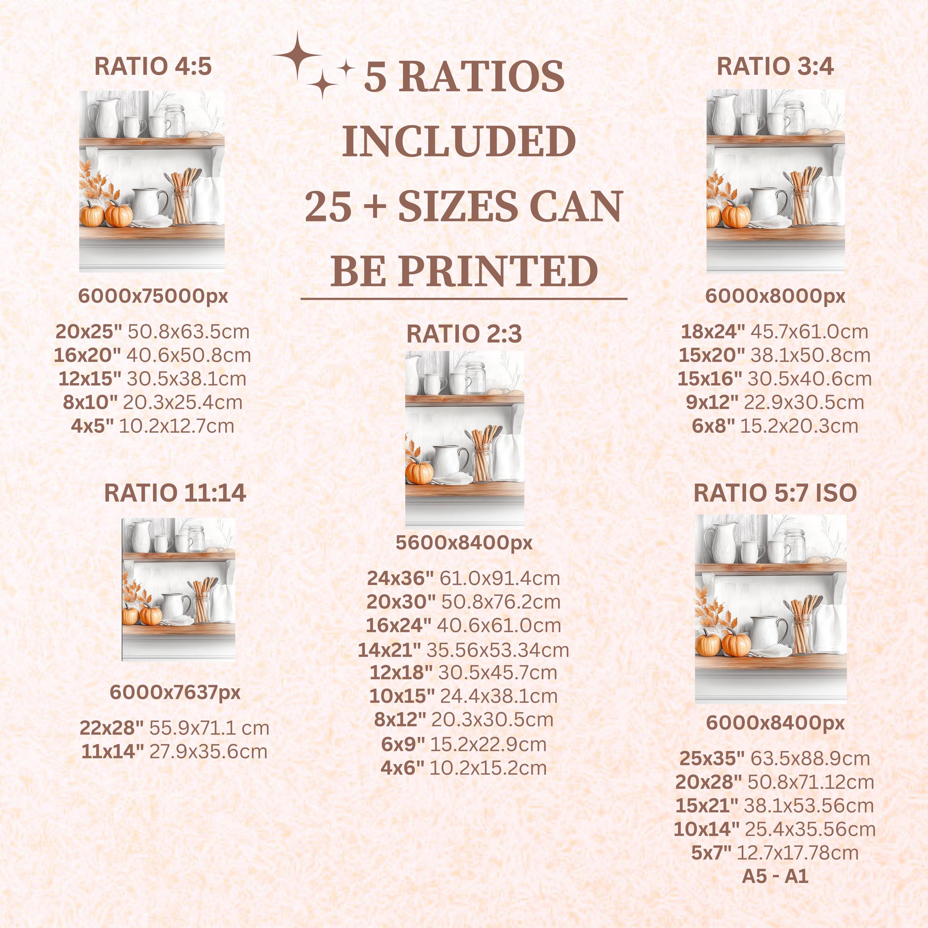 Each artwork includes 5 aspect ratios with 25+ print sizes. Most standard frames are covered. One custom resize per purchase available—message before ordering.