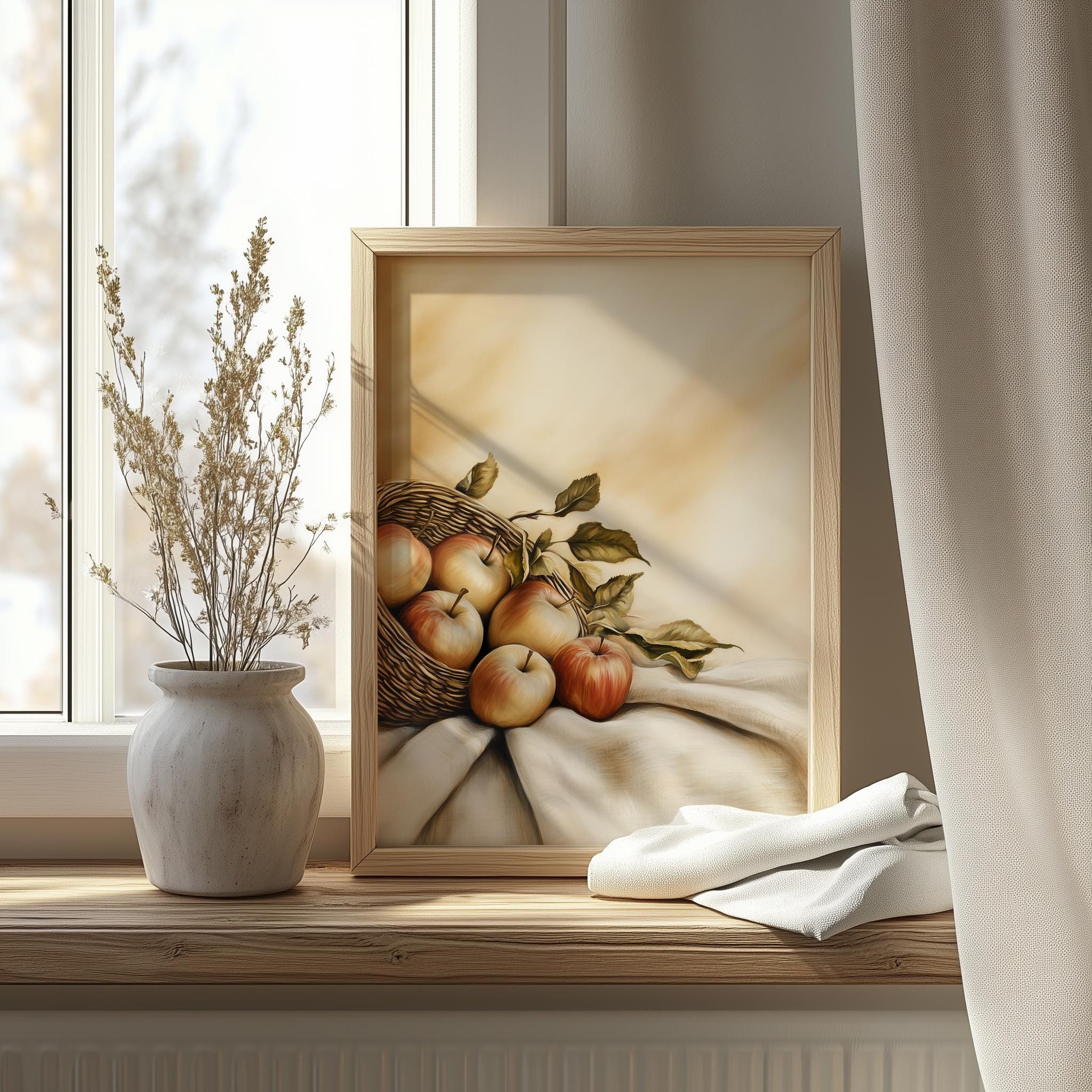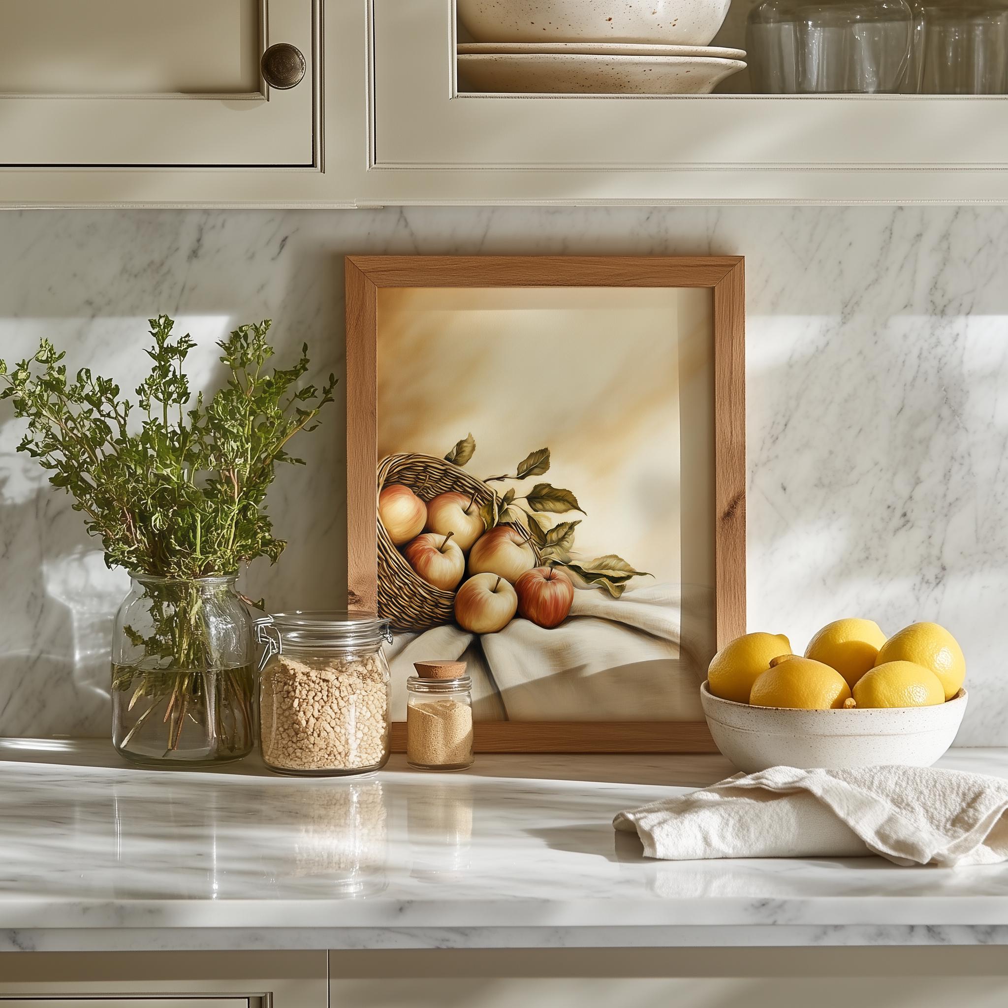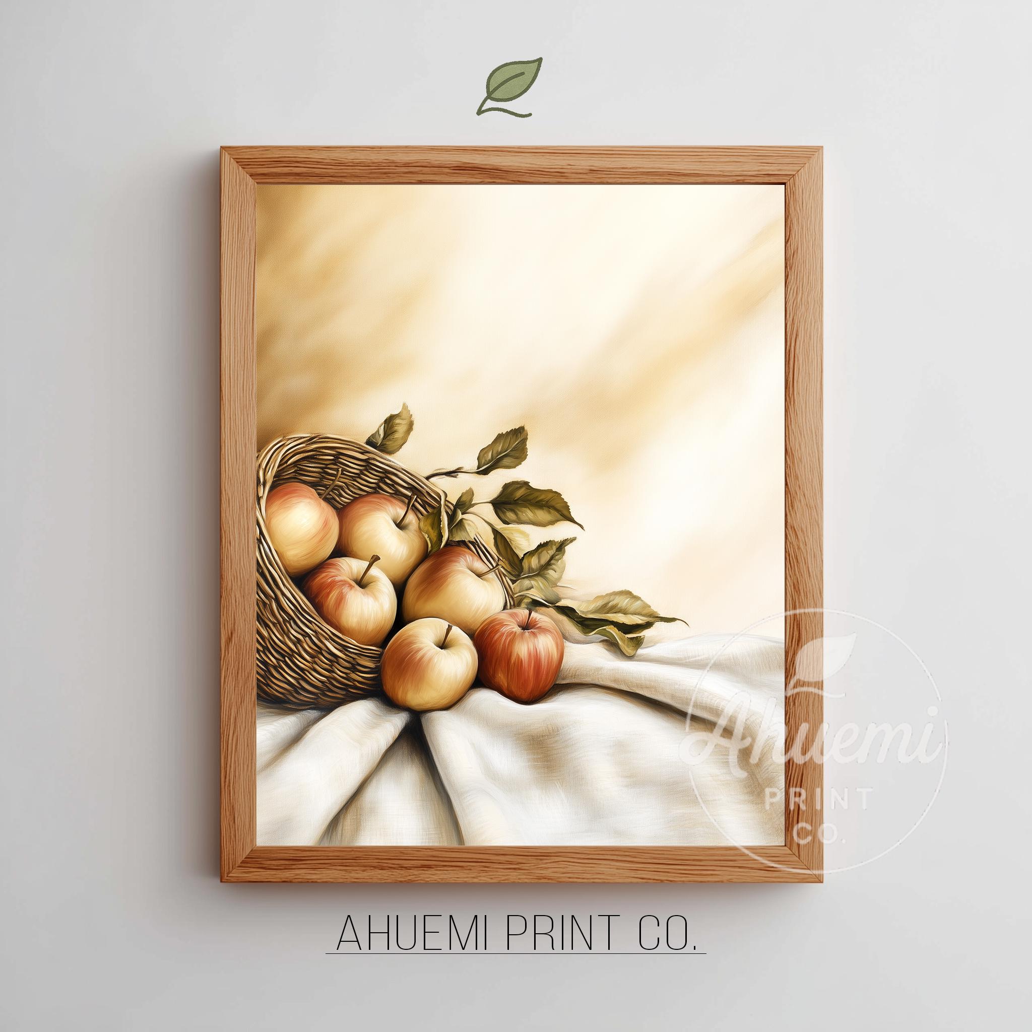 Immerse yourself in the charm with this rustic painting ofa beautifully arranged still life of apples, showcasing their vibrant colors and textures. An instantly downloadable print, it's perfect for elevating your decor with budget friendly charm. This gives you the flexibility to customize the size, frame, and material according to your personal taste and space, ensuring a perfect fit for your walls.