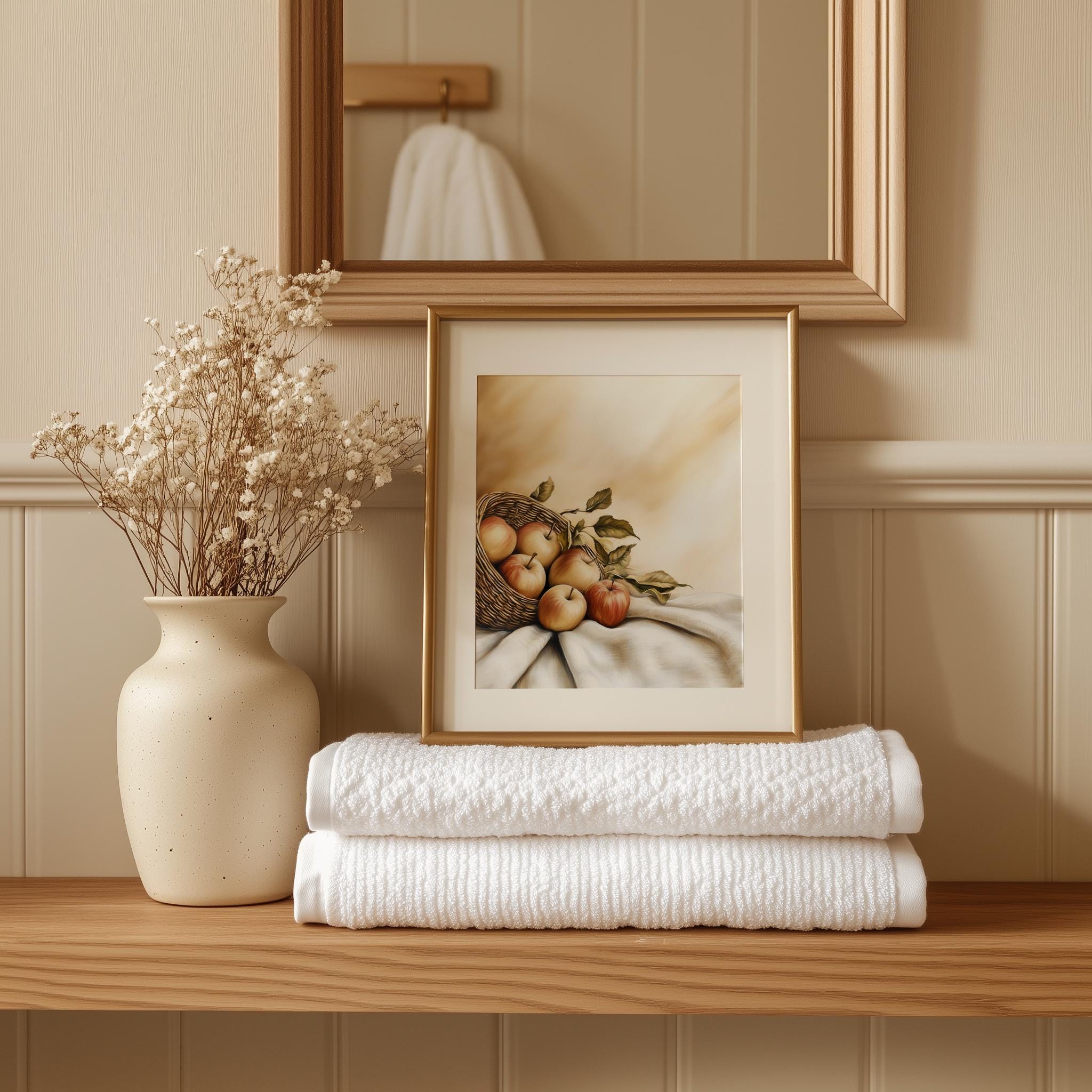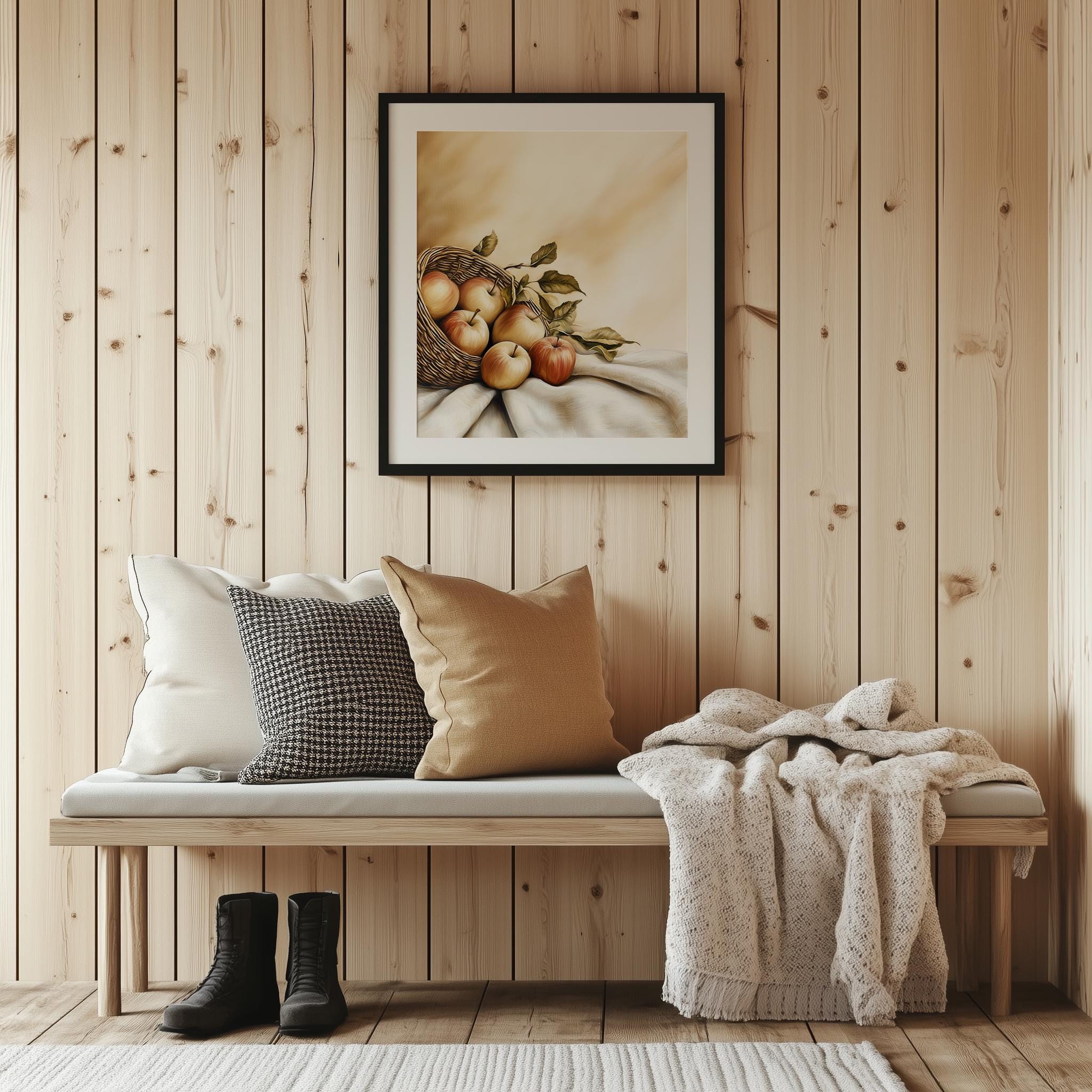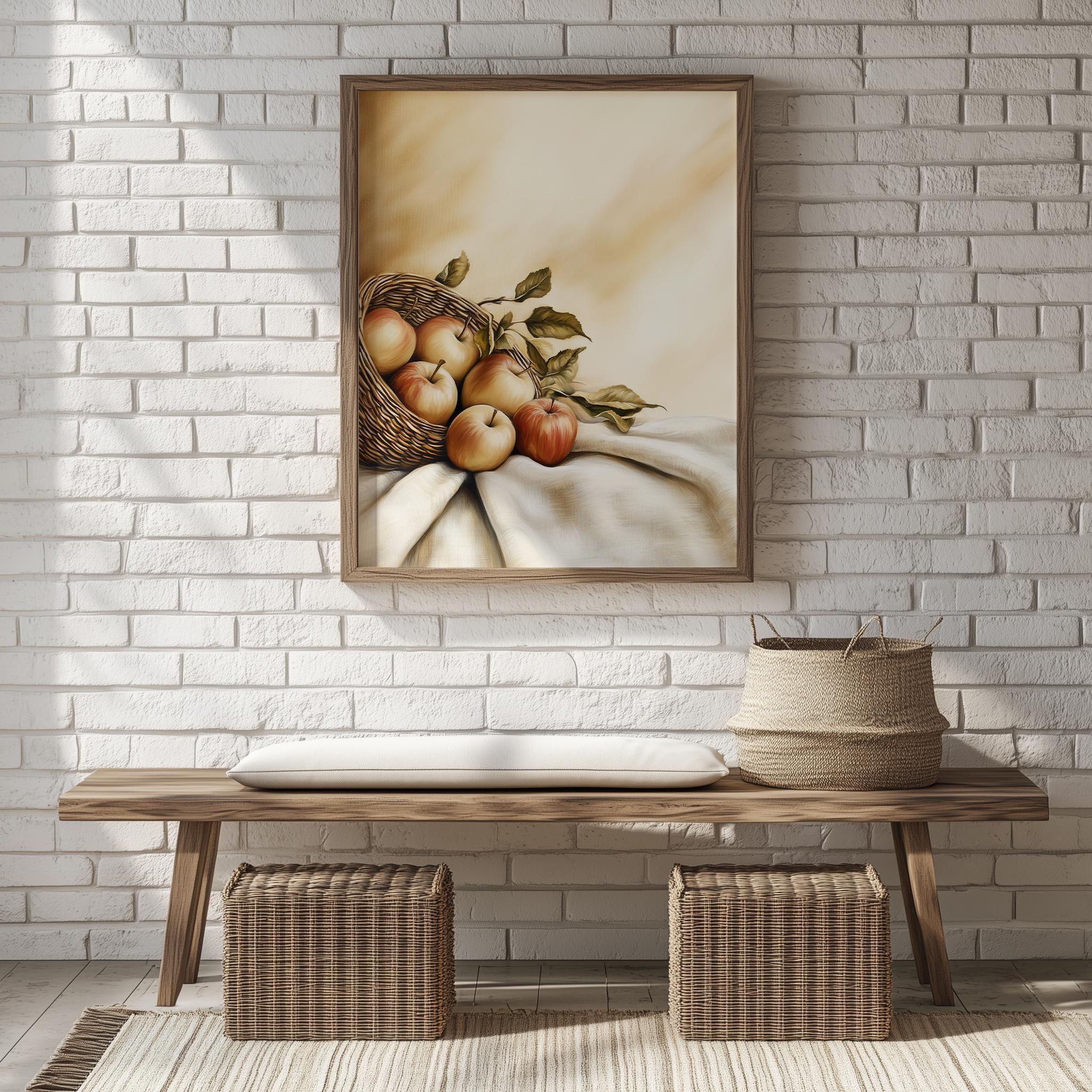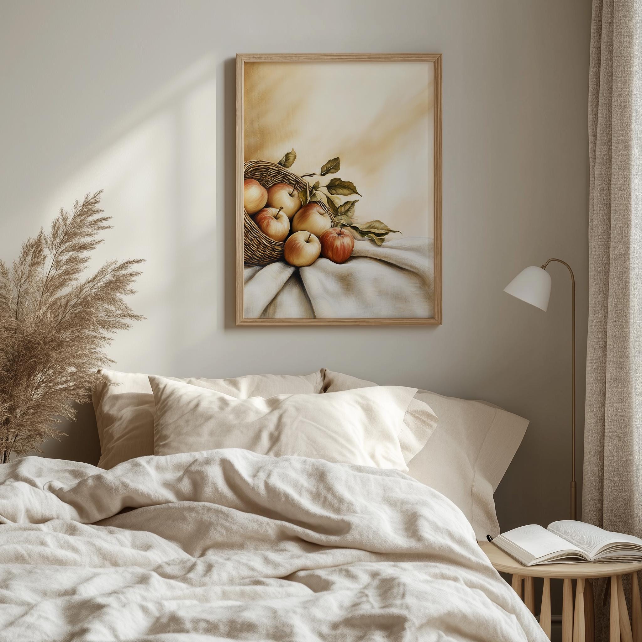 Immerse yourself in the charm with this rustic painting ofa beautifully arranged still life of apples, showcasing their vibrant colors and textures. An instantly downloadable print, it's perfect for elevating your decor with budget friendly charm. This gives you the flexibility to customize the size, frame, and material according to your personal taste and space, ensuring a perfect fit for your walls.