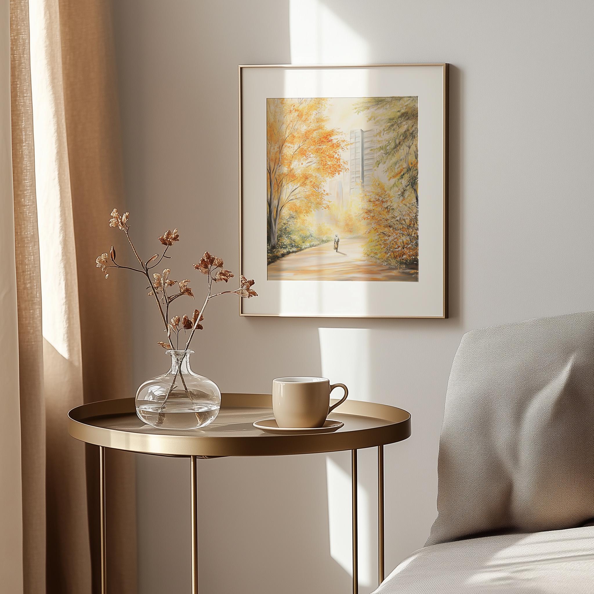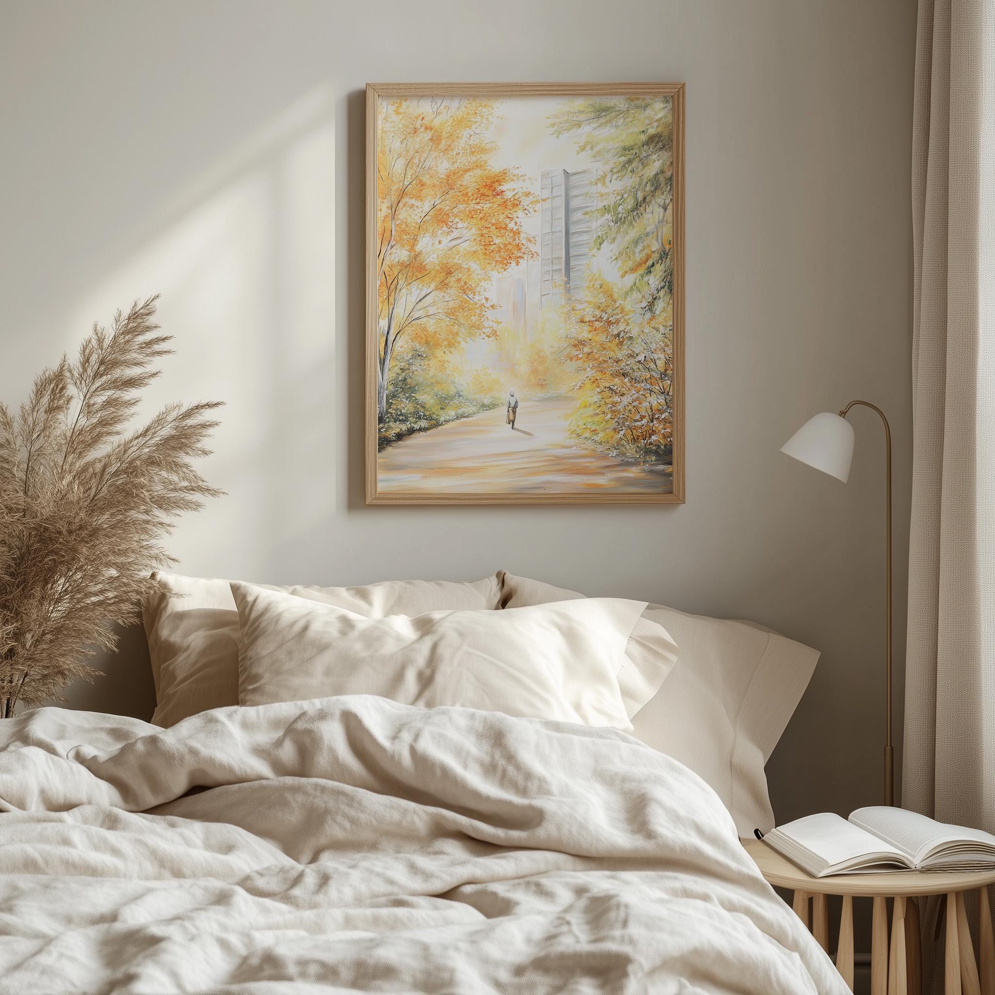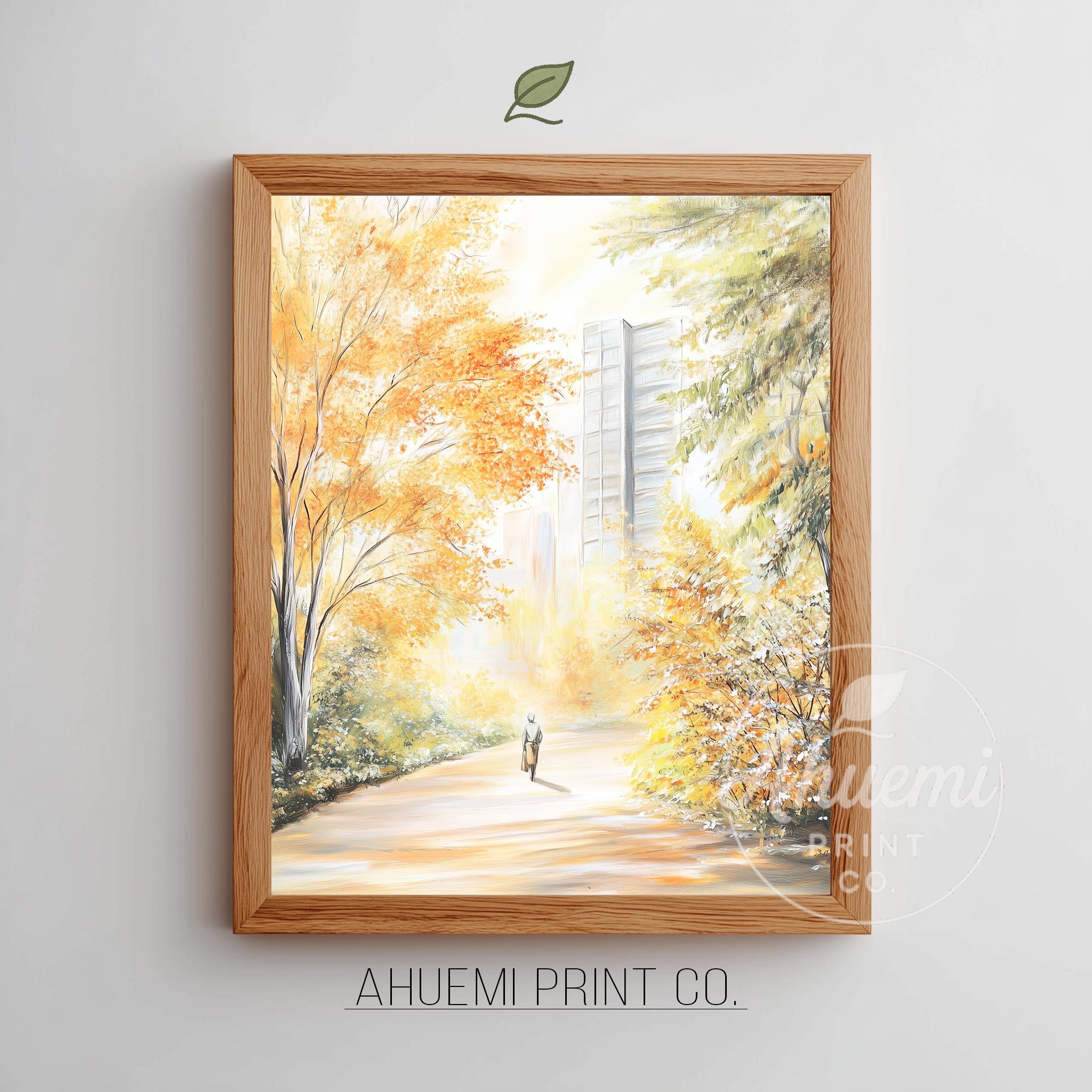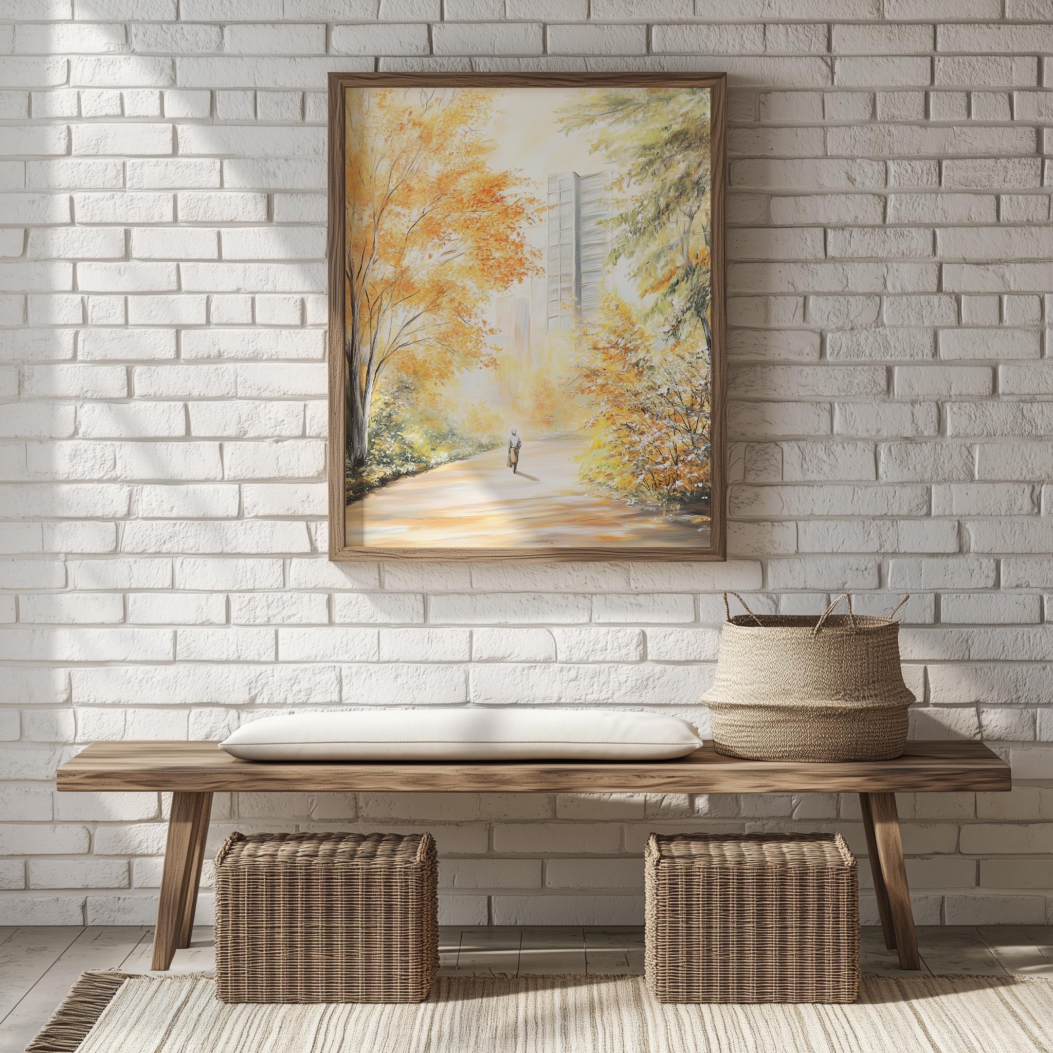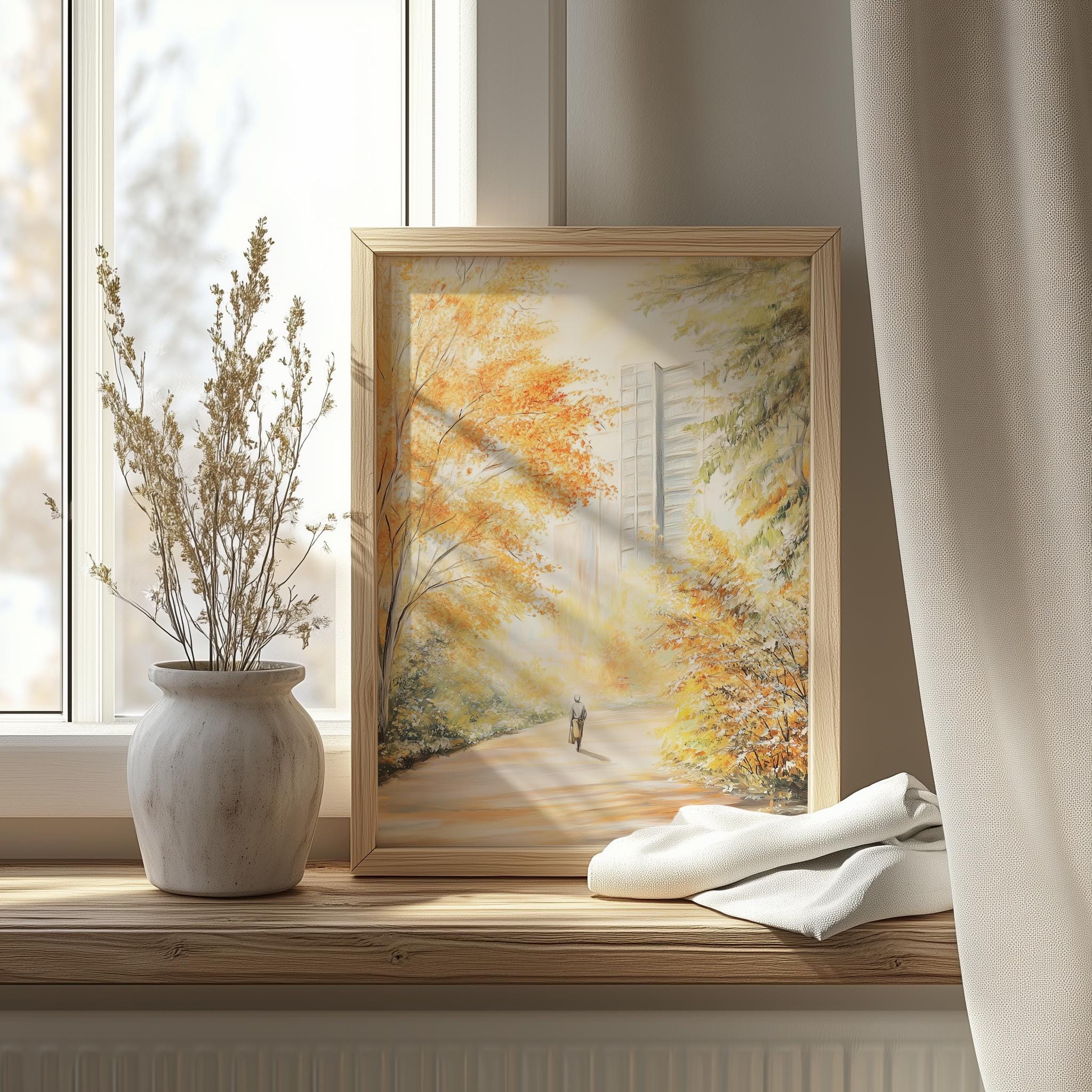 Immerse yourself in the charm with this rustic painting ofa solitary walker enjoying the serene beauty of an autumn park. An instantly downloadable print, it's perfect for elevating your decor with budget friendly charm. This gives you the flexibility to customize the size, frame, and material according to your personal taste and space, ensuring a perfect fit for your walls.