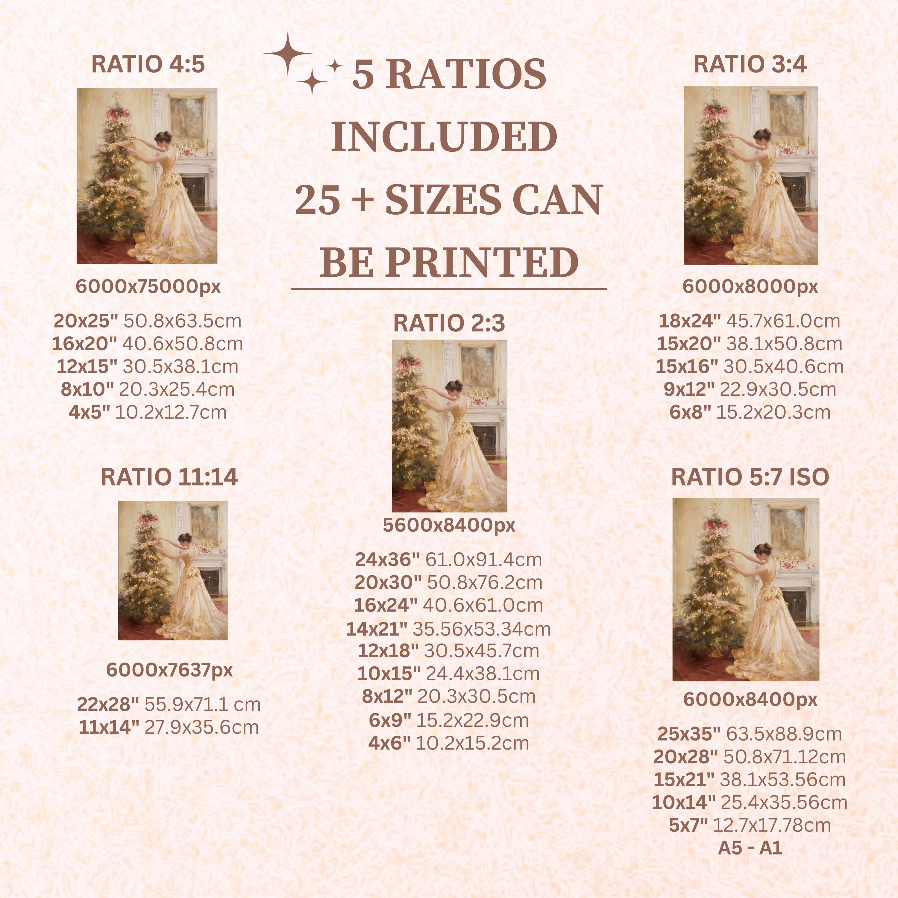 Each artwork includes 5 aspect ratios with 25+ print sizes. Most standard frames are covered. One custom resize per purchase available—message before ordering.