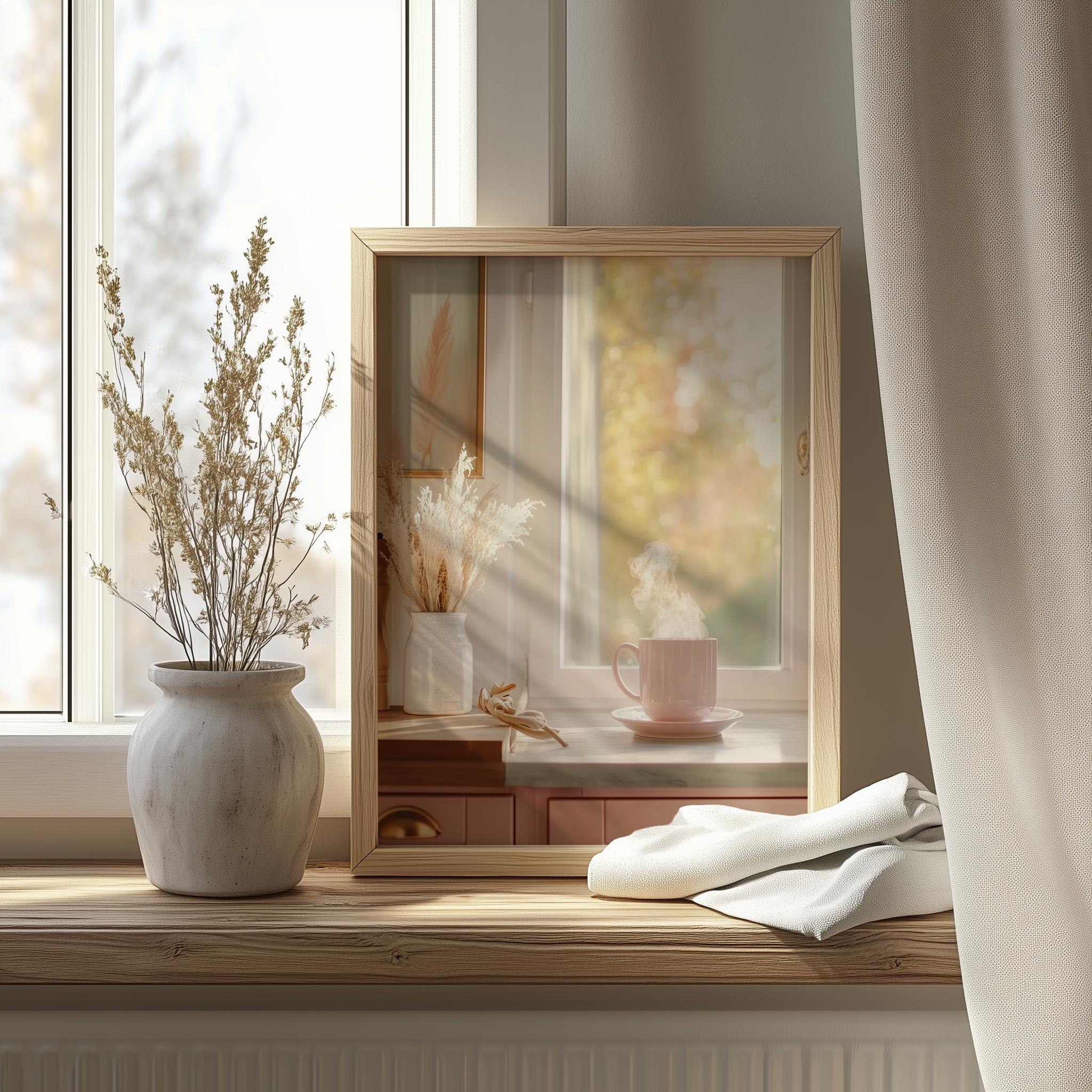 Immerse yourself in the charm with this rustic painting of a cozy kitchen windowsill adorned with seasonal decorations. An instantly downloadable print, it's perfect for elevating your decor with budget-friendly charm. This gives you the flexibility to customize the size, frame, and material according to your personal taste and space, ensuring a perfect fit for your walls.