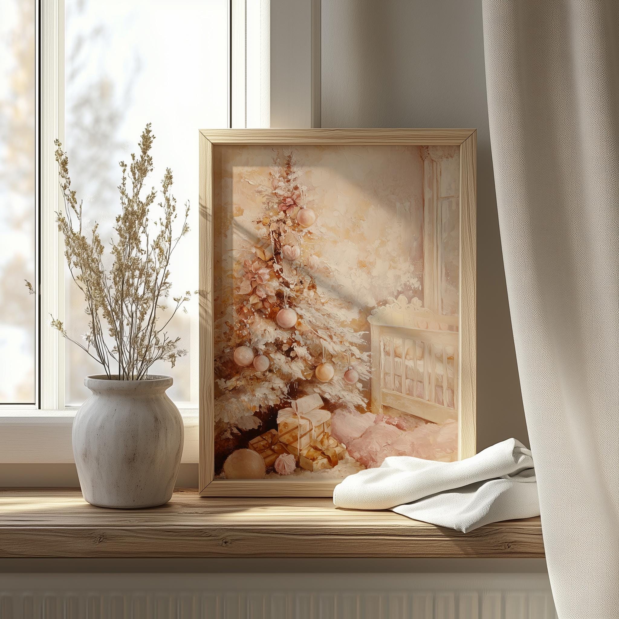 Immerse yourself in the charm with this rustic painting of a delightful pink Christmas tree surrounded by soft pastel hues. An instantly downloadable print, it's perfect for elevating your decor with budget-friendly charm. This gives you the flexibility to customize the size, frame, and material according to your personal taste and space, ensuring a perfect fit for your walls.