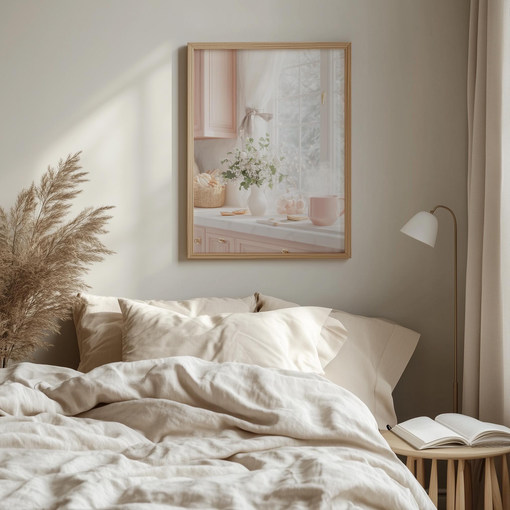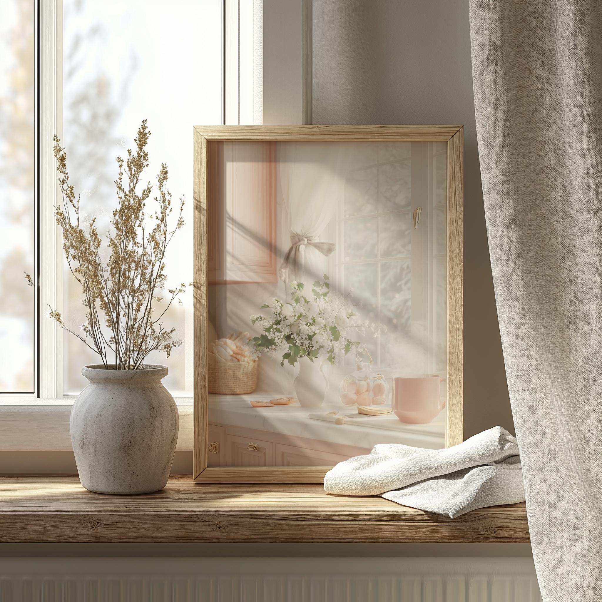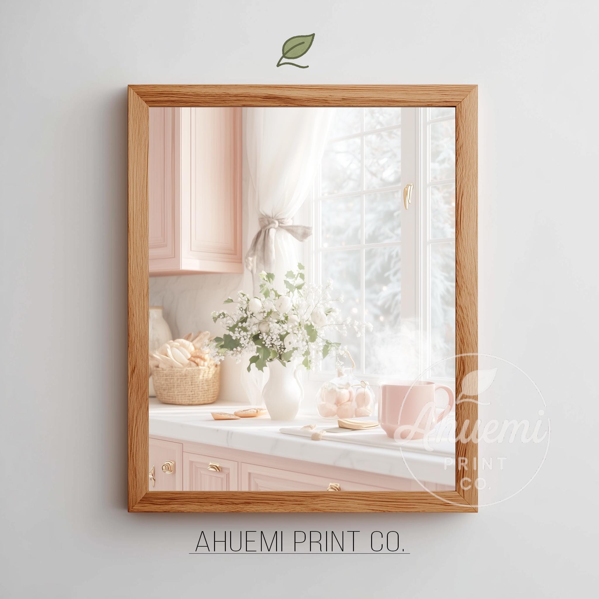 Immerse yourself in the charm with this rustic painting of a cozy holiday kitchen adorned with a potted evergreen and soft pastel accents. An instantly downloadable print, it's perfect for elevating your decor with budget-friendly charm. This gives you the flexibility to customize the size, frame, and material according to your personal taste and space, ensuring a perfect fit for your walls.