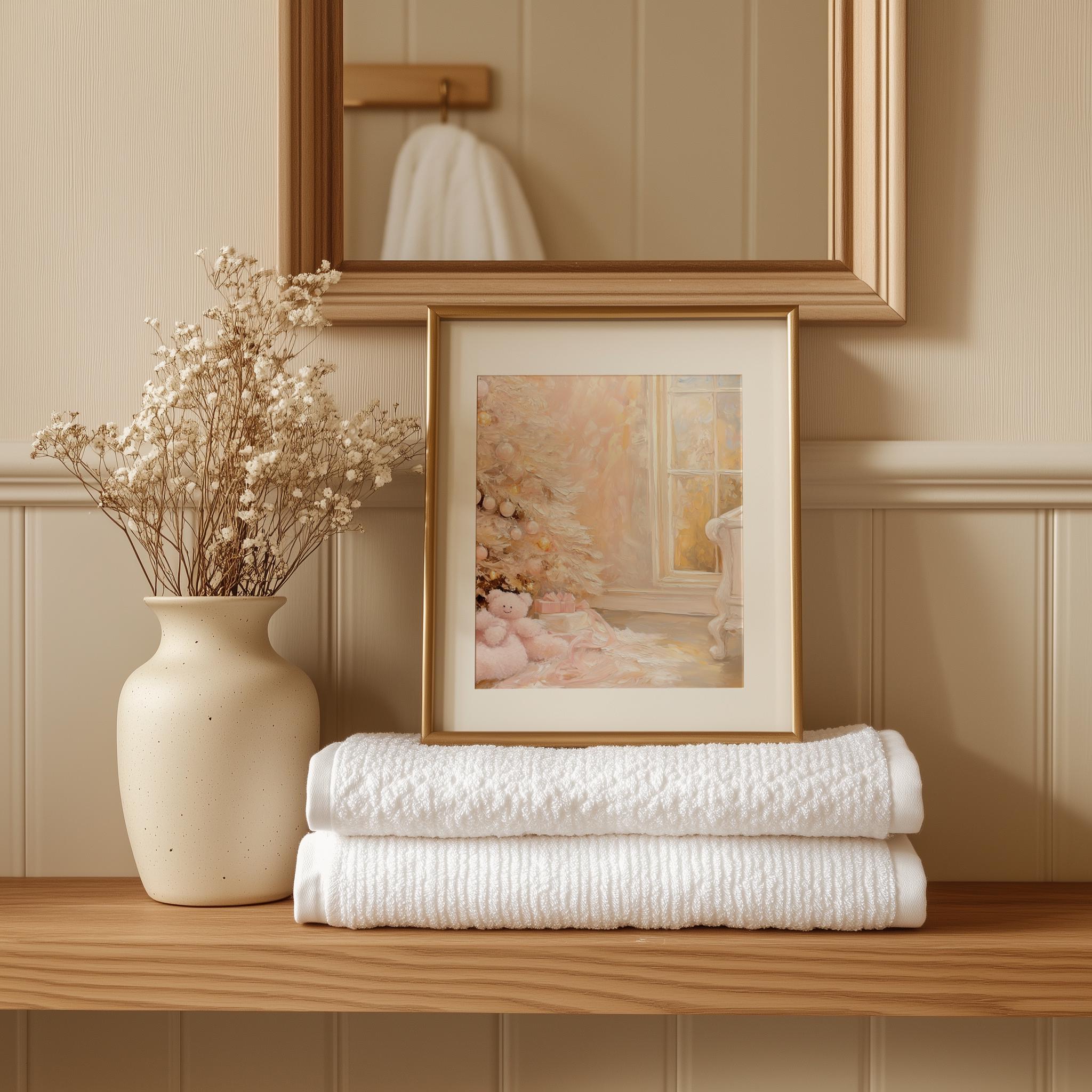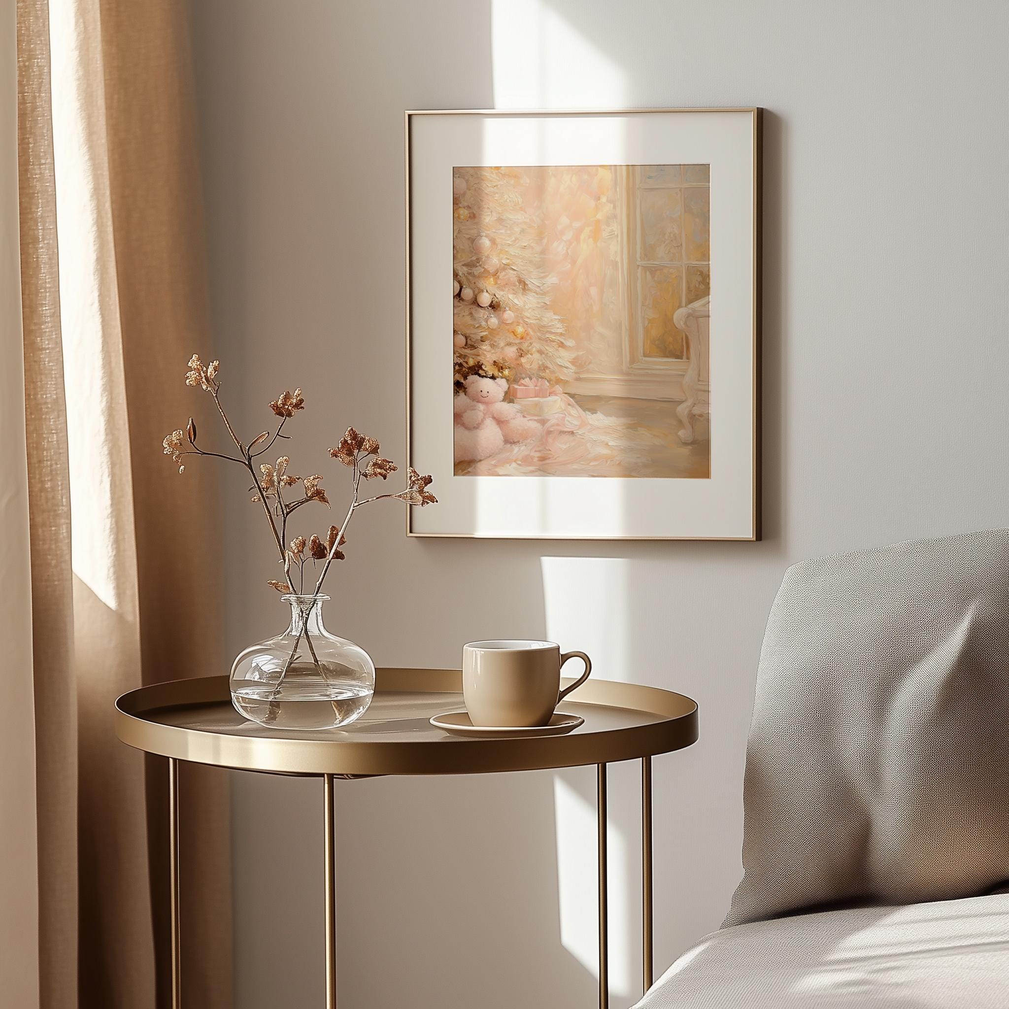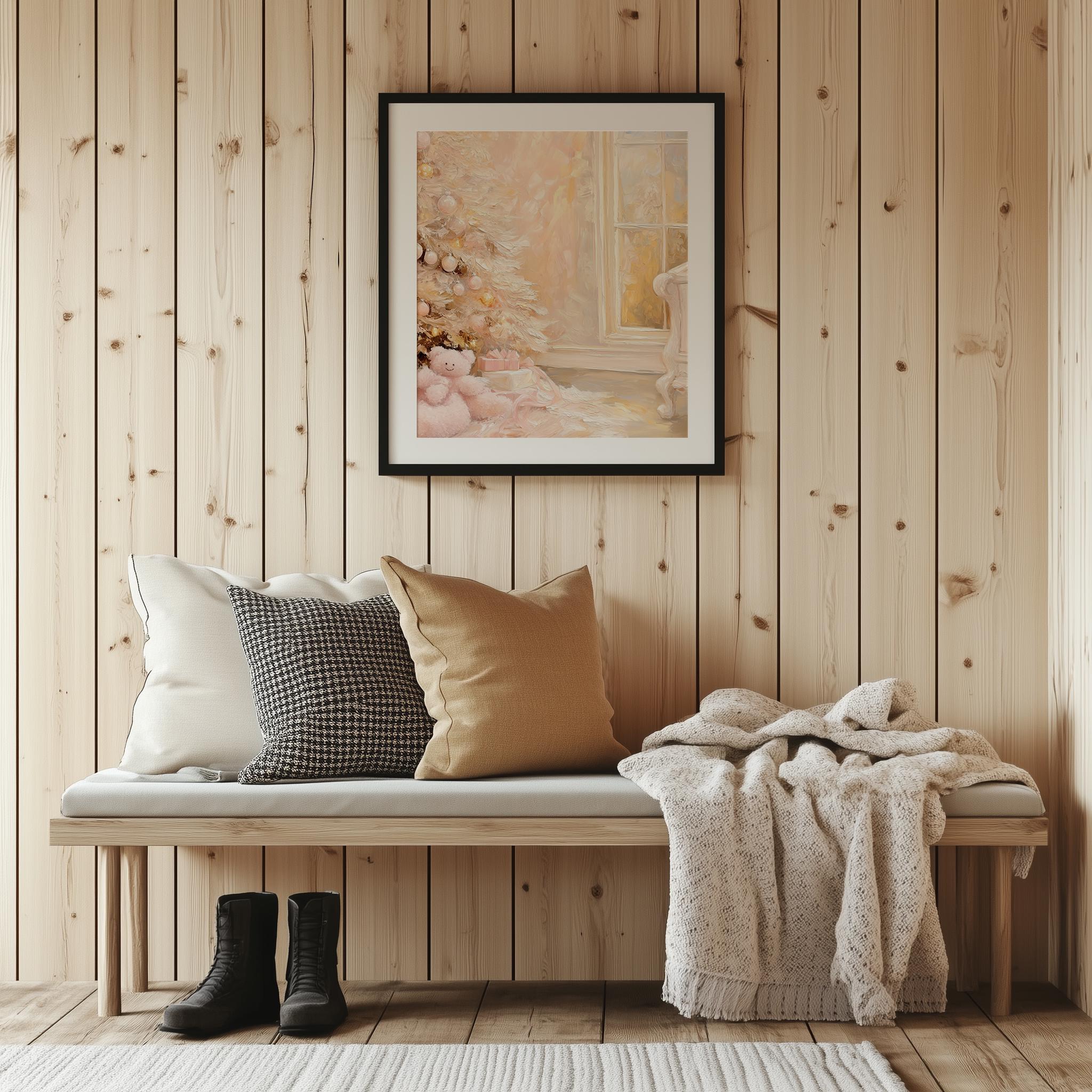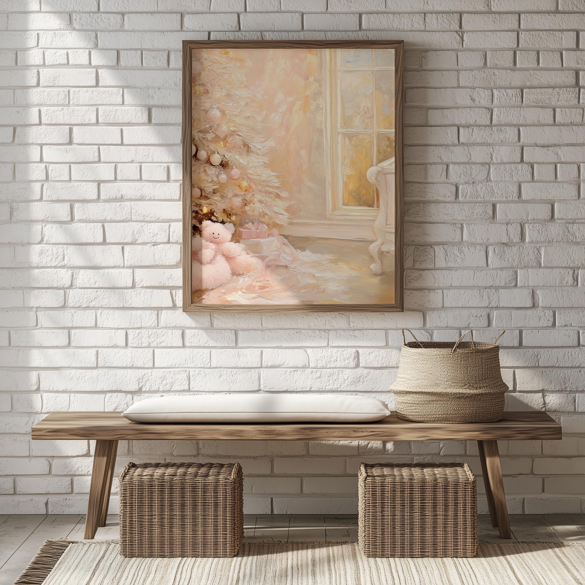 Immerse yourself in the charm with this rustic painting of a delicate pale pink Christmas tree adorned with handmade ornaments. An instantly downloadable print, it's perfect for elevating your decor with budget-friendly charm. This gives you the flexibility to customize the size, frame, and material according to your personal taste and space, ensuring a perfect fit for your walls.