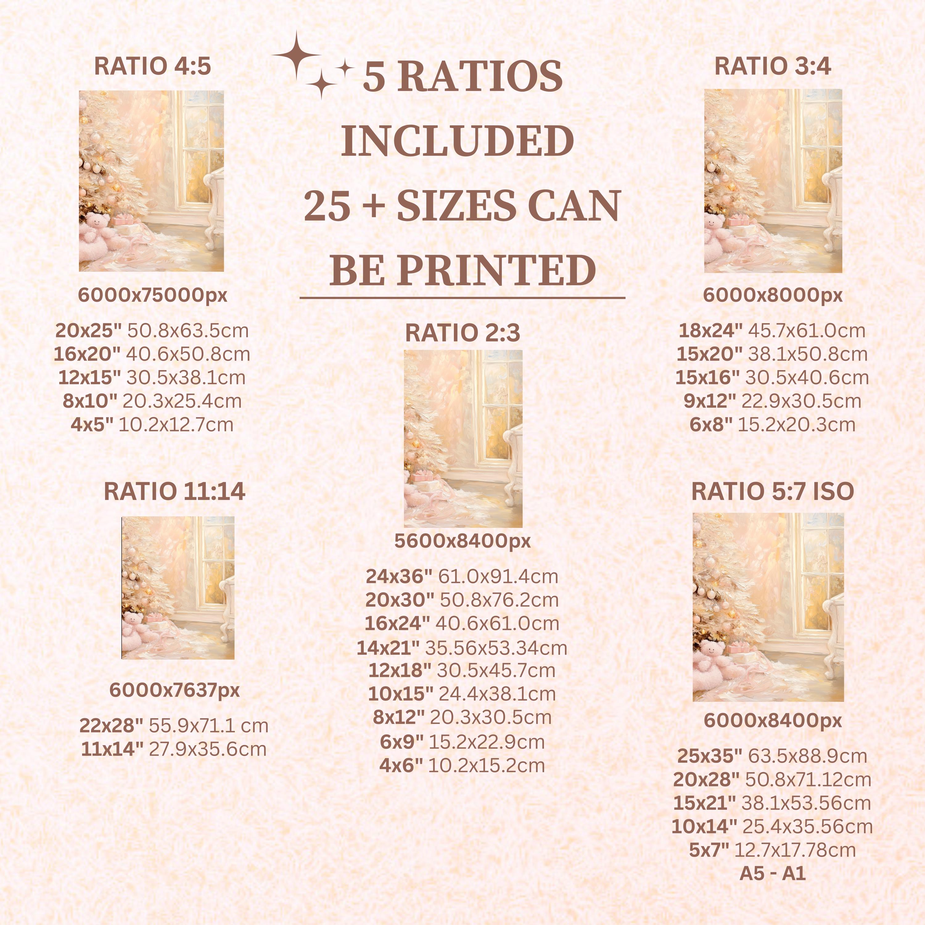 Each artwork includes 5 aspect ratios with 25+ print sizes. Most standard frames are covered. One custom resize per purchase available—message before ordering.