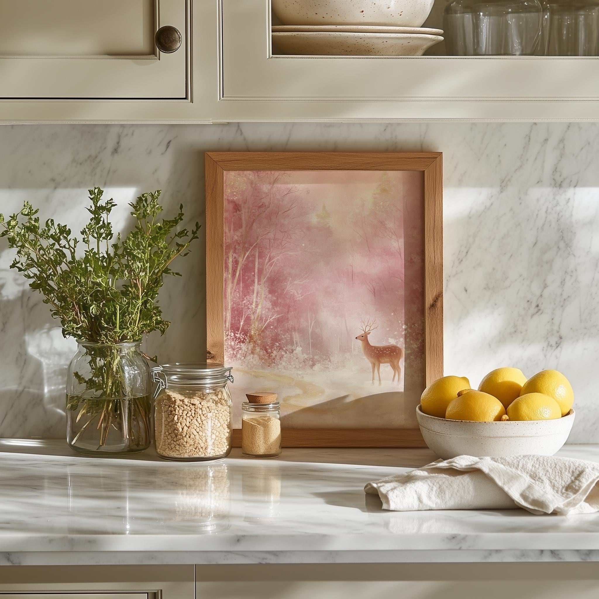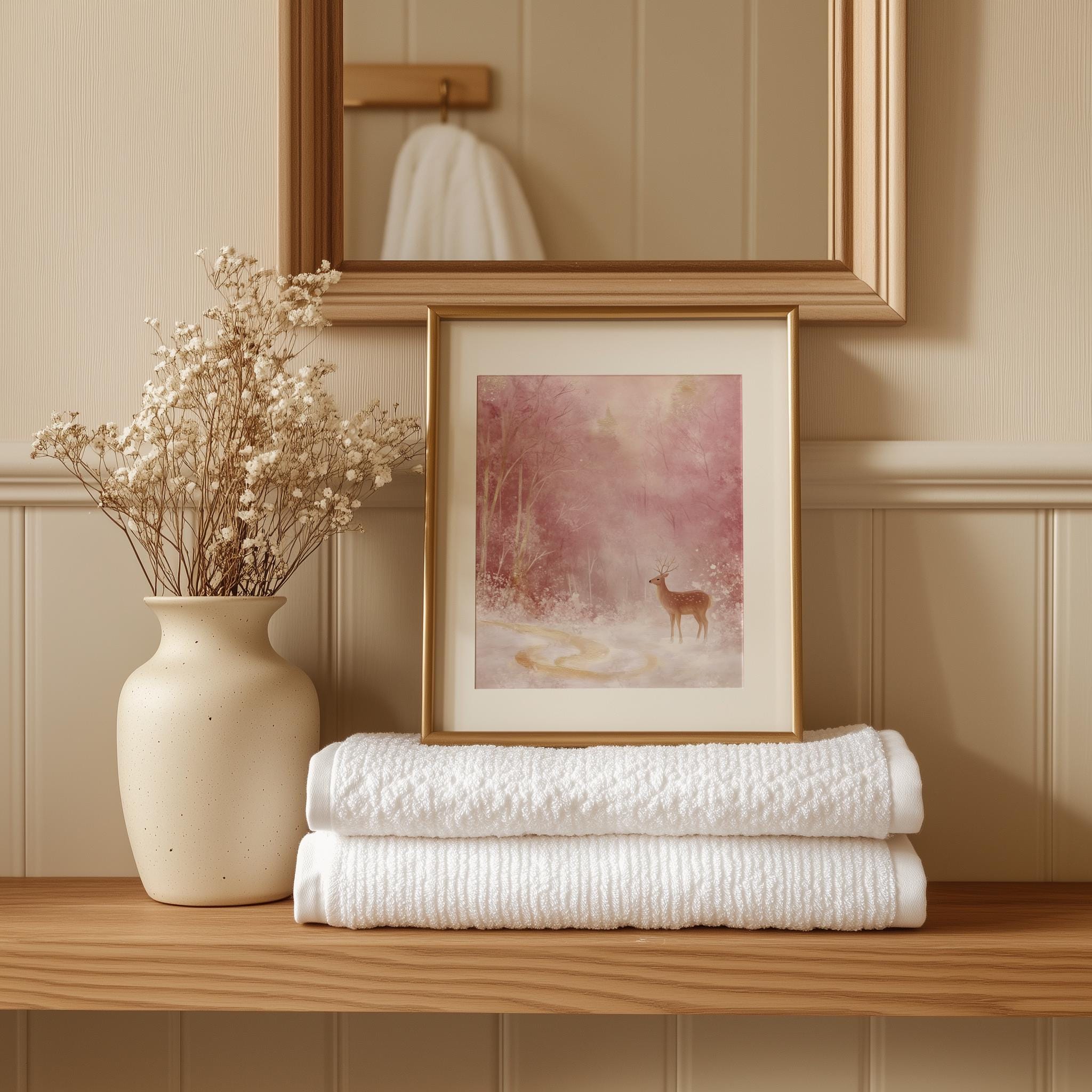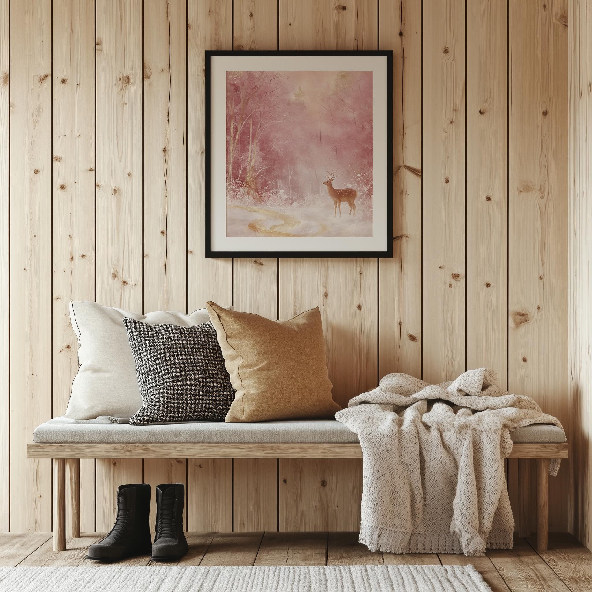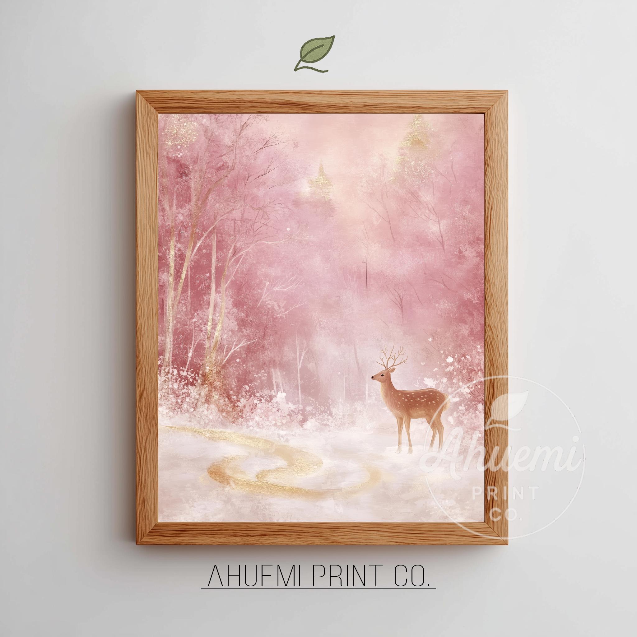 Immerse yourself in the charm with this rustic painting of a serene pastel deer gracefully wandering through a snowy twilight forest. An instantly downloadable print, it's perfect for elevating your decor with budget-friendly charm. This gives you the flexibility to customize the size, frame, and material according to your personal taste and space, ensuring a perfect fit for your walls.