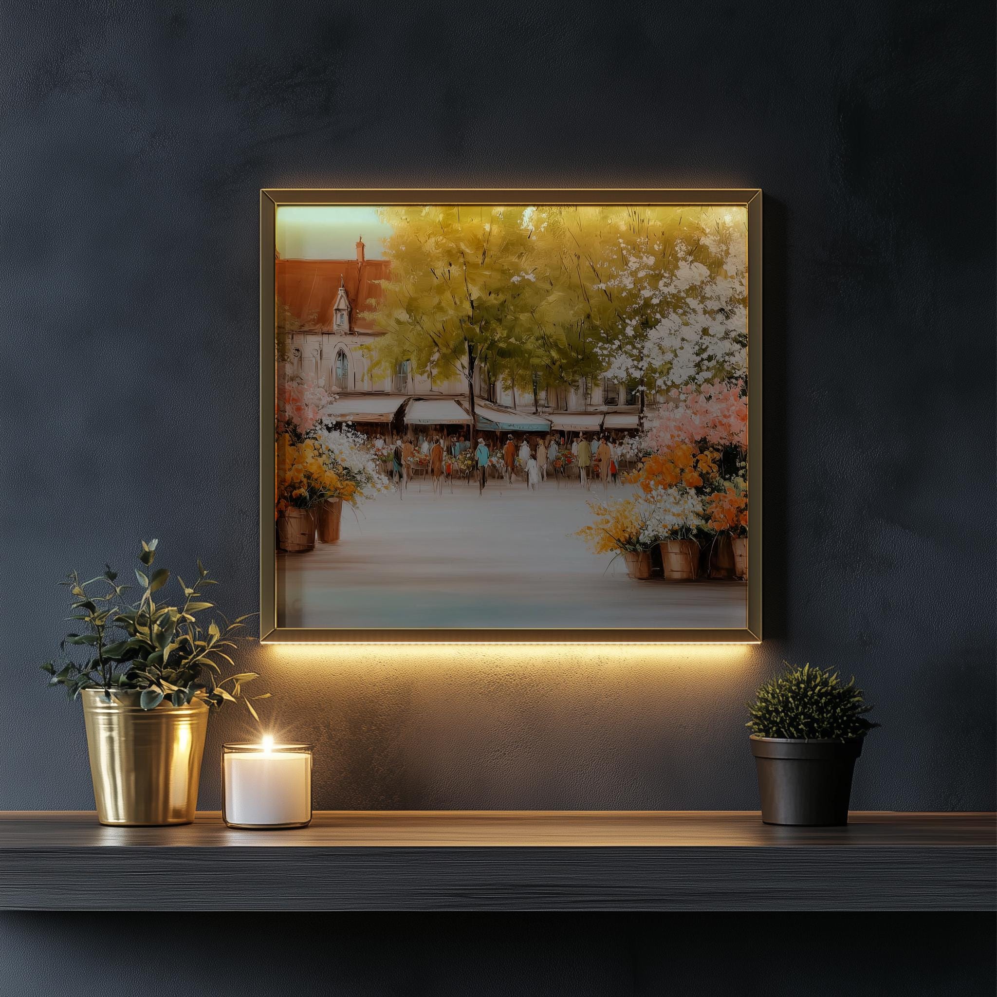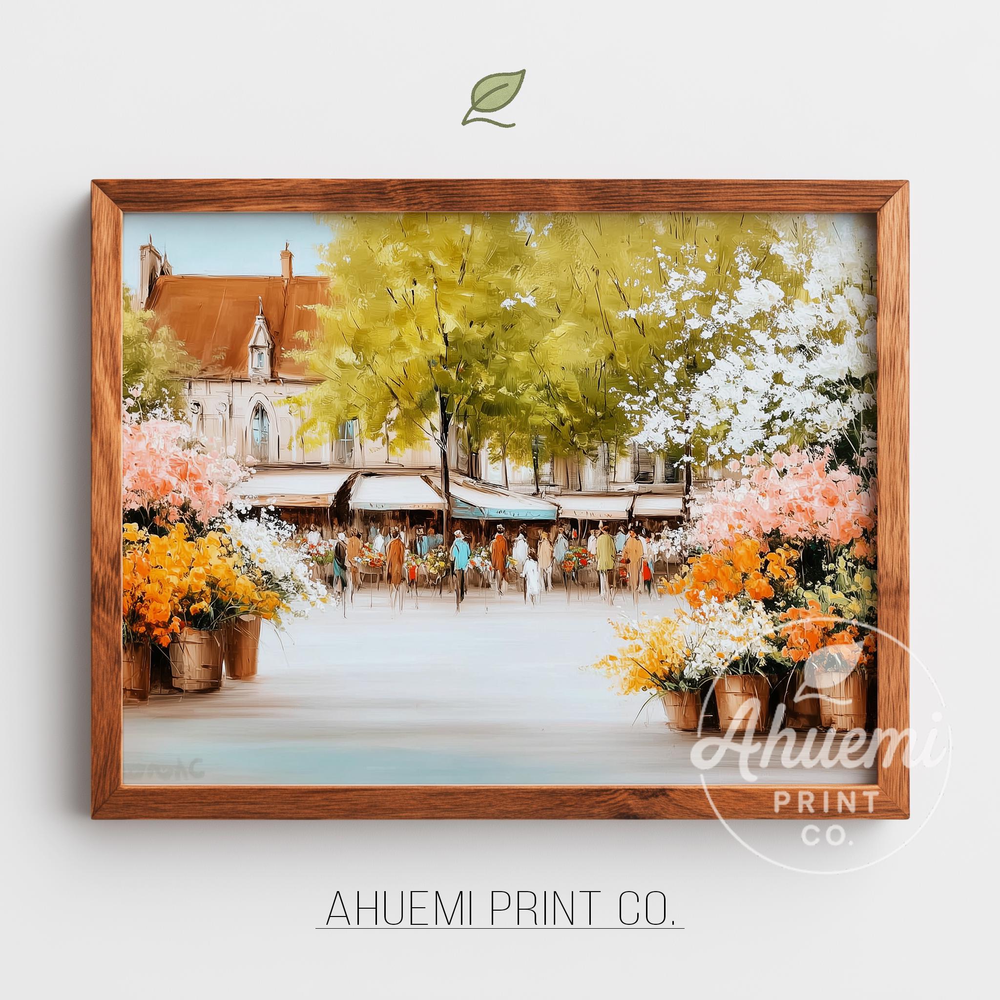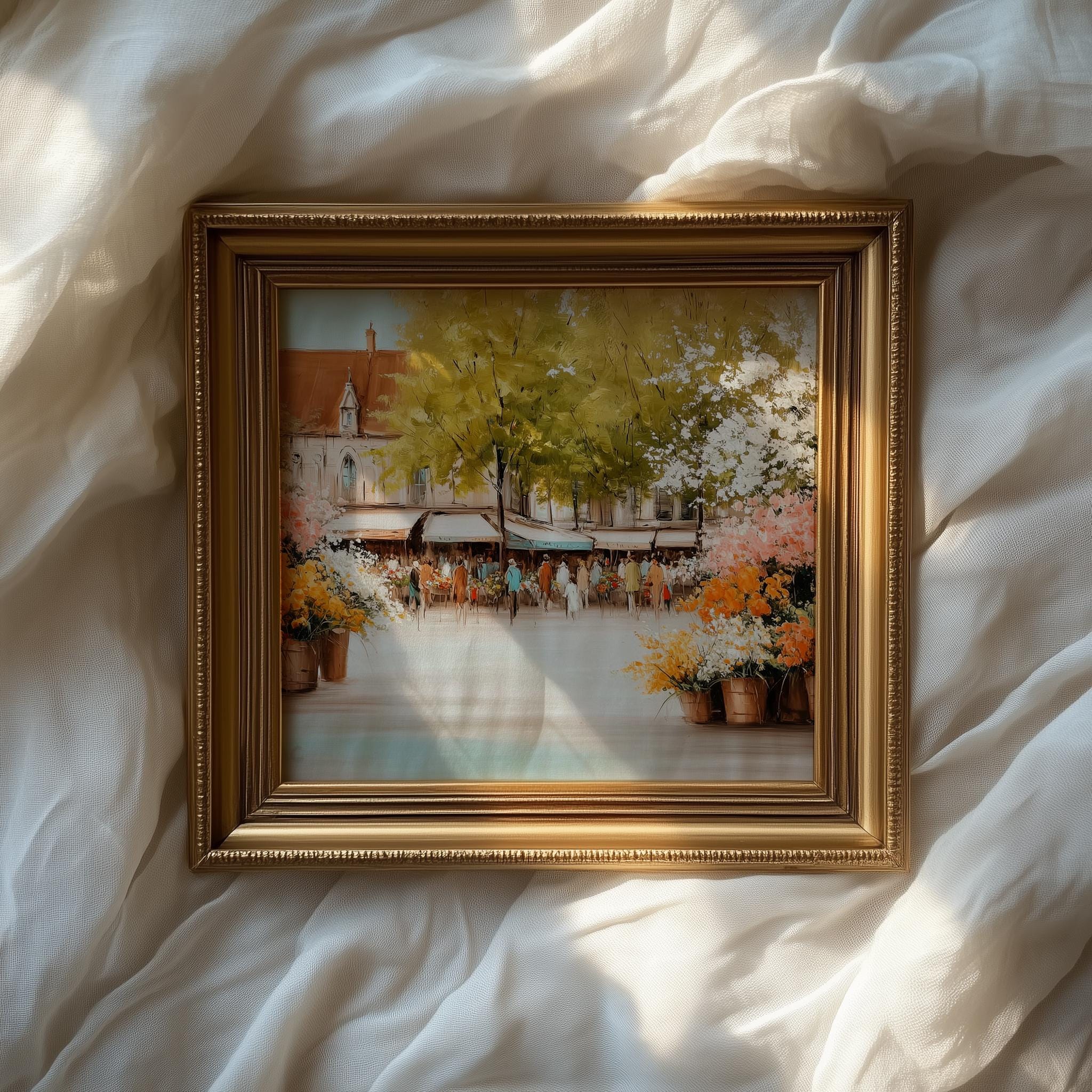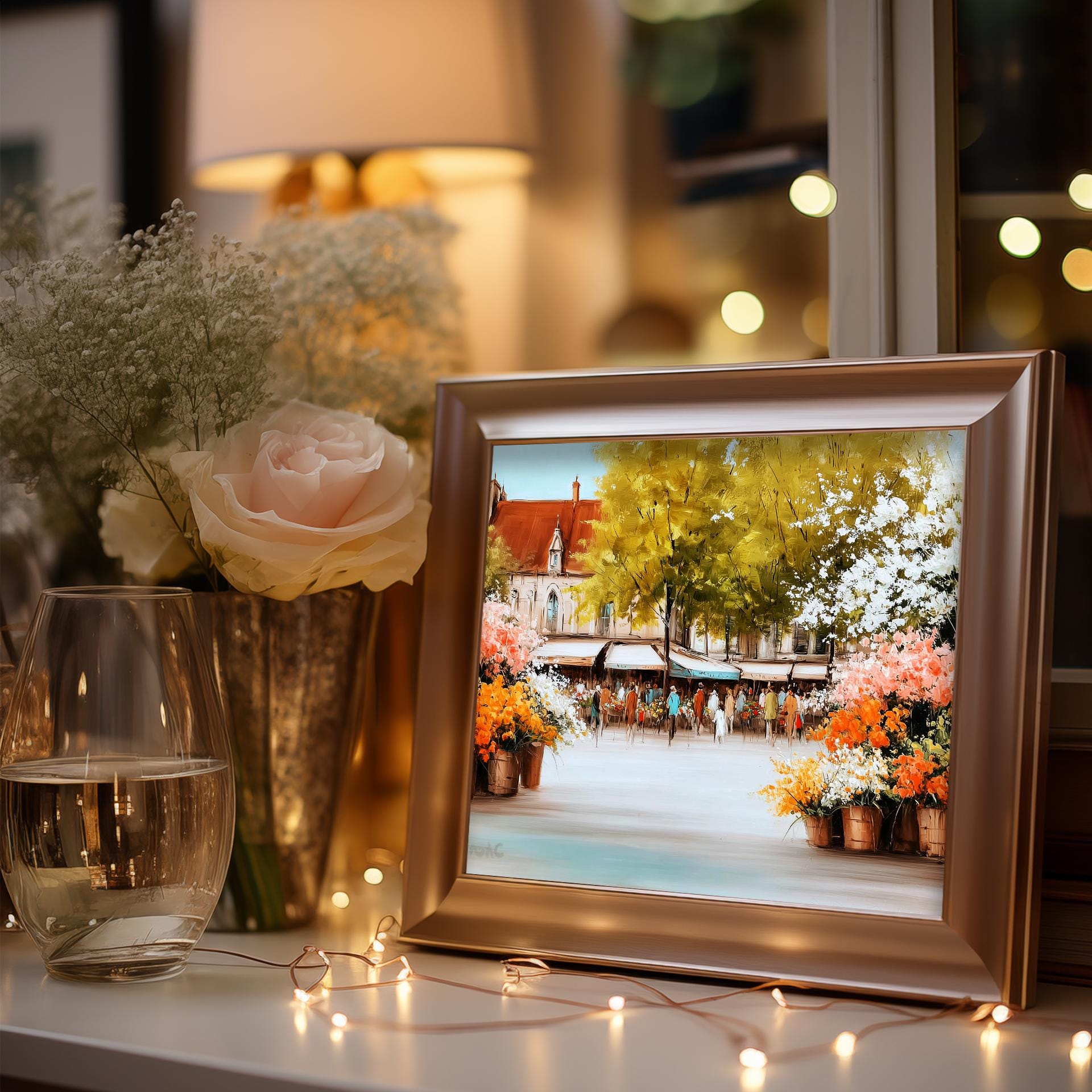 Immerse yourself in the charm with this rustic painting of a charming European flower market, bustling with pastel blooms and rustic stalls. An instantly downloadable print, it's perfect for elevating your decor with budget-friendly charm. This gives you the flexibility to customize the size, frame, and material according to your personal taste and space, ensuring a perfect fit for your walls.