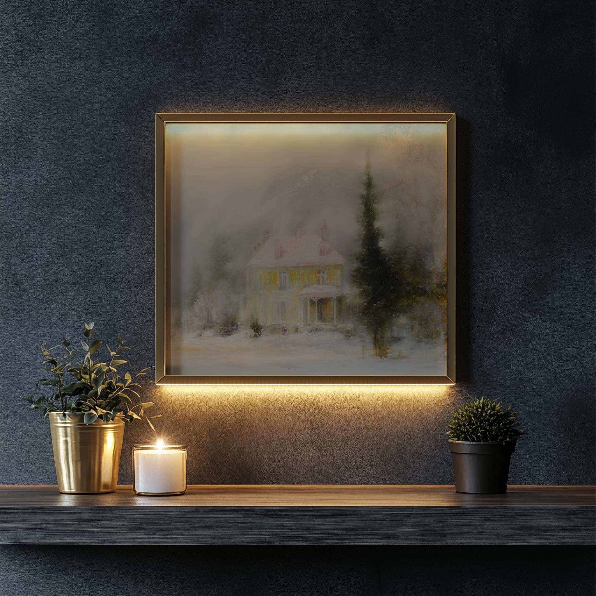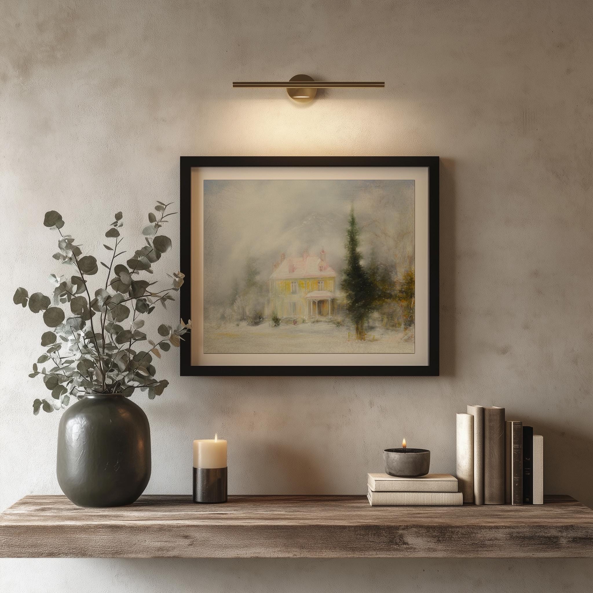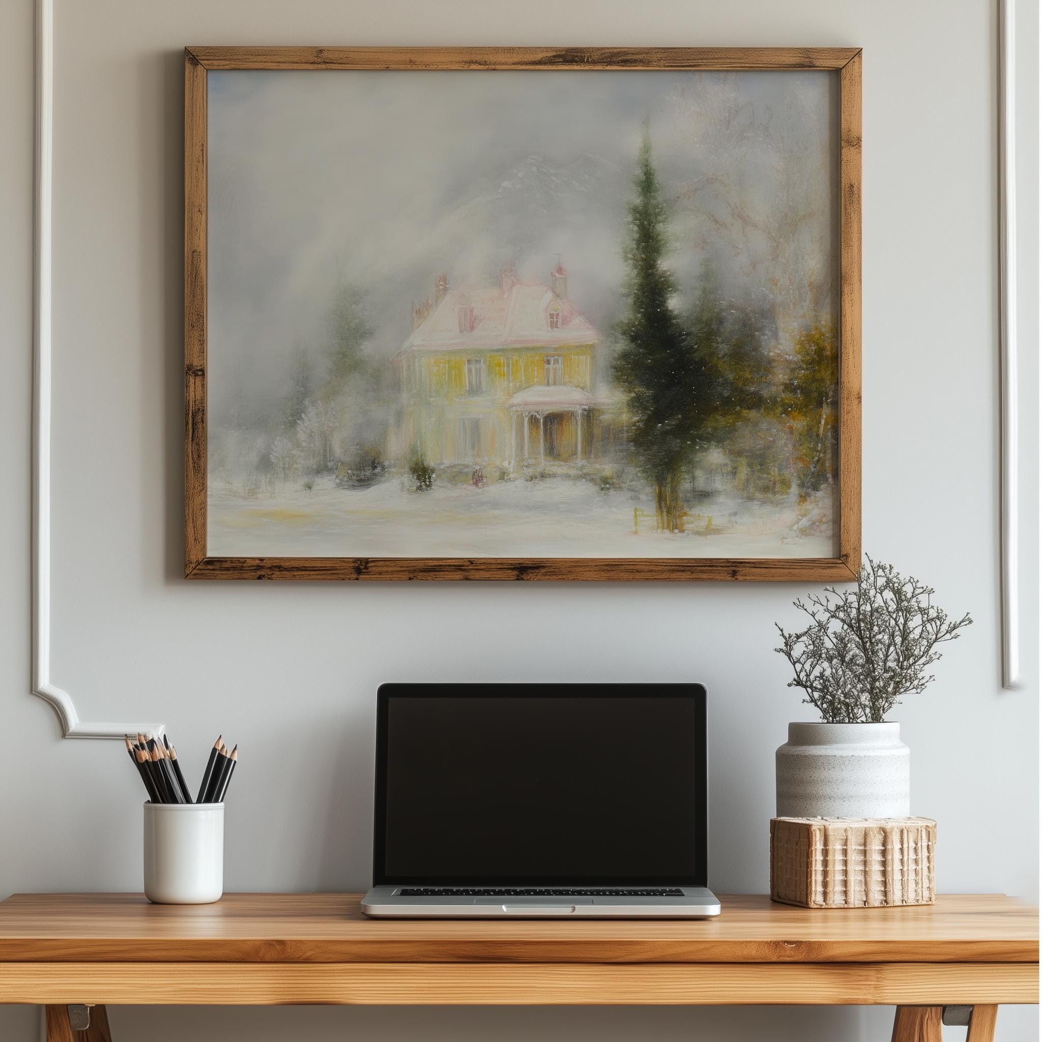 Immerse yourself in the charm with this rustic painting of a snowy mountain village, complete with a cozy cottage and a warm glow. An instantly downloadable print, it's perfect for elevating your decor with budget-friendly charm. This gives you the flexibility to customize the size, frame, and material according to your personal taste and space, ensuring a perfect fit for your walls.