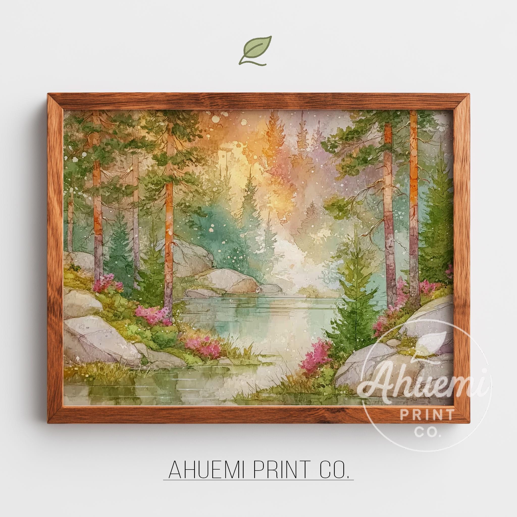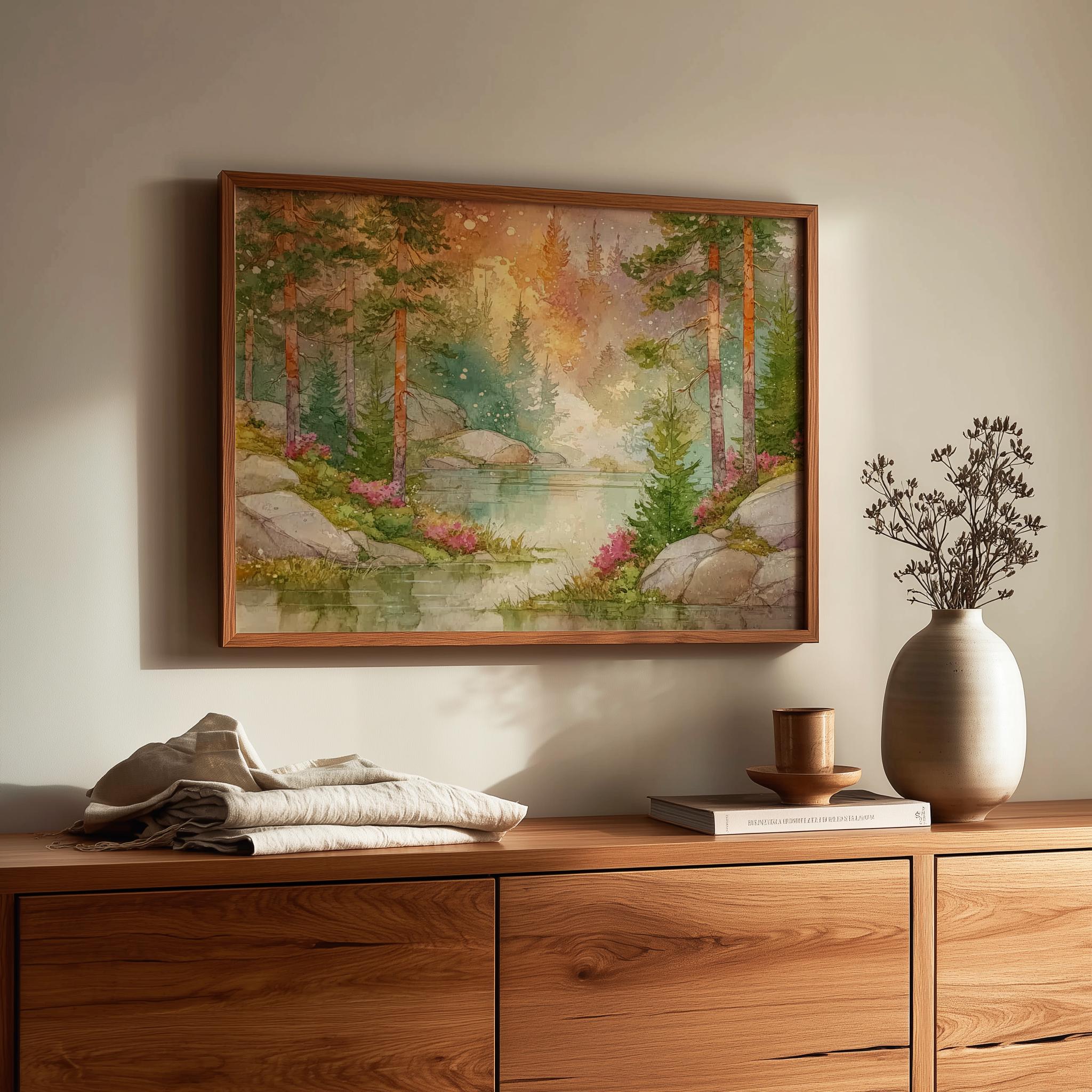 Misty Forest Watercolor Print – Tranquil Cottagecore Landscape (Digital Download)
