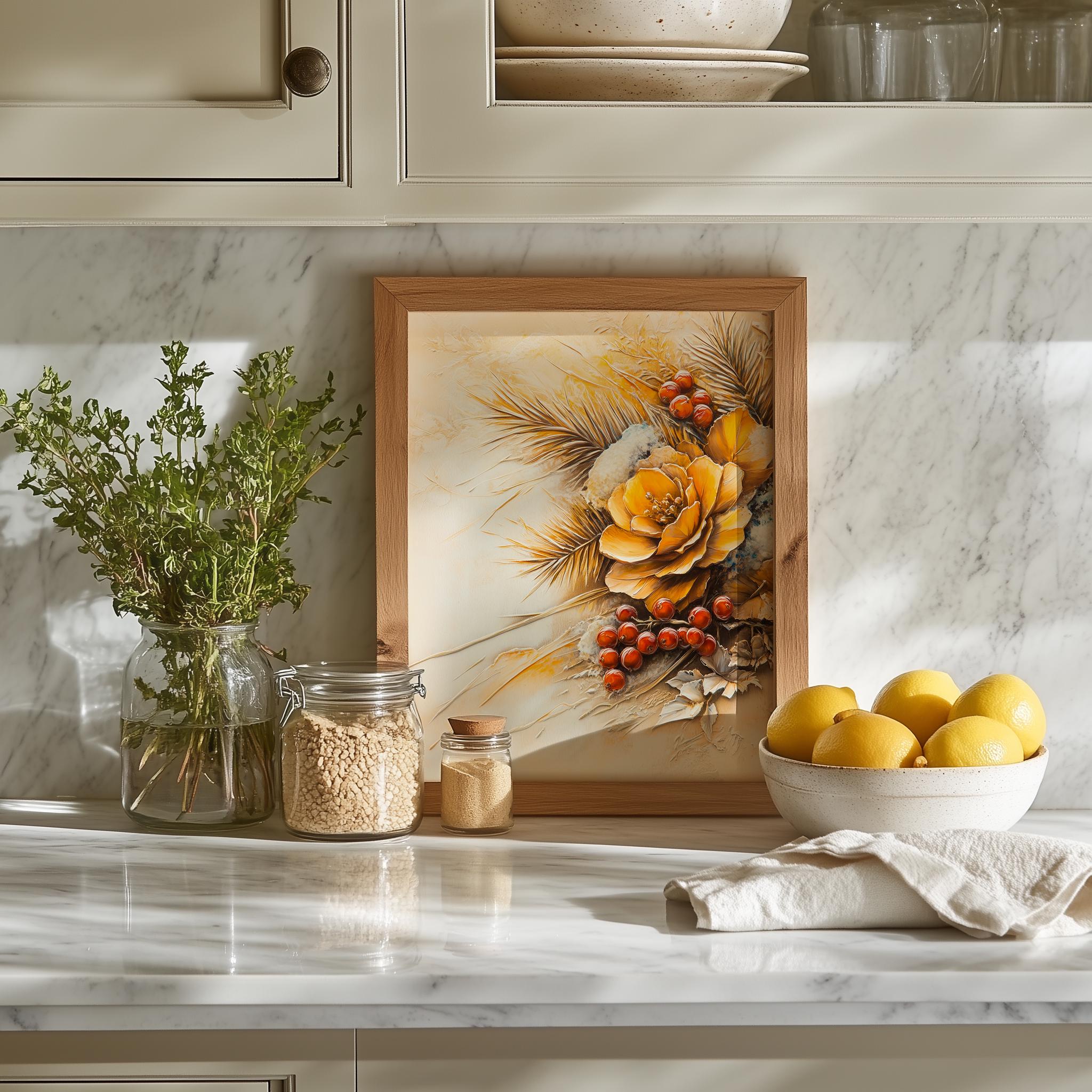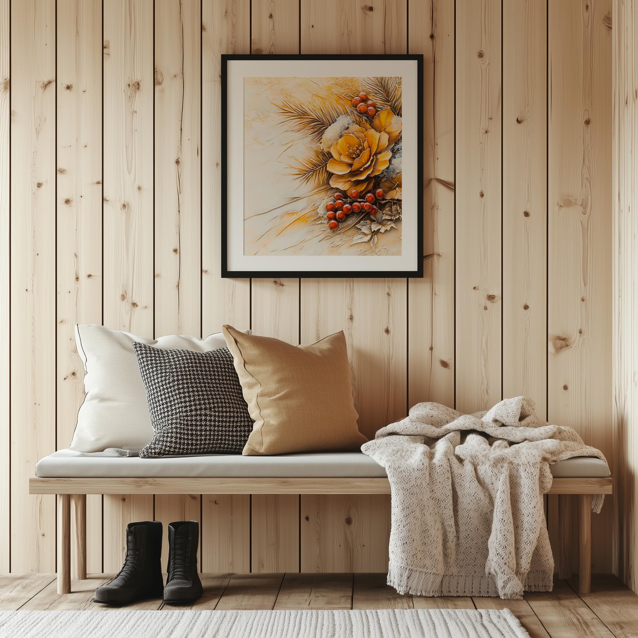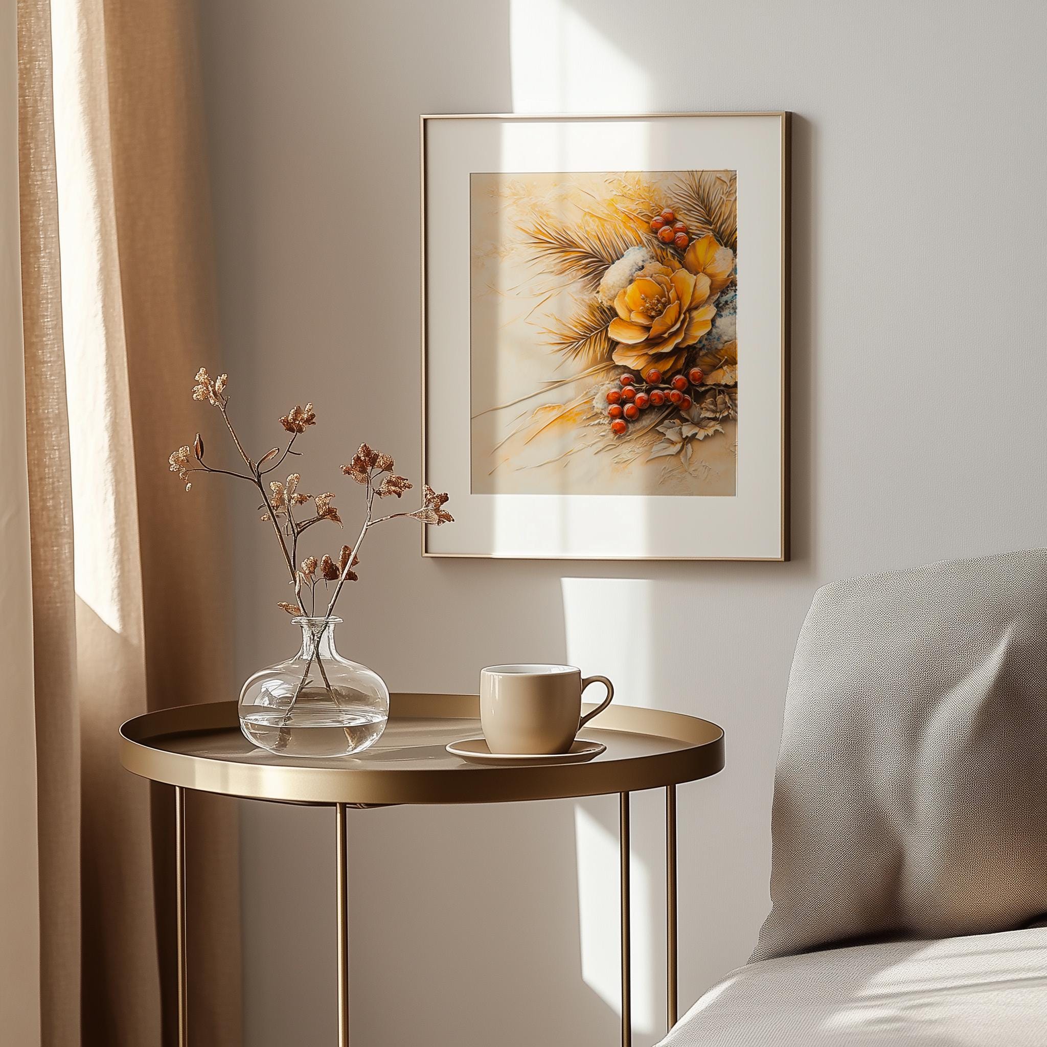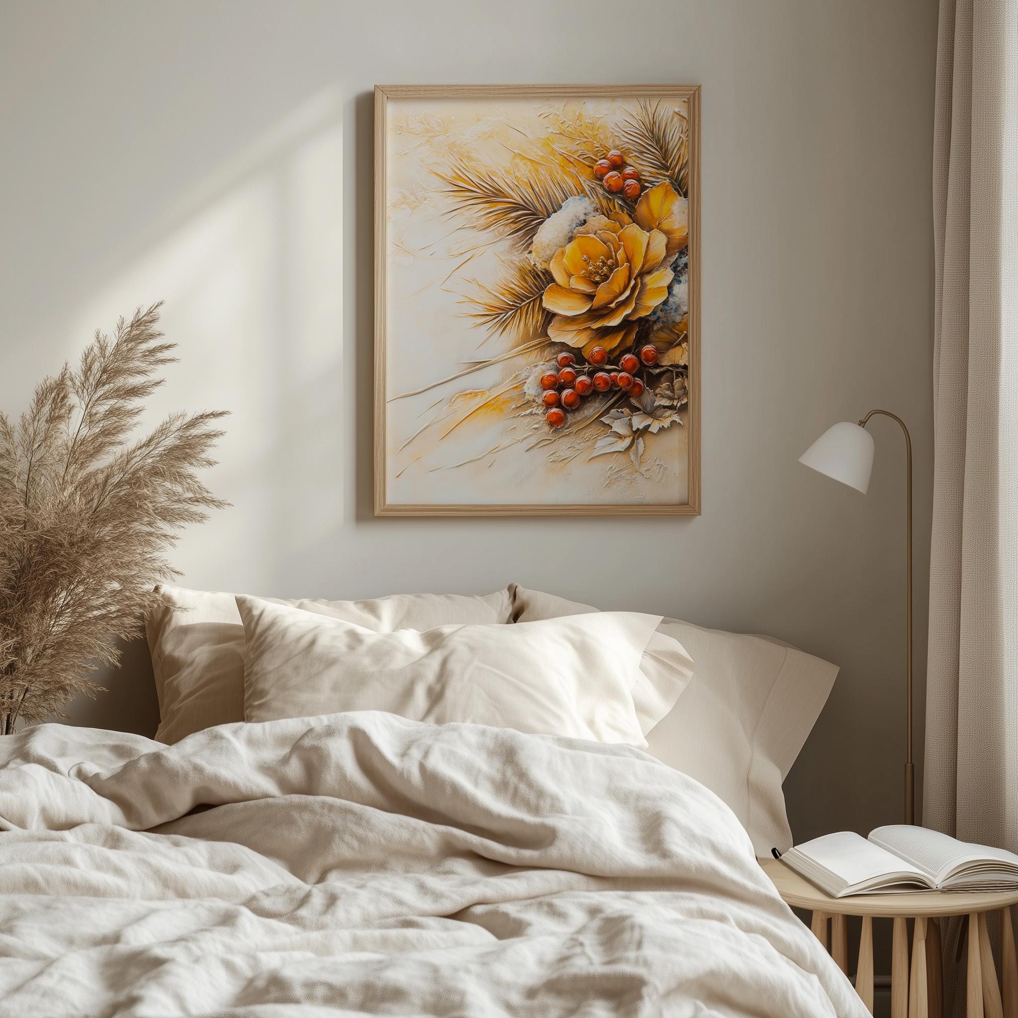 Immerse yourself in the charm of this rustic painting of a delicate pine branch adorned with a vibrant rose. An instantly downloadable print, it's perfect for elevating your decor with budget-friendly charm. This gives you the flexibility to customize the size, frame, and material according to your personal taste and space, ensuring a perfect fit for your walls.