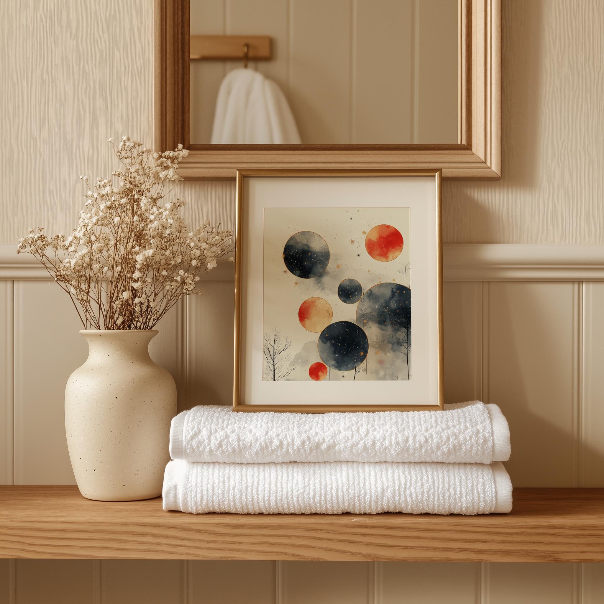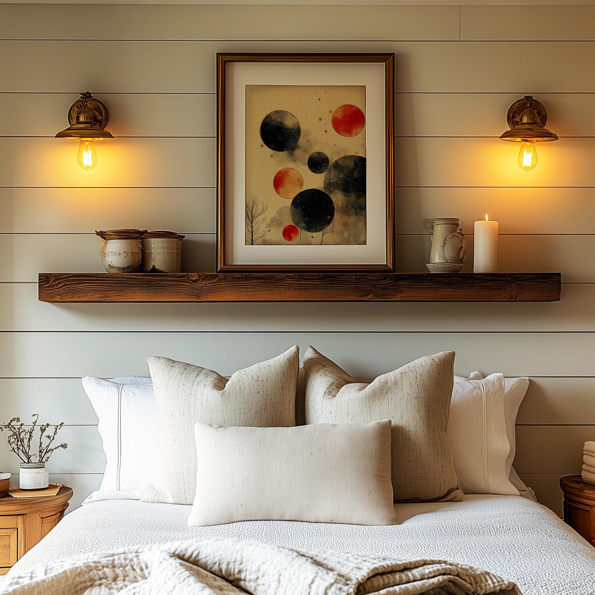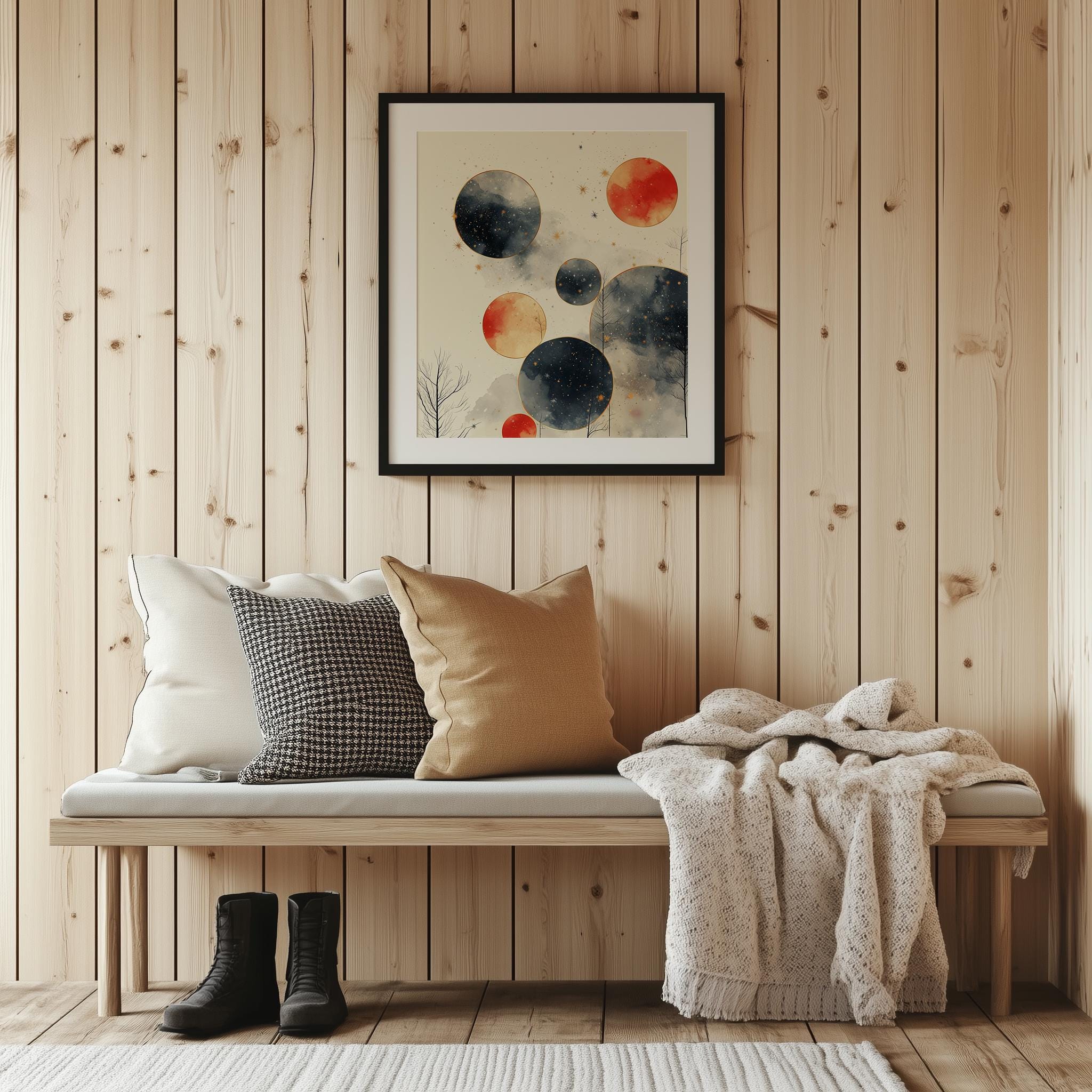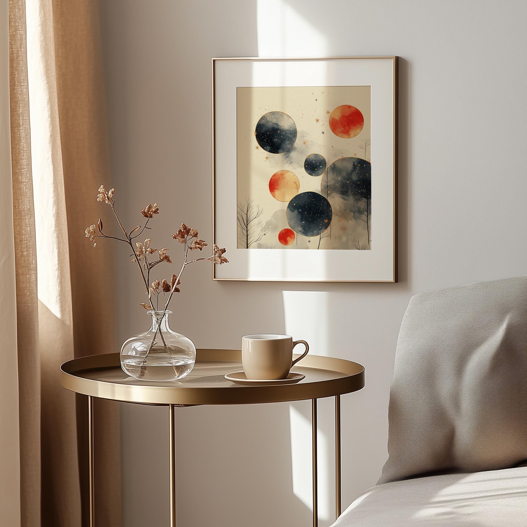 Immerse yourself in the charm of this rustic painting of a serene winter landscape featuring ethereal circular orbs. An instantly downloadable print, it's perfect for elevating your decor with budget-friendly charm. This gives you the flexibility to customize the size, frame, and material according to your personal taste and space, ensuring a perfect fit for your walls.