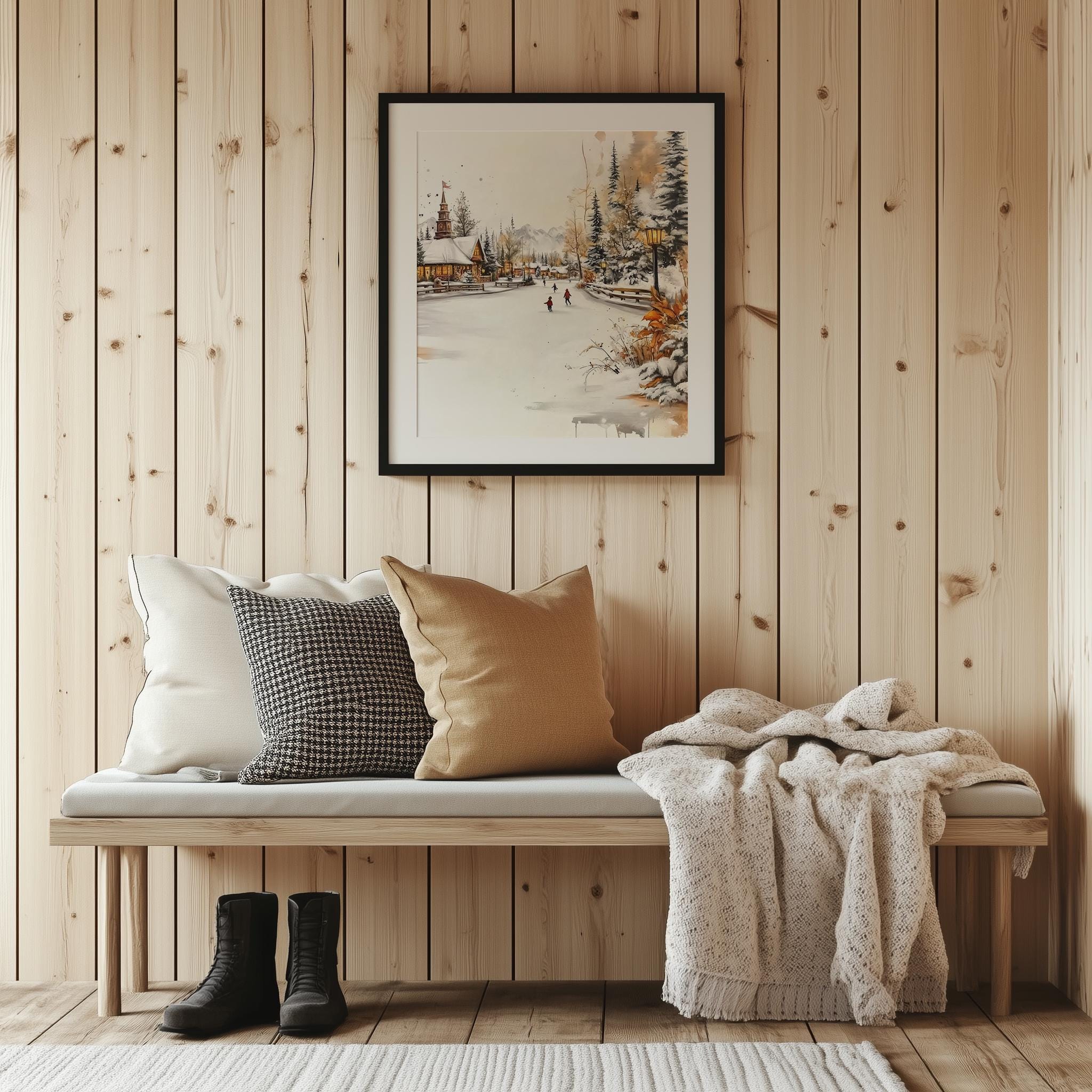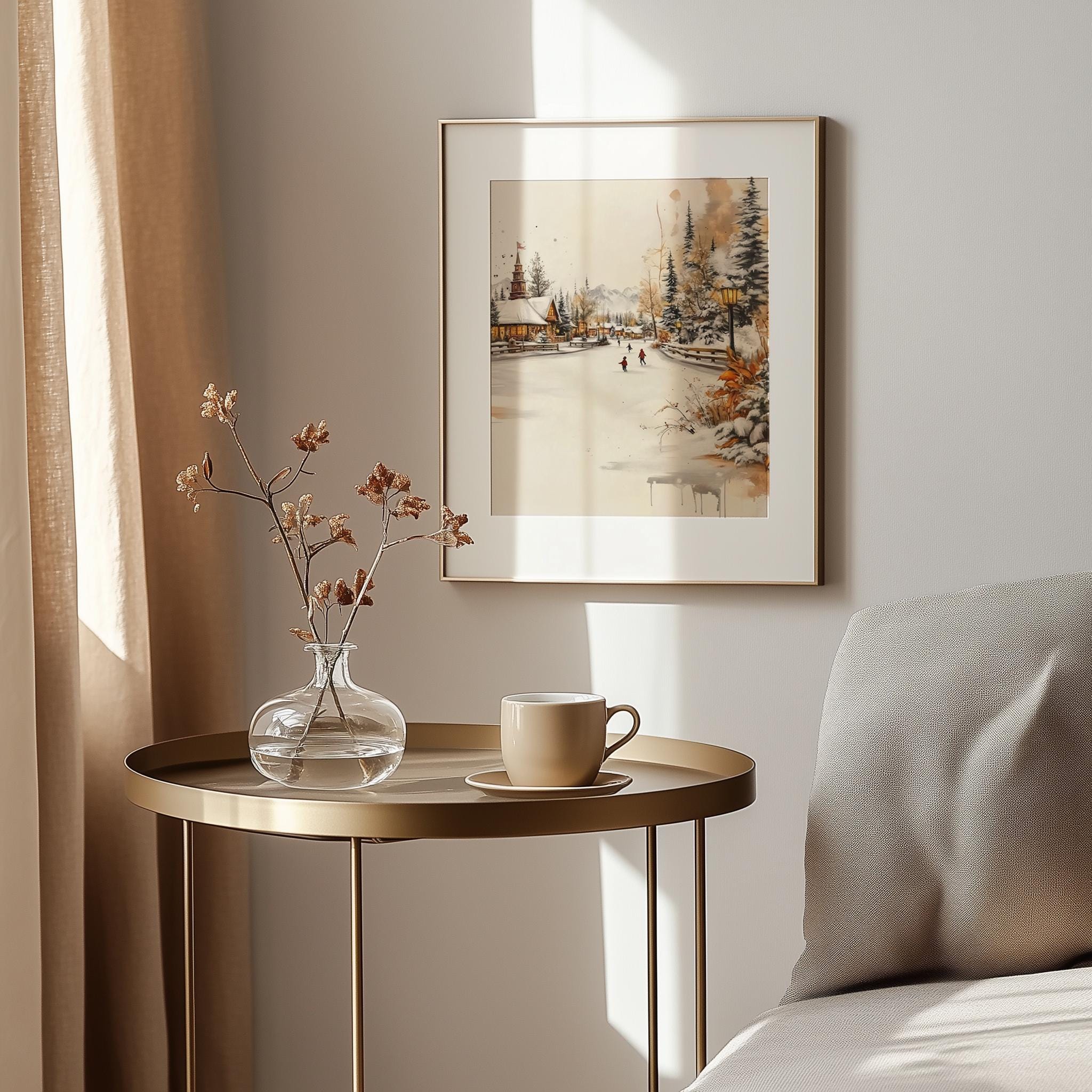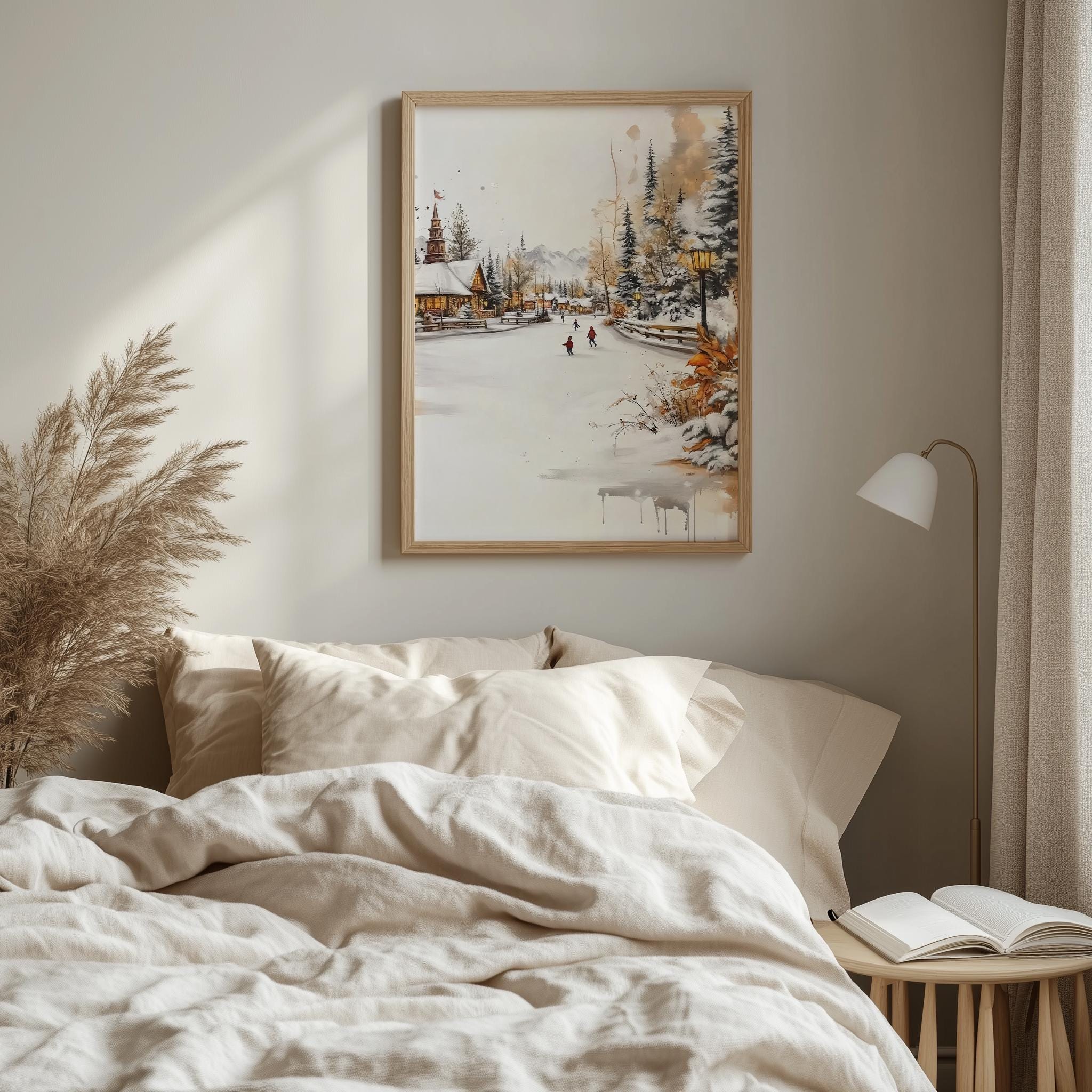 Immerse yourself in the charm of this rustic painting of children joyfully ice skating in a picturesque winter village. An instantly downloadable print, it's perfect for elevating your decor with budget-friendly charm. This gives you the flexibility to customize the size, frame, and material according to your personal taste and space, ensuring a perfect fit for your walls.