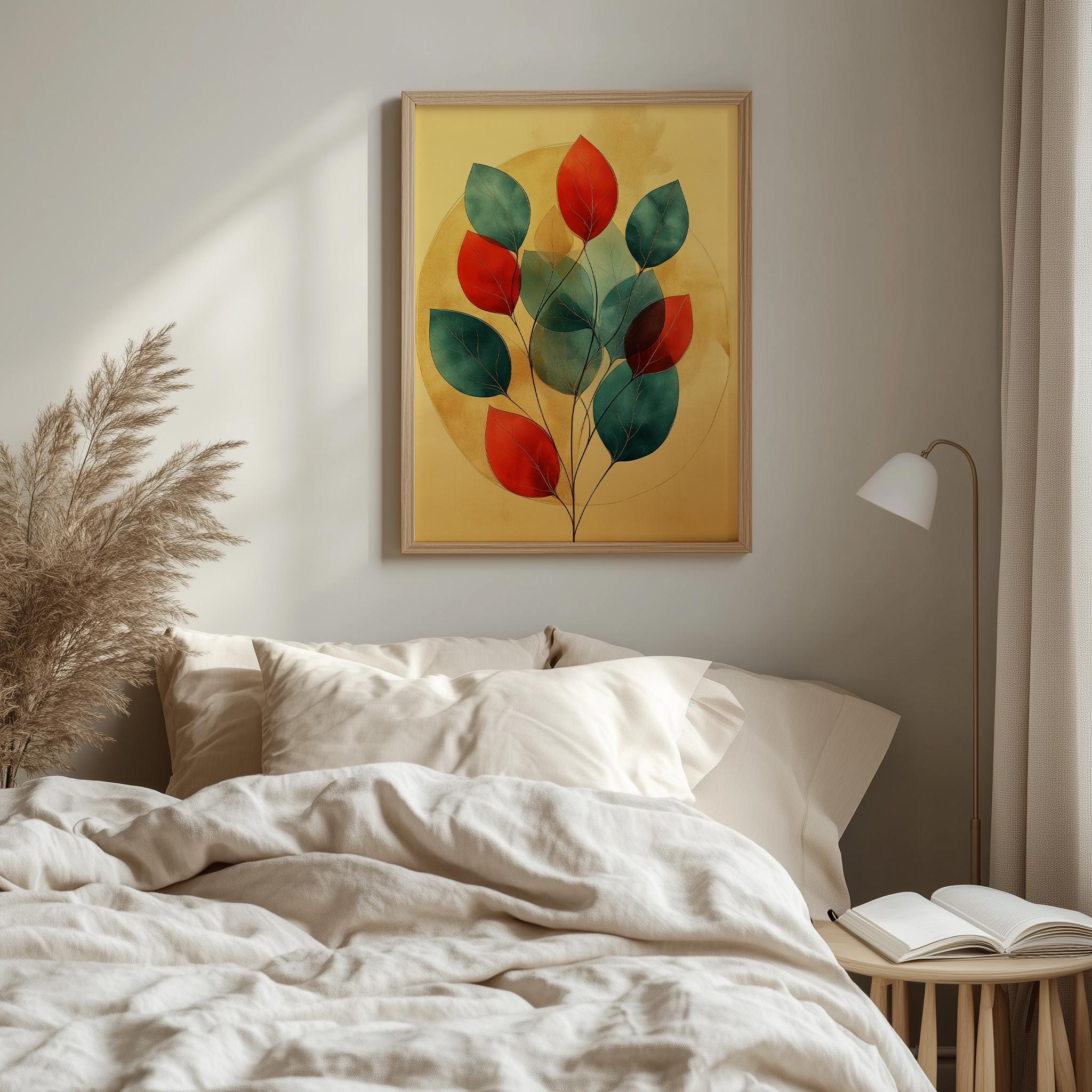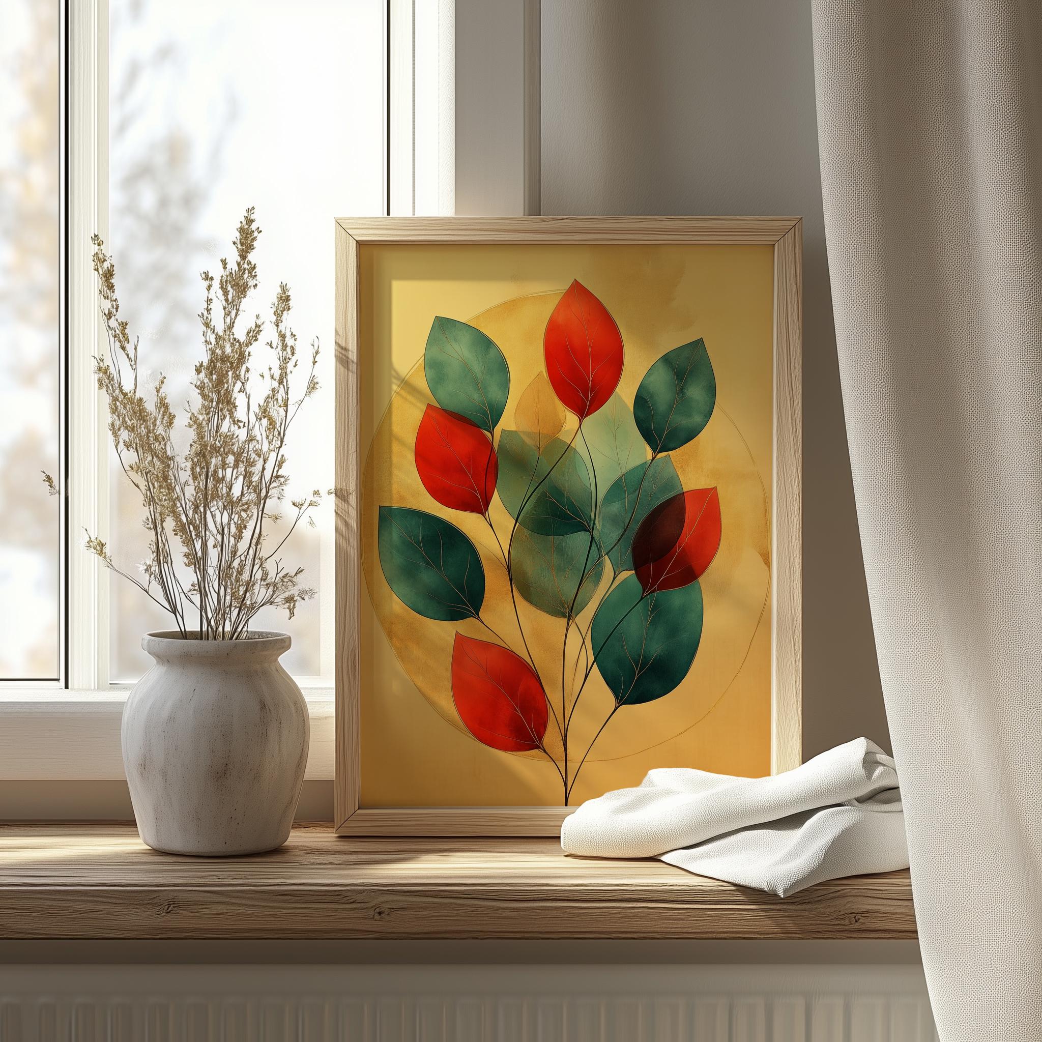 Immerse yourself in the charm of this rustic painting of delicate mistletoe adorned with cozy green and red leaves. An instantly downloadable print, it's perfect for elevating your decor with budget-friendly charm. This gives you the flexibility to customize the size, frame, and material according to your personal taste and space, ensuring a perfect fit for your walls.