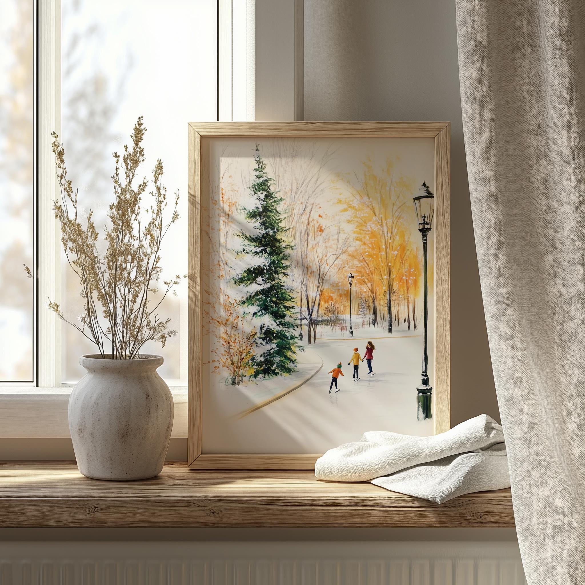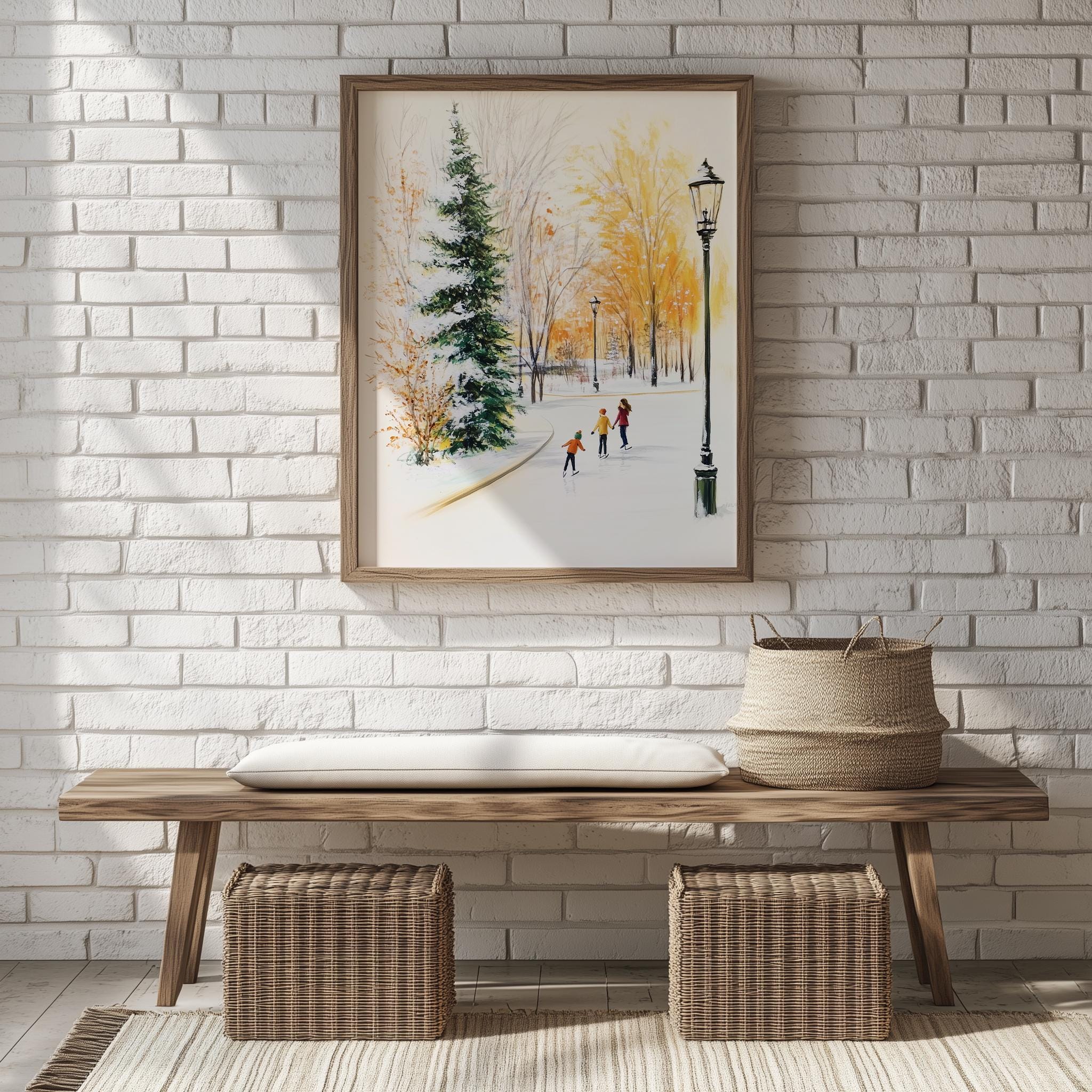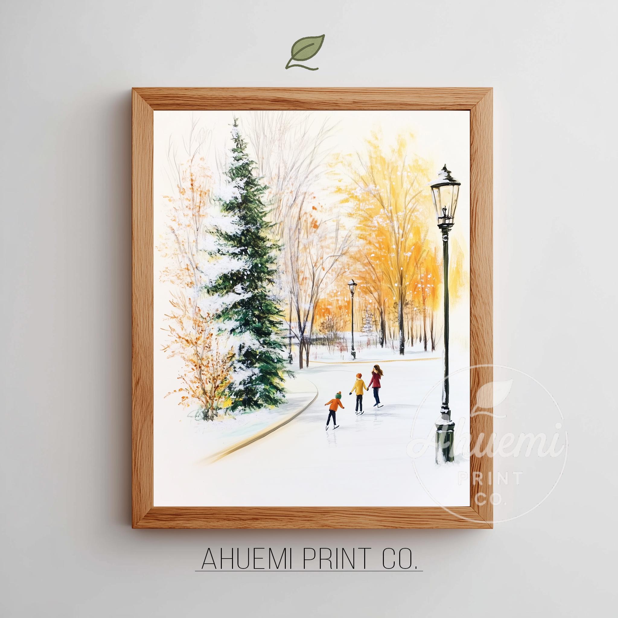 Immerse yourself in the charm of this rustic painting of children ice skating in a snowy village. An instantly downloadable print, it's perfect for elevating your decor with budget-friendly charm. This gives you the flexibility to customize the size, frame, and material according to your personal taste and space, ensuring a perfect fit for your walls.