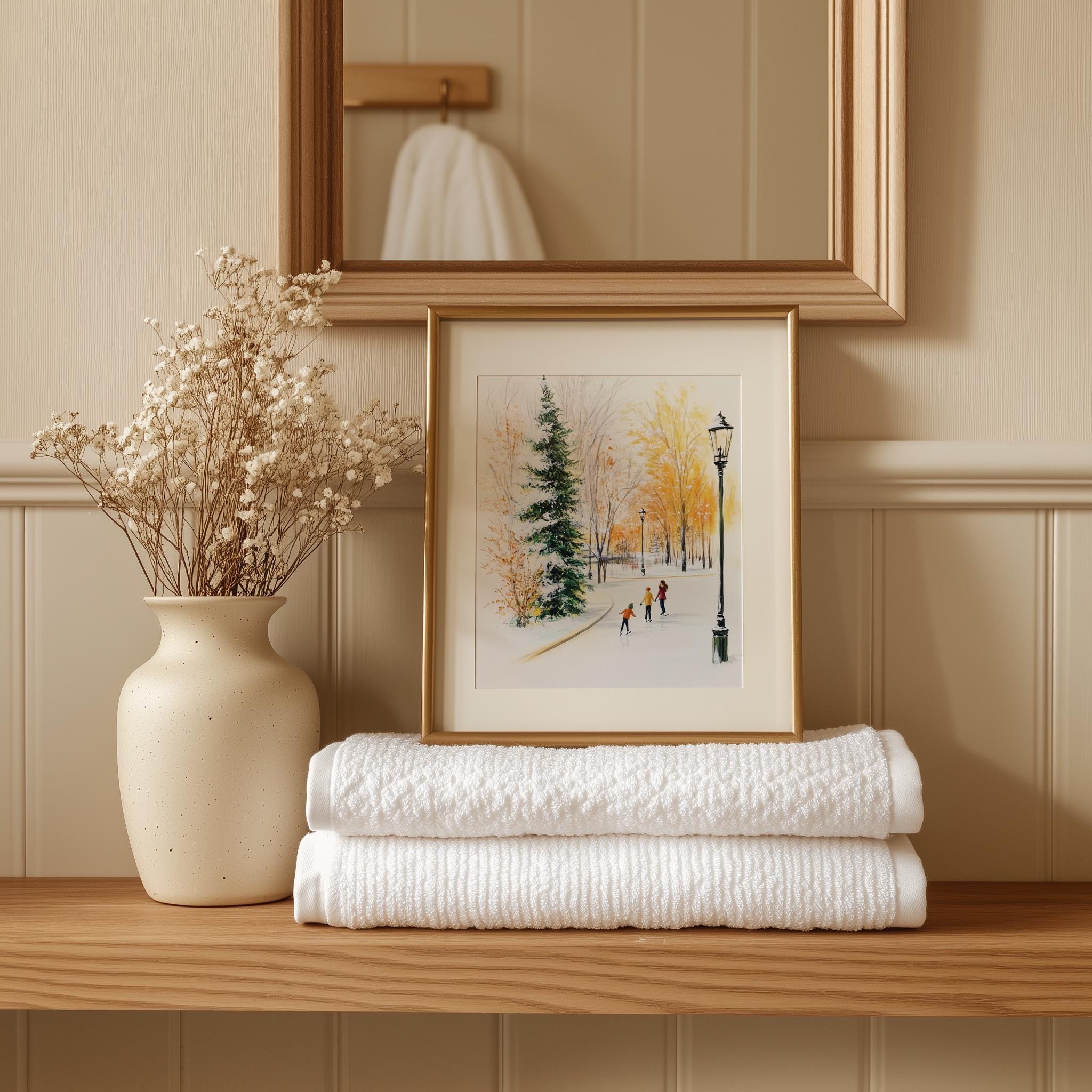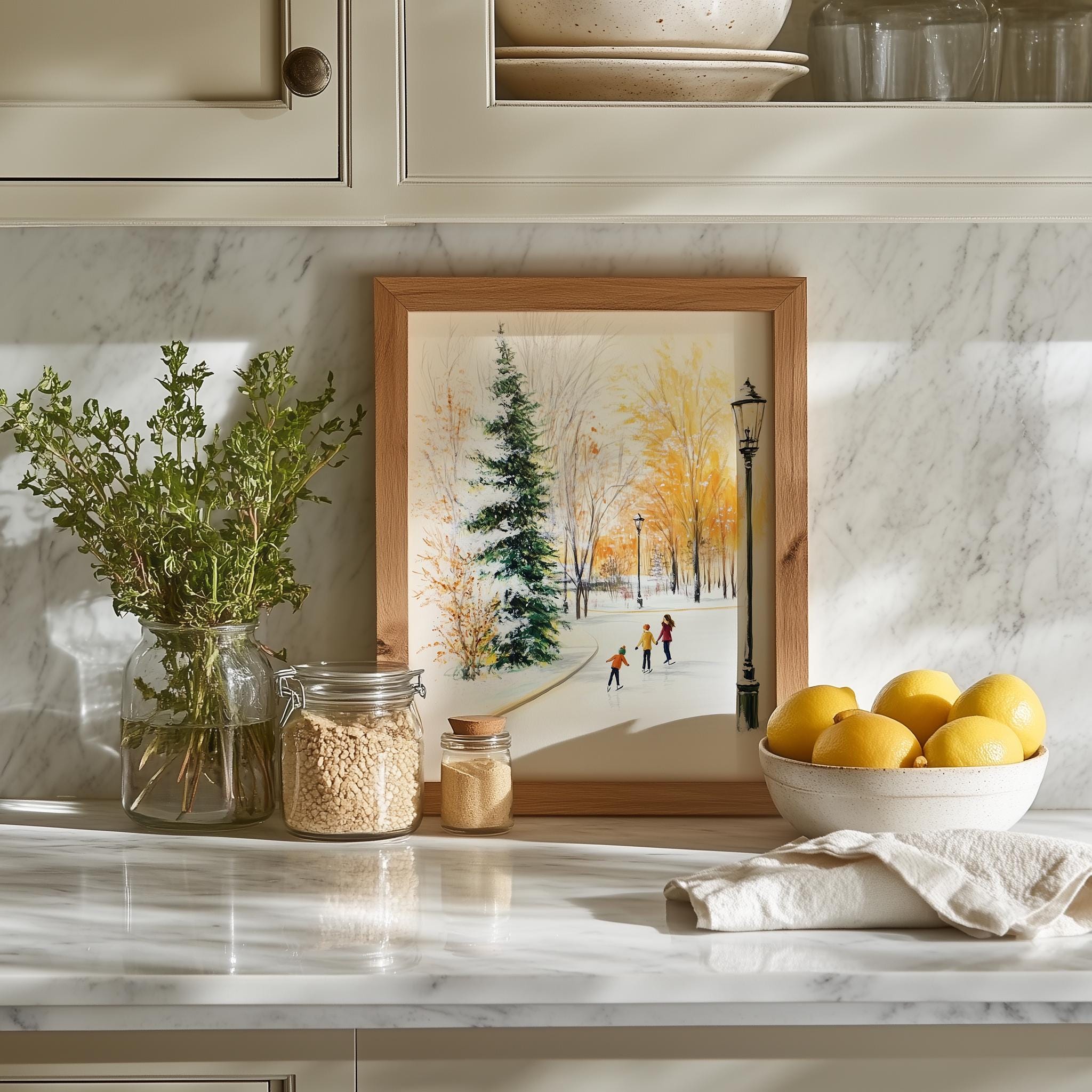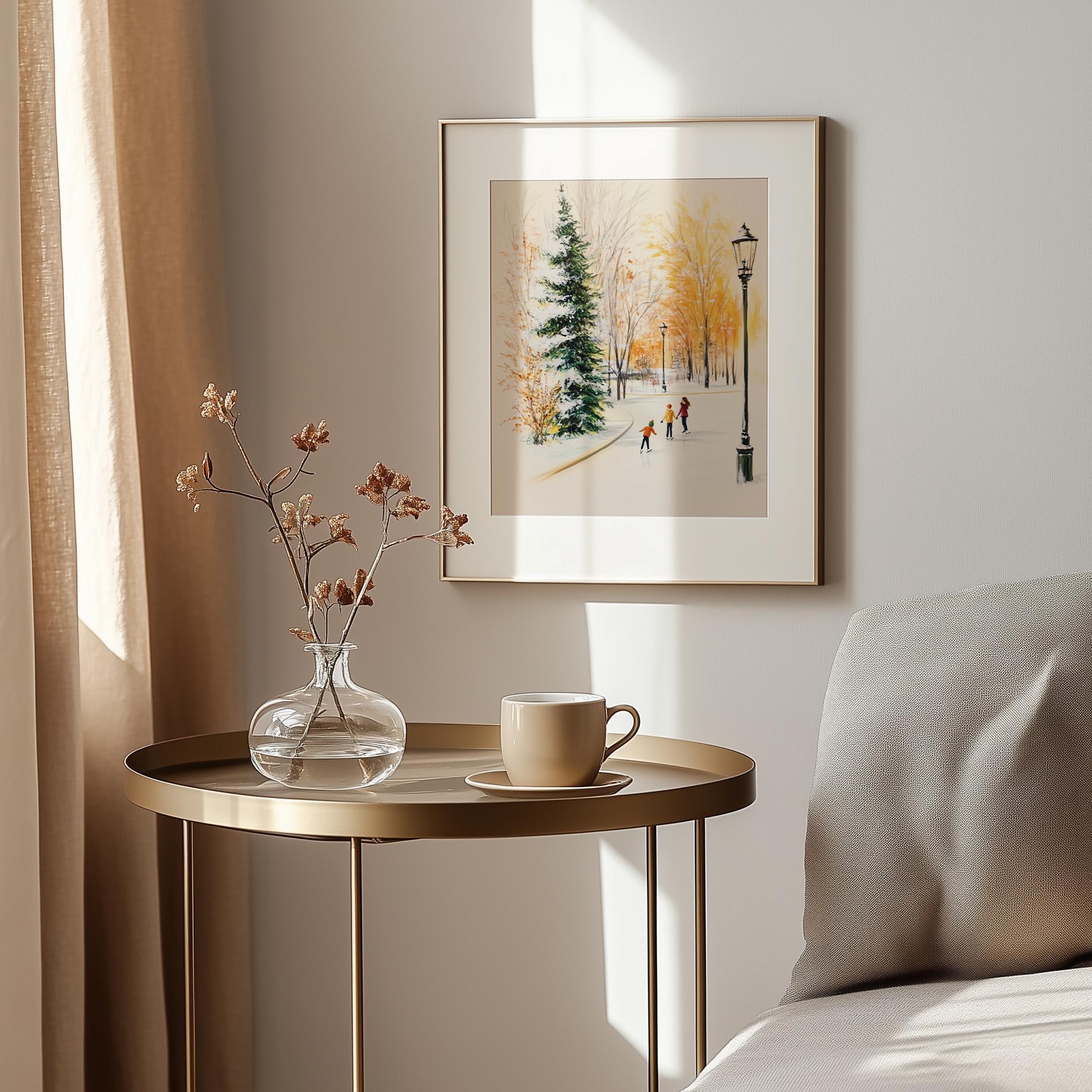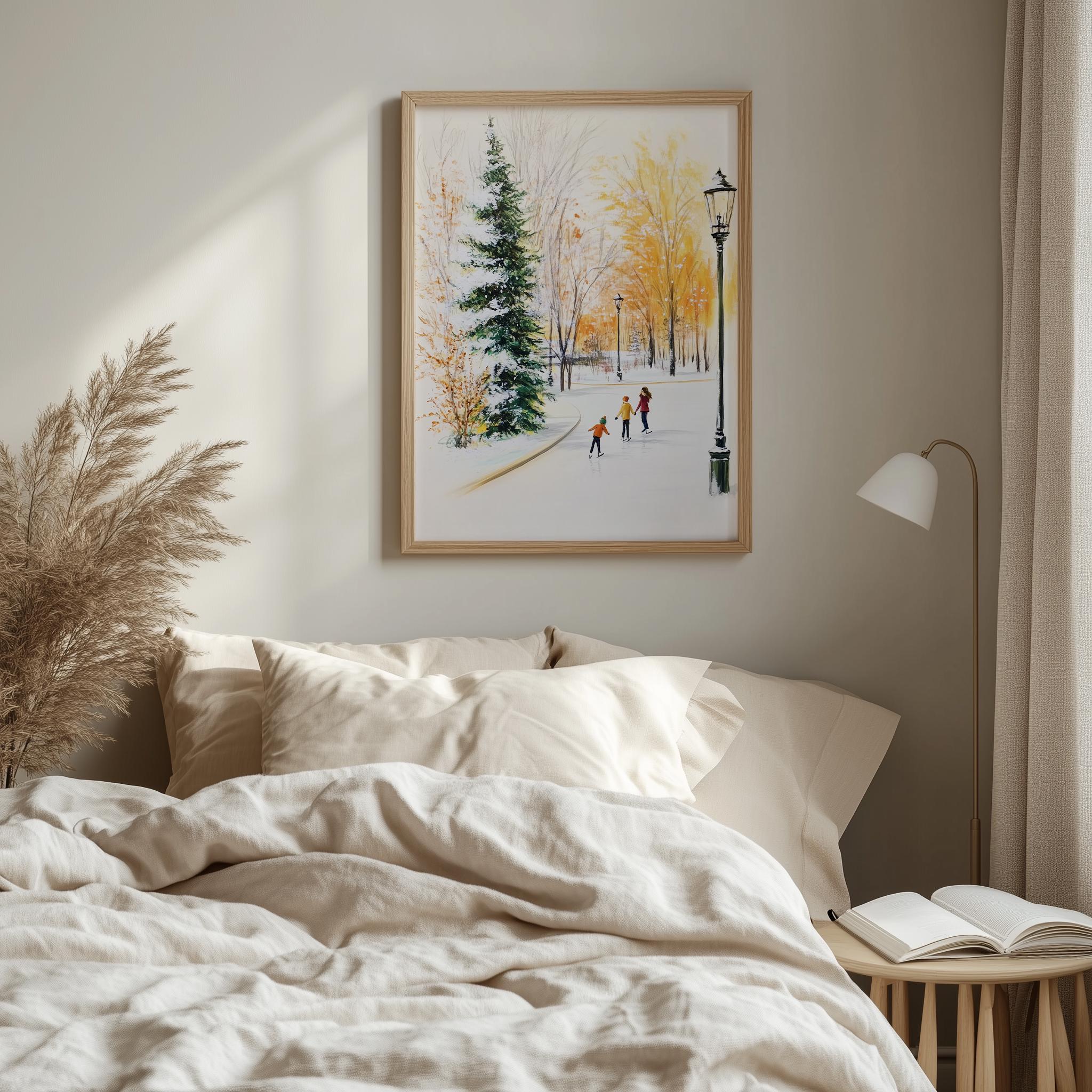Immerse yourself in the charm of this rustic painting of children ice skating in a snowy village. An instantly downloadable print, it's perfect for elevating your decor with budget-friendly charm. This gives you the flexibility to customize the size, frame, and material according to your personal taste and space, ensuring a perfect fit for your walls.