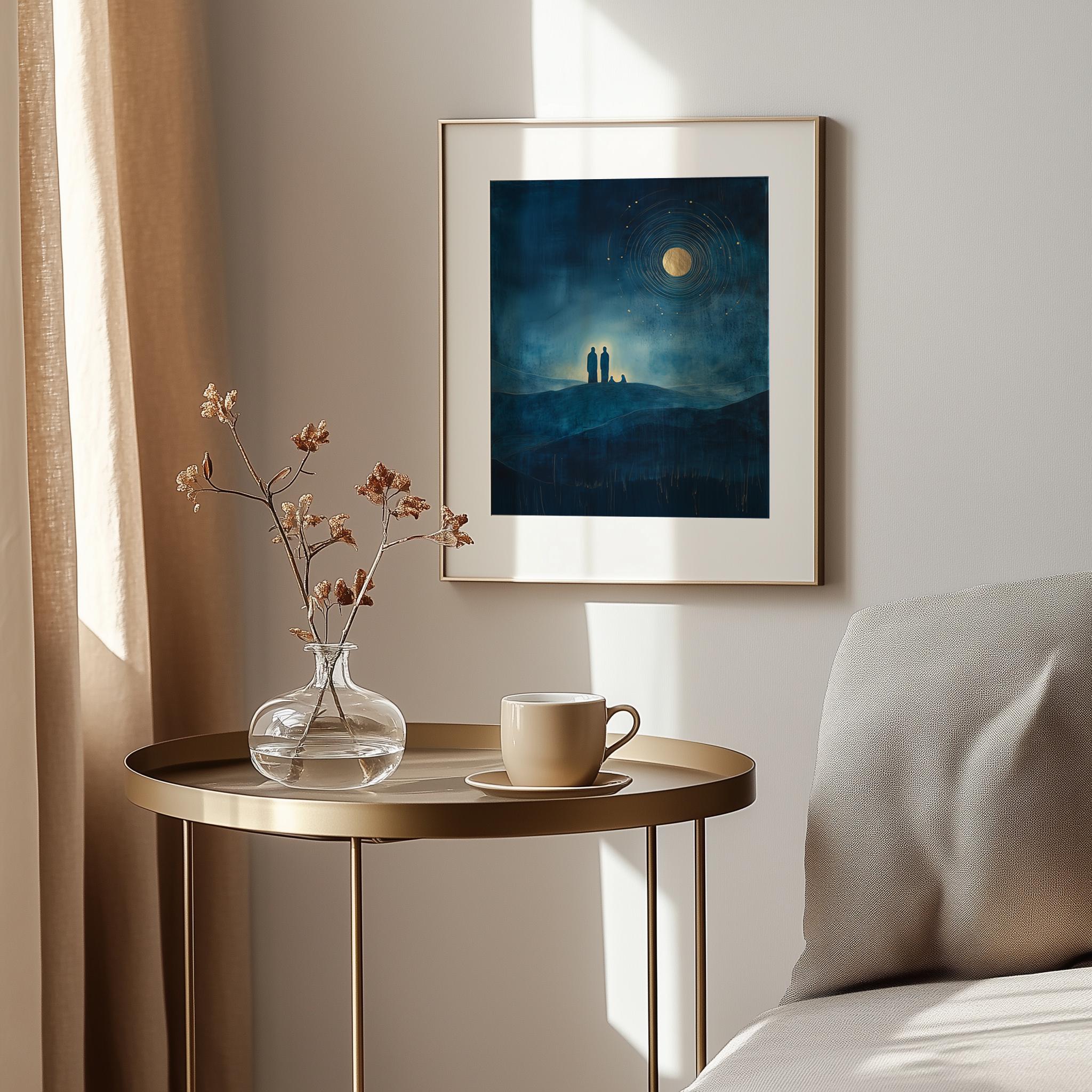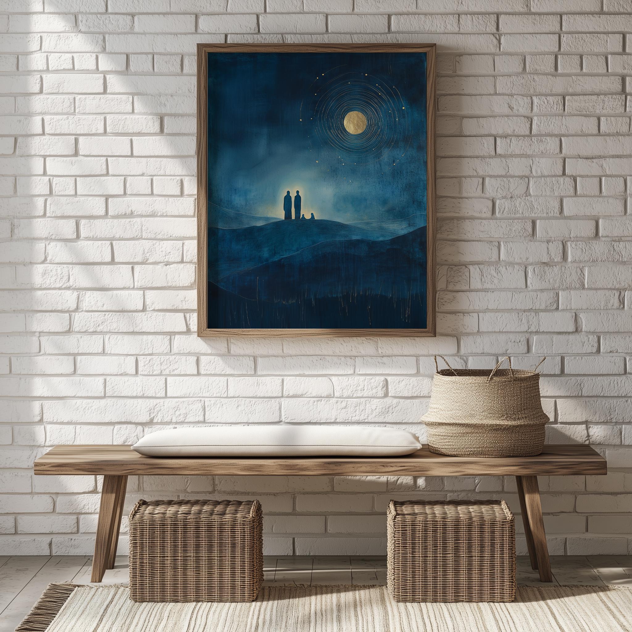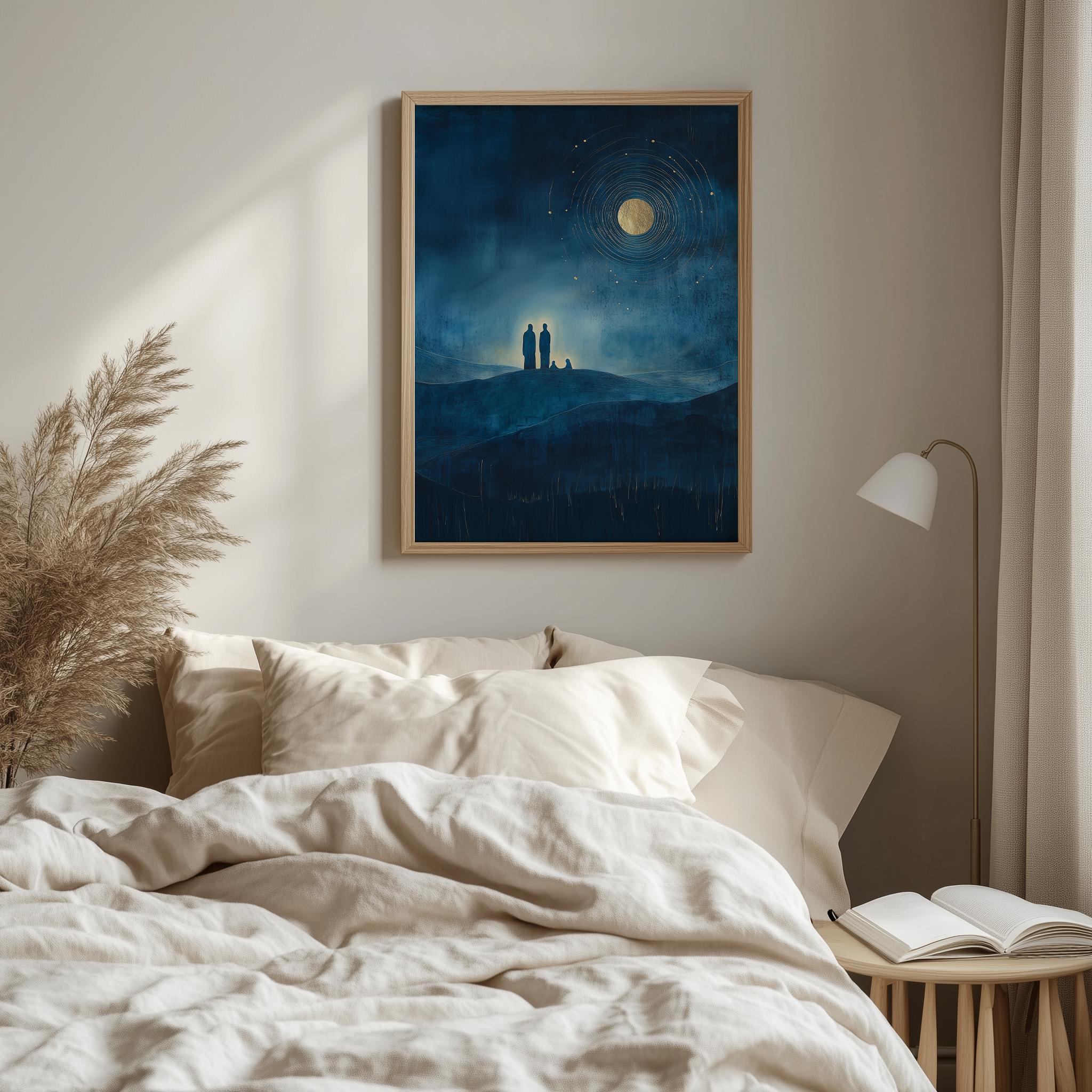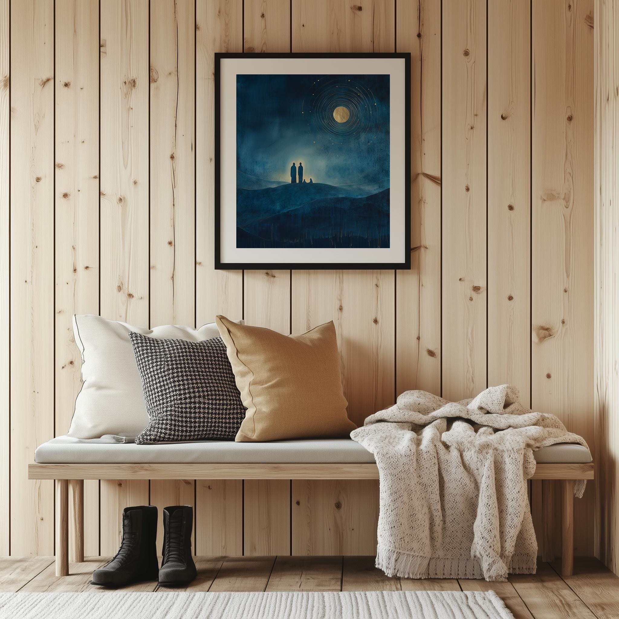 Immerse yourself in the charm of this rustic painting of a serene nativity scene, beautifully captured in minimalist silhouette. An instantly downloadable print, it's perfect for elevating your decor with budget-friendly charm. This gives you the flexibility to customize the size, frame, and material according to your personal taste and space, ensuring a perfect fit for your walls.