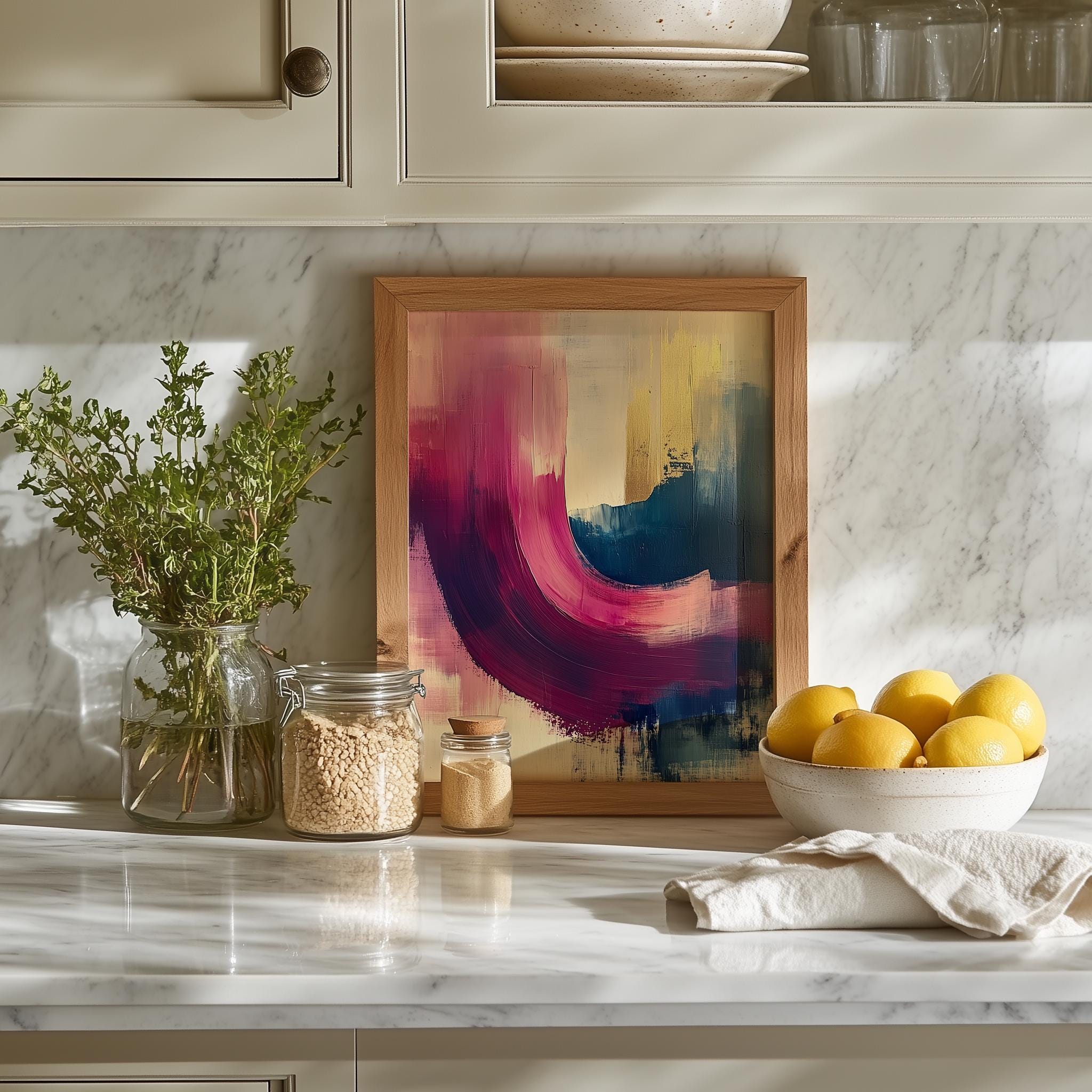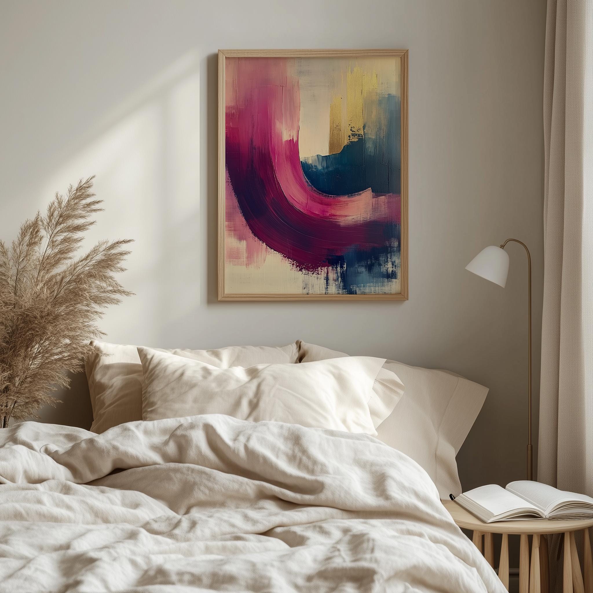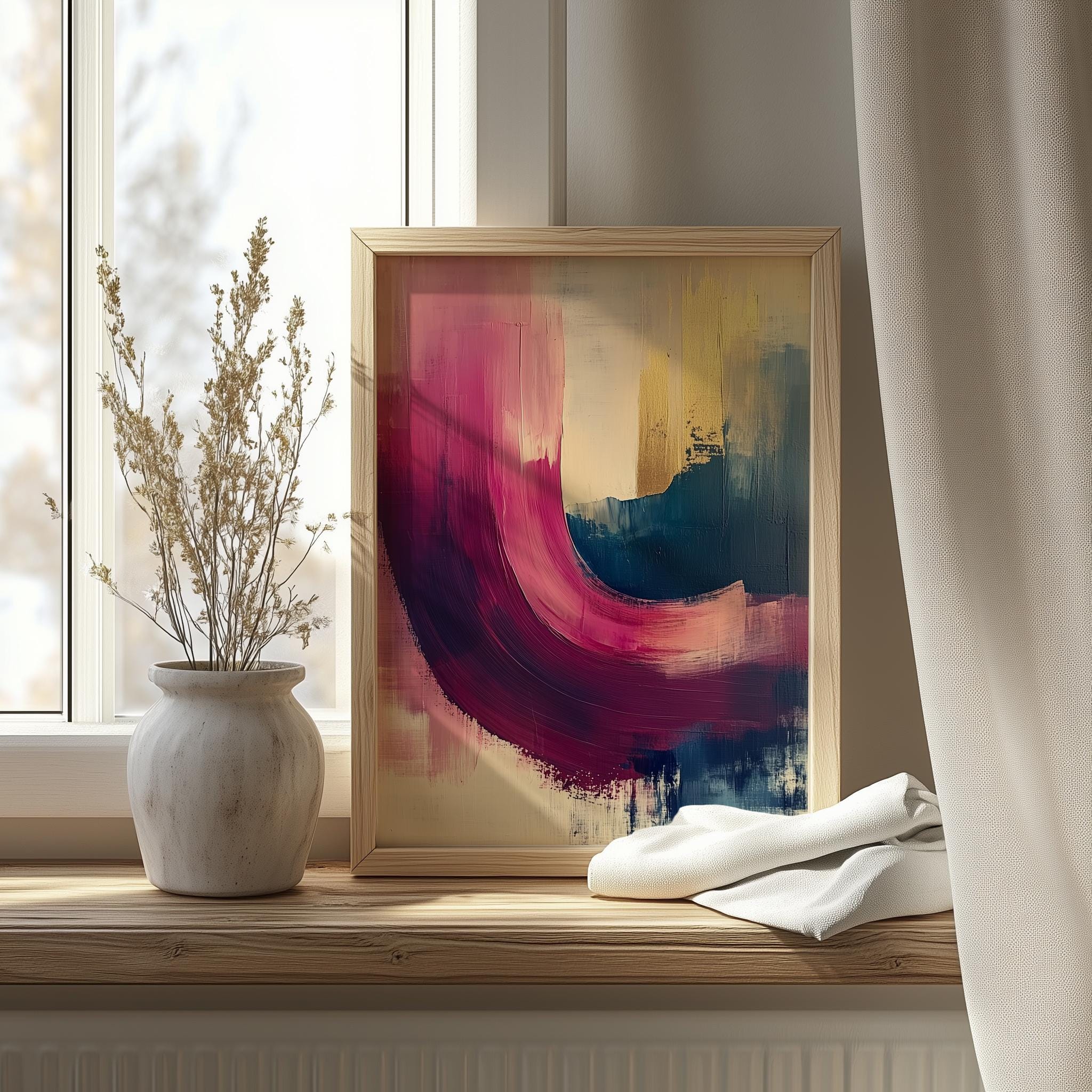 Immerse yourself in the charm of this rustic painting of modern abstract brushstrokes in festive plum and navy hues. An instantly downloadable print, it's perfect for elevating your decor with budget-friendly charm. This gives you the flexibility to customize the size, frame, and material according to your personal taste and space, ensuring a perfect fit for your walls.