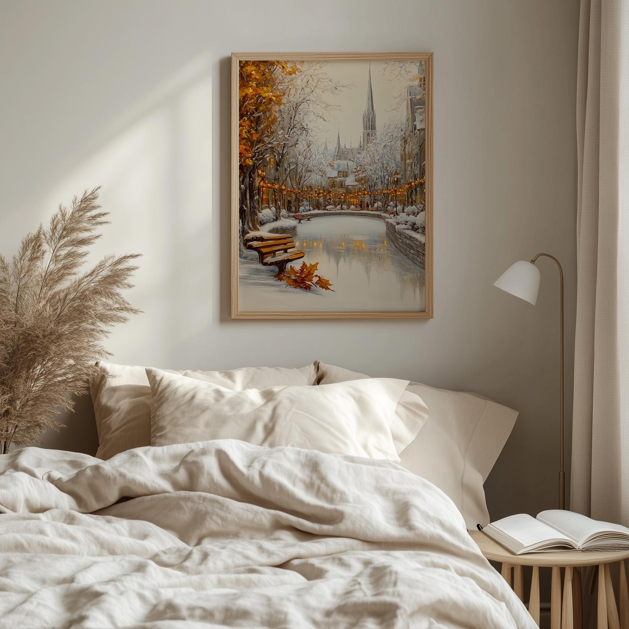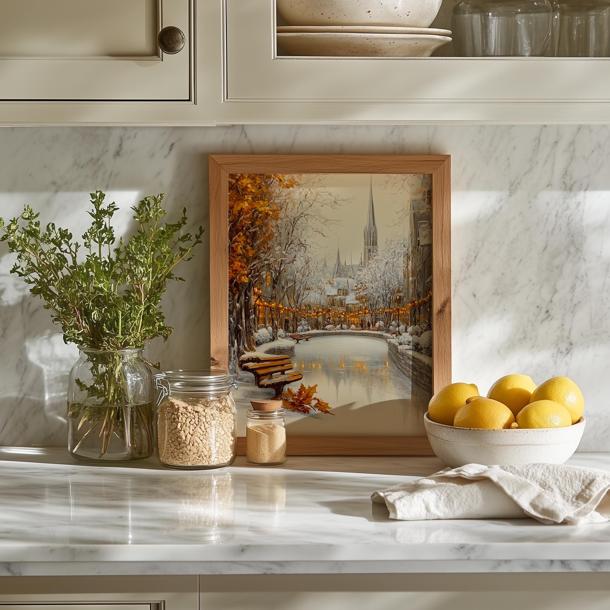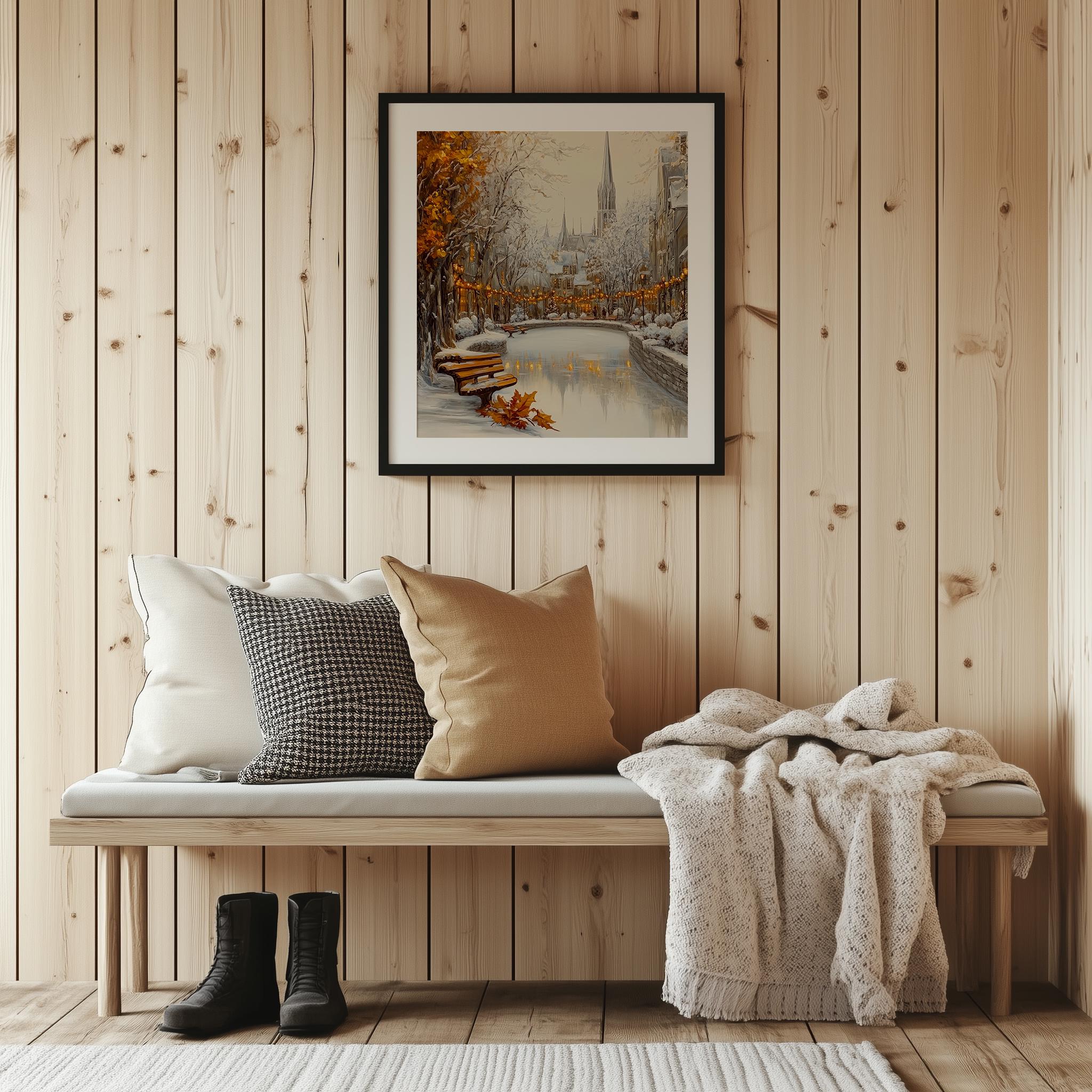 Immerse yourself in the charm of this rustic painting of a quaint village scene featuring joyful ice skaters gliding across a frosty pond surrounded by snow-dusted trees. An instantly downloadable print, it's perfect for elevating your decor with budget-friendly charm. This gives you the flexibility to customize the size, frame, and material according to your personal taste and space, ensuring a perfect fit for your walls.
