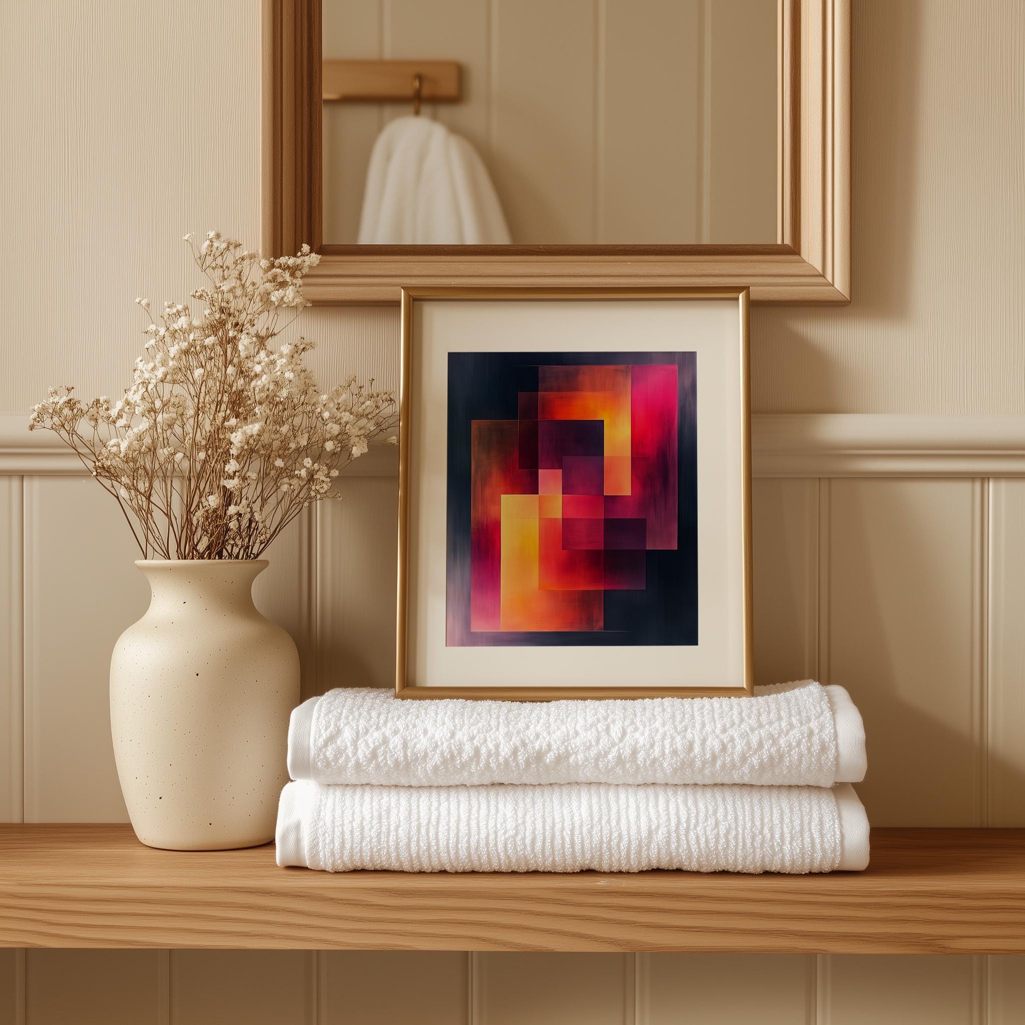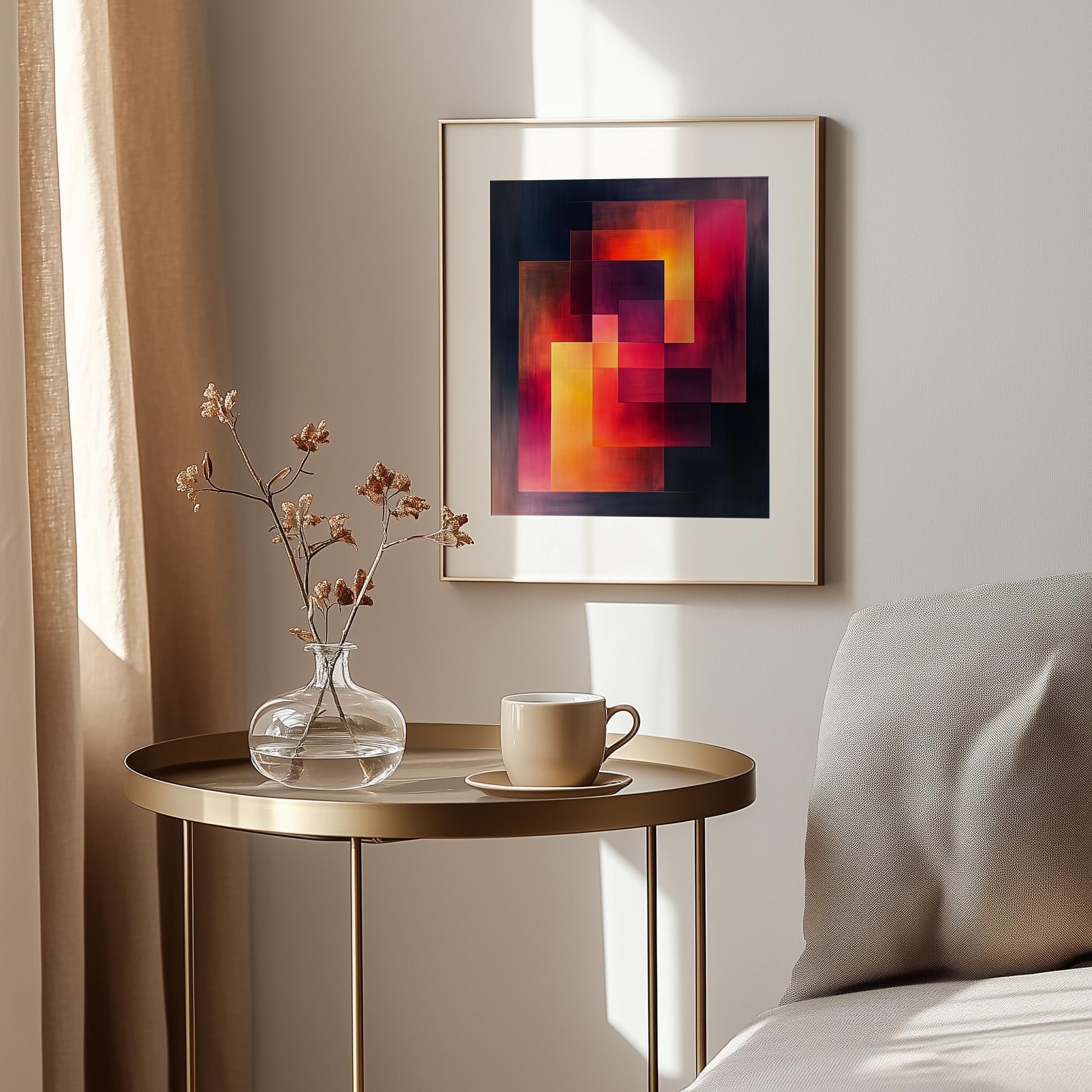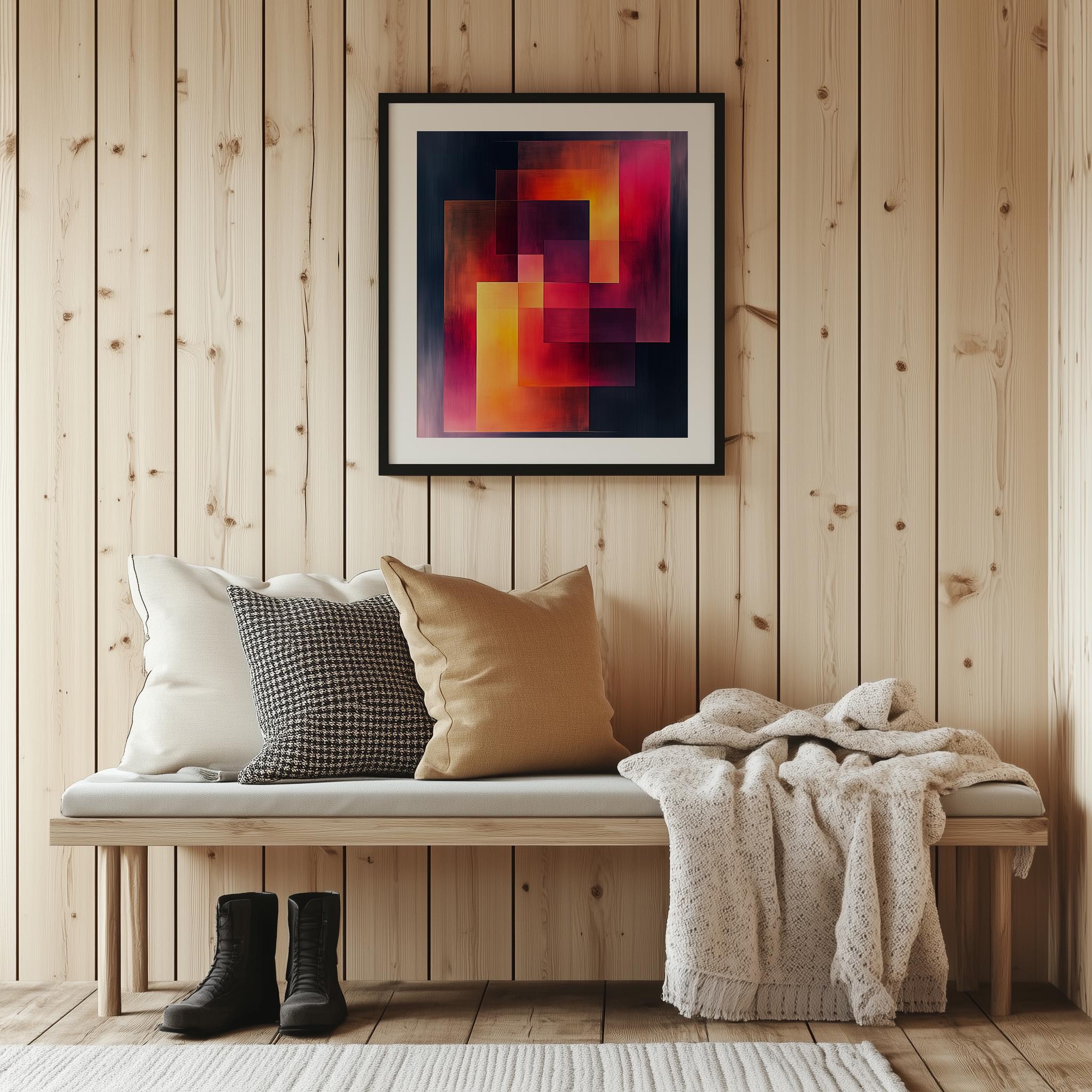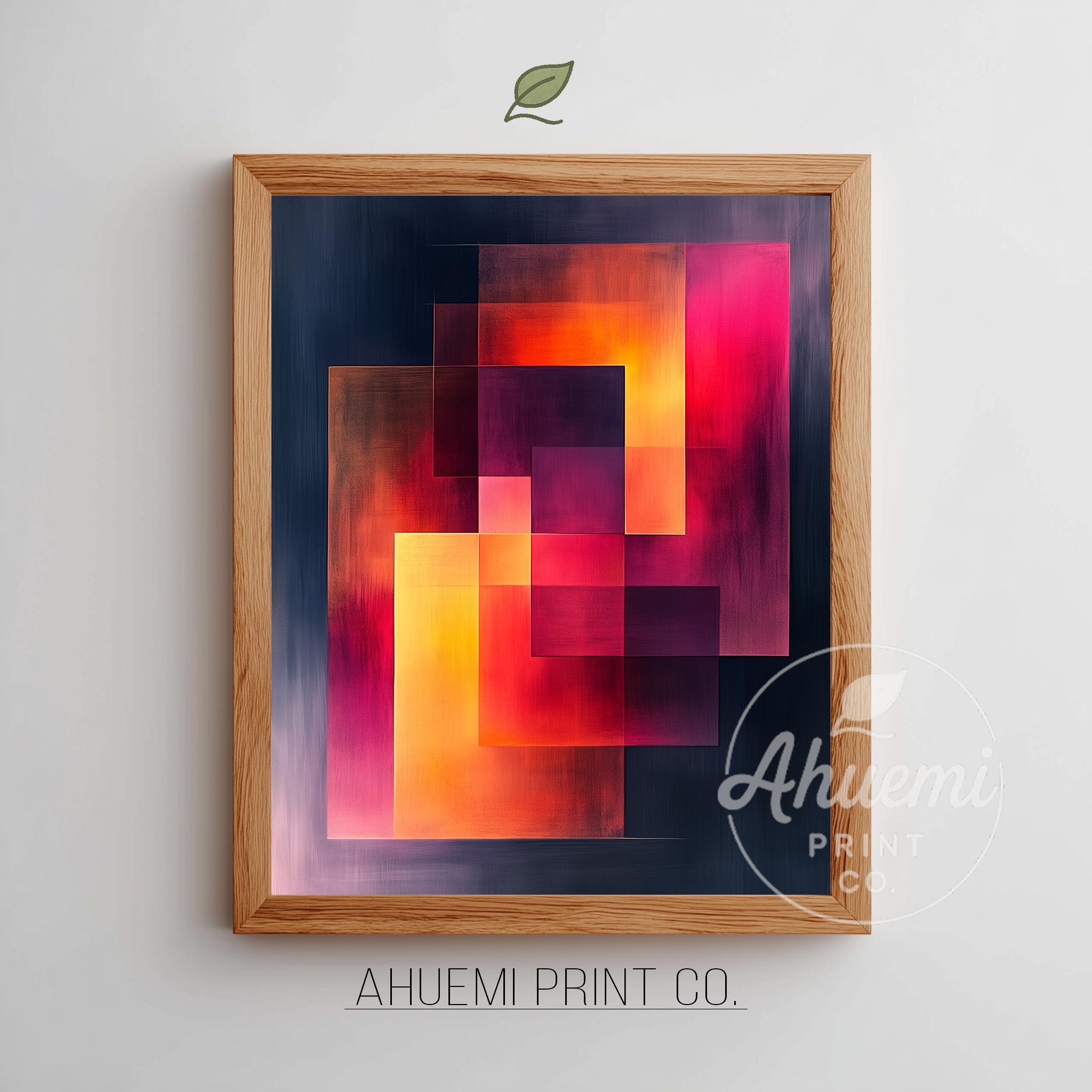 Immerse yourself in the charm of this rustic painting of vibrant geometric patterns that dance across the canvas. An instantly downloadable print, it's perfect for elevating your decor with budget-friendly charm. This gives you the flexibility to customize the size, frame, and material according to your personal taste and space, ensuring a perfect fit for your walls.