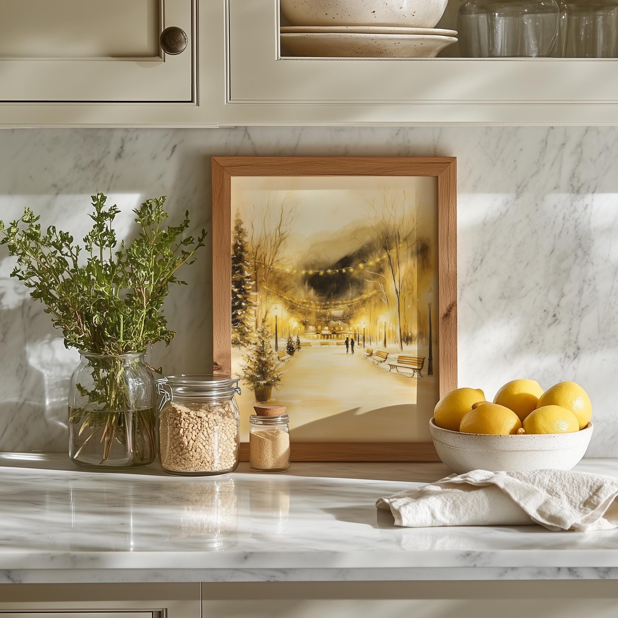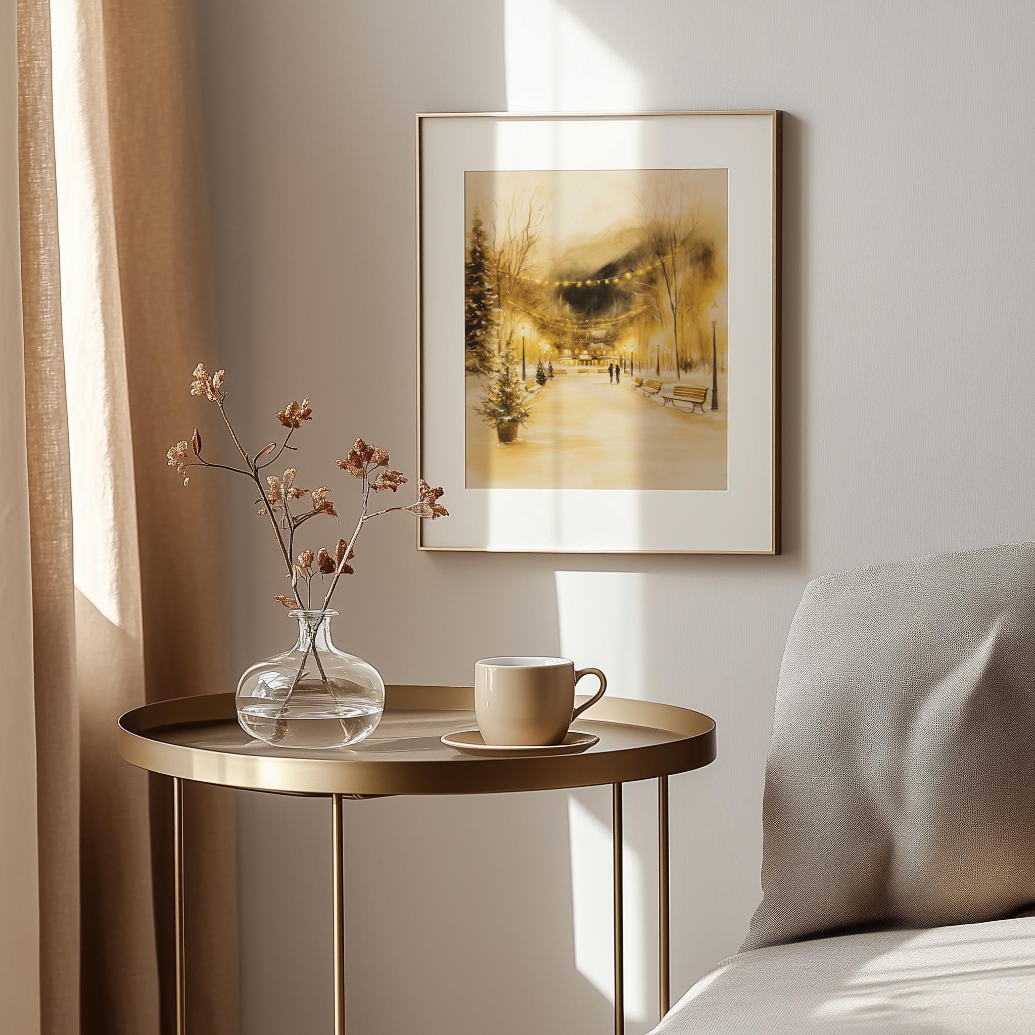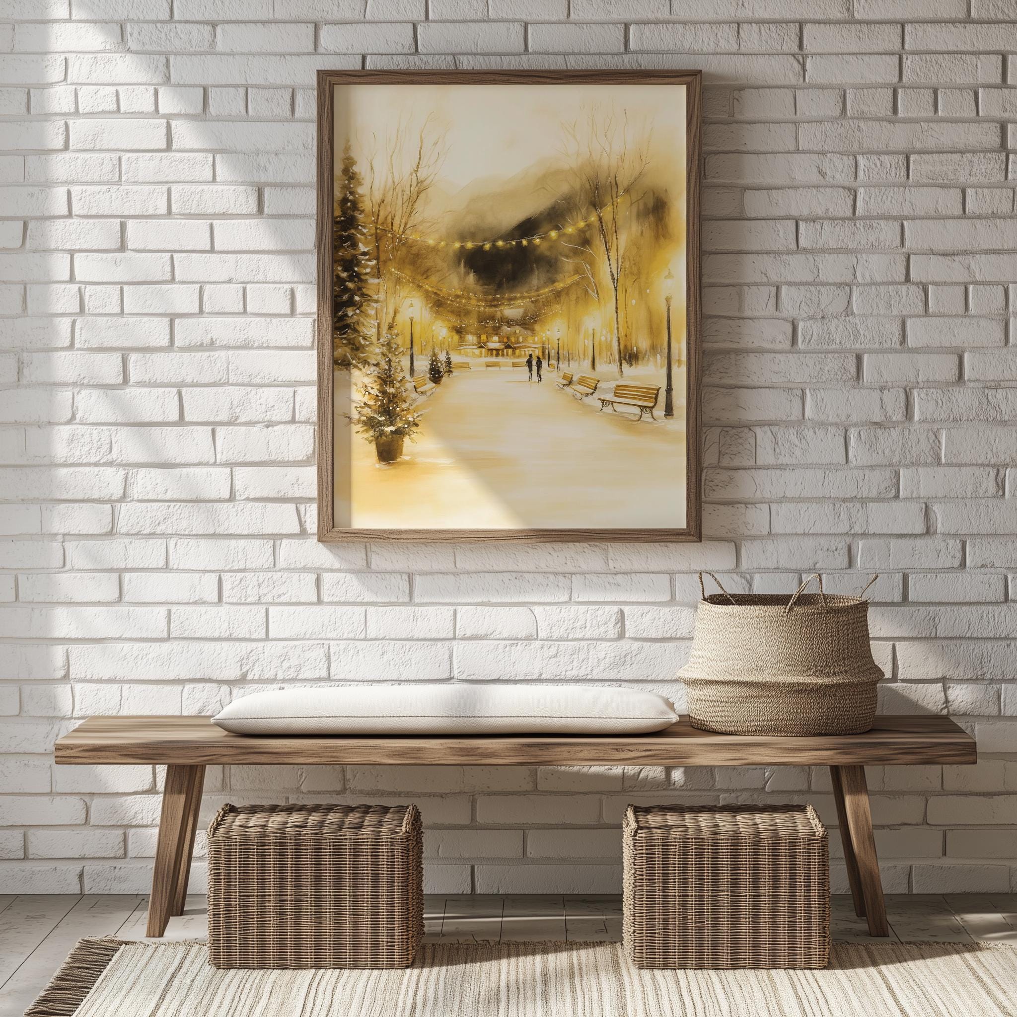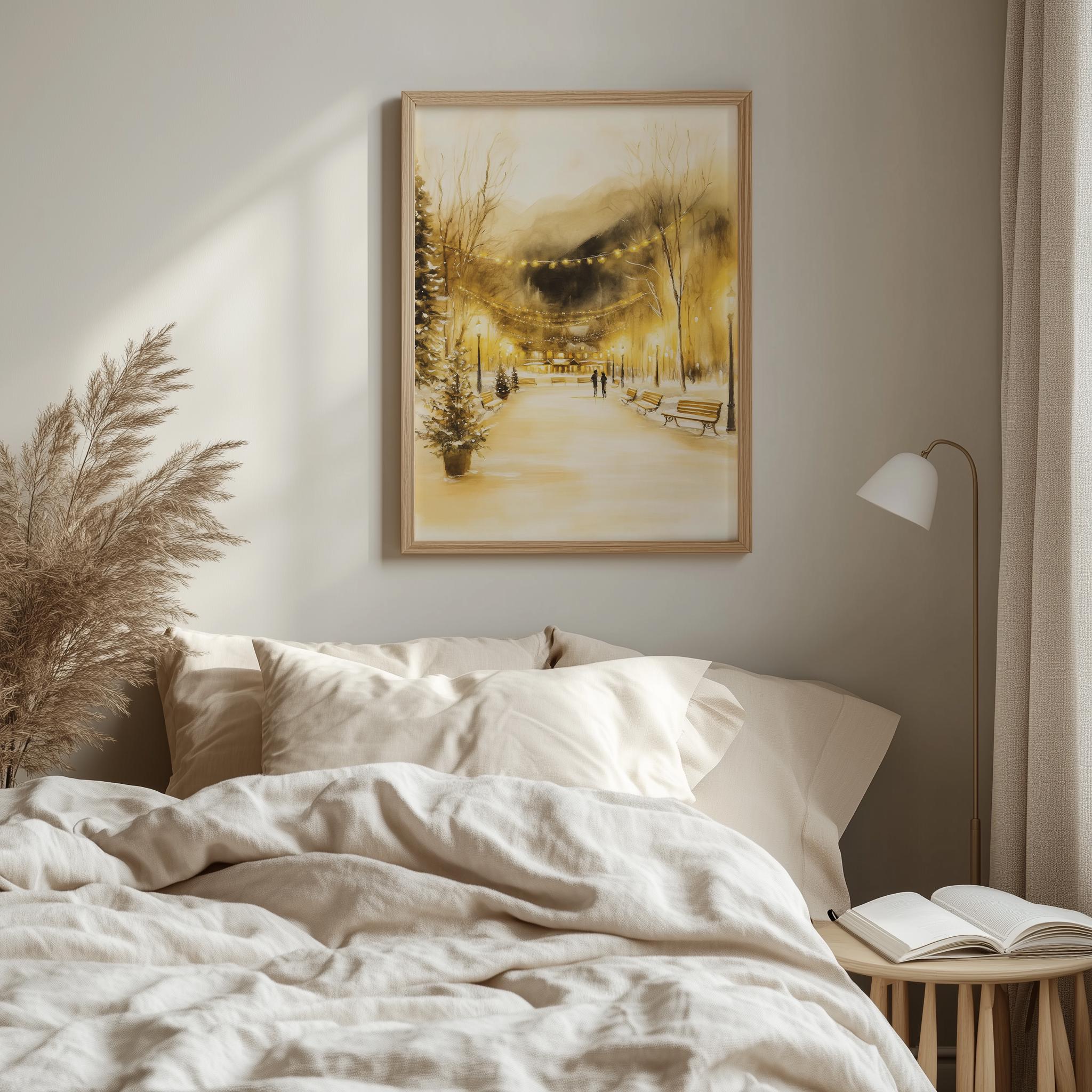 Immerse yourself in the charm of this rustic painting of a cozy winter village bustling with joyful ice skaters. An instantly downloadable print, it's perfect for elevating your decor with budget-friendly charm. This gives you the flexibility to customize the size, frame, and material according to your personal taste and space, ensuring a perfect fit for your walls.
